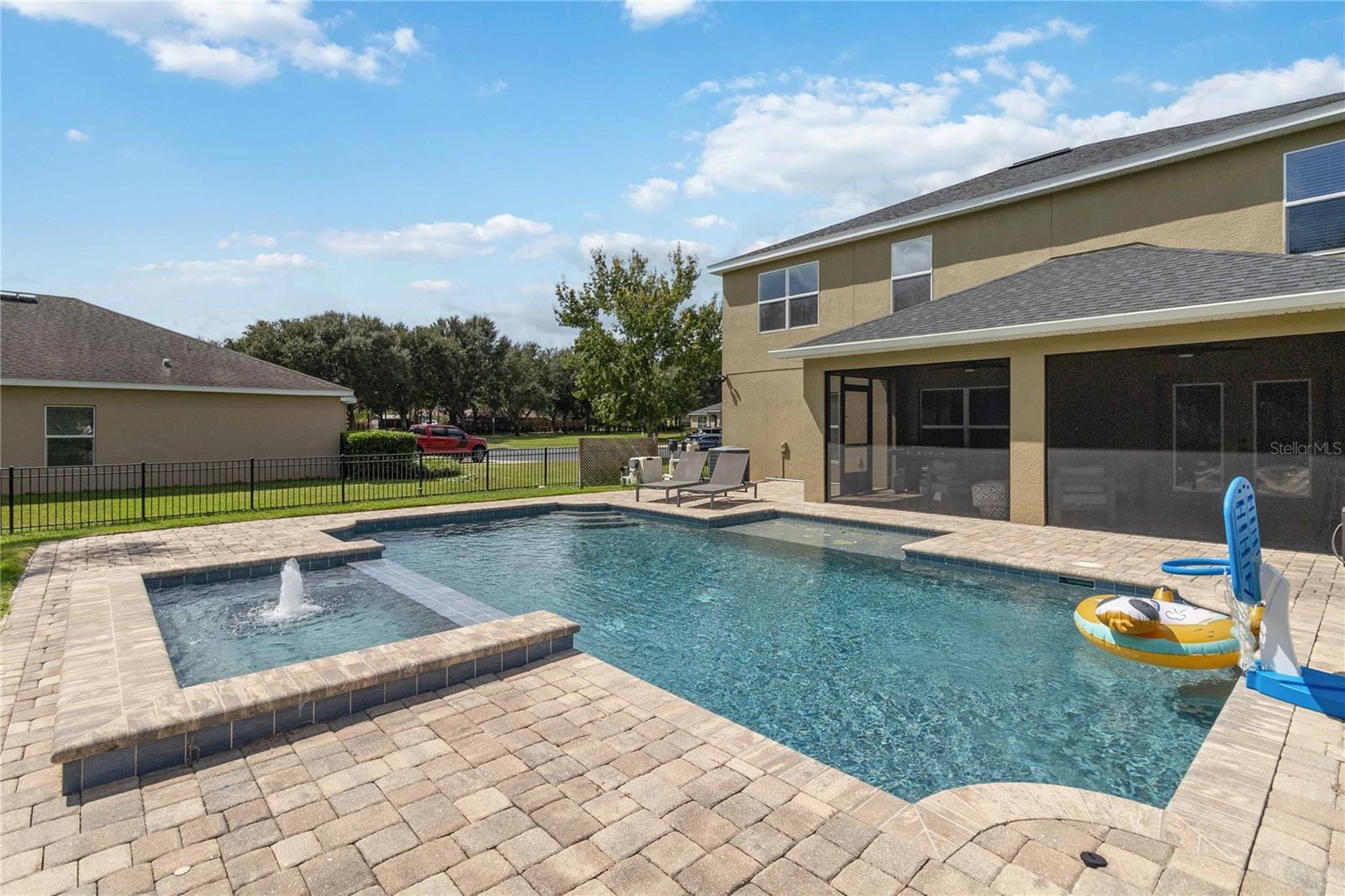 Under contract-accepting backup offers. Price Reduced! Step into this breathtaking 6-bedroom, 3.5-bathroom, 2, 800 sq/ft masterpiece that radiates warmth and style. Nestled in a serene cul-de-sac within an exclusive gated community, this home is a sanctuary of space and privacy, with an oversized lot perfect for your family to thrive. Lots of upgrades are included this lovely home including the roof which was replaced in 2023 and the pool pump in 2025. This beloved community floor plan offers room to grow and make memories. Downstairs, a spacious guest bedroom with its own private bathroom welcomes visitors, while upstairs, the grand master suite is your personal retreat, designed for rest and relaxation. Every corner of this home shines with thoughtful details, from sleek granite countertops to newer stainless steel appliances and carefully chosen light fixtures. Step outside to your private oasis, a huge fully fenced backyard designed to feel like your own personal resort. Enjoy the oversized luxury pool with state-of-the-art features, or unwind in the expansive spa under the stars. It’s a space made for summer barbecues, lovely fall evenings, and quiet mornings with coffee in hand.