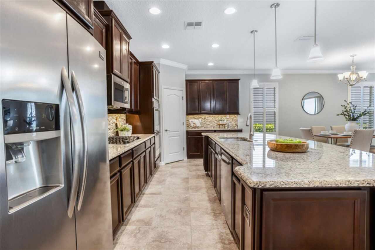 Under contract-accepting backup offers. Resort-Style Living in Esplanade at Highland Ranch – Premier 55+ Gated Community Nestled in the scenic rolling hills of Clermont, this impeccably maintained 2-bedroom, 2-bath home with a flexible den/office offers the perfect combination of luxury, comfort, and low-maintenance living in the coveted Esplanade at Highland Ranch. Designed for both entertaining and everyday ease, the home features an open-concept layout with a chef’s kitchen, highlighted by an impressive 11-foot island with cabinet storage on all four sides. Crown molding and natural light add a refined touch, while disappearing sliding glass doors lead to a spacious covered lanai with utility hookups for a future outdoor kitchen—ideal for enjoying Florida’s year-round indoor/outdoor lifestyle. NEW HVAC 2025- NEW MICROWAVE 2025-NEW PAINT INSIDE AND OUTSIDE 2025 The primary suite is a serene retreat with dual vanities, a large walk-in shower, and a private water closet. A split floor plan offers privacy for guests, and the extended 2-car garage with epoxy floors provides generous storage space. Recent updates include fresh interior and exterior paint, a new HVAC system, and a new microwave oven, ensuring modern comfort and peace of mind. Enjoy a vibrant, active lifestyle with resort-caliber amenities, including: • Resort-style pool & resistance pool • Pickleball, tennis & bocce ball courts • Firepit, dog park & grilling area • State-of-the-art fitness center & movement studio • Clubhouse with a full calendar of events, shows, classes & parties • Bonus: View Disney fireworks from the community! The HOA covers your lawn and garden care, so whether you’re home or away, your yard stays picture-perfect. Located just minutes from the Florida Turnpike, Downtown Clermont, Winter Garden, and major medical centers like South Lake Hospital, AdventHealth, and the VA, with scenic biking and walking trails right outside the gates. This is more than a home—it’s the lifestyle you’ve been waiting for.