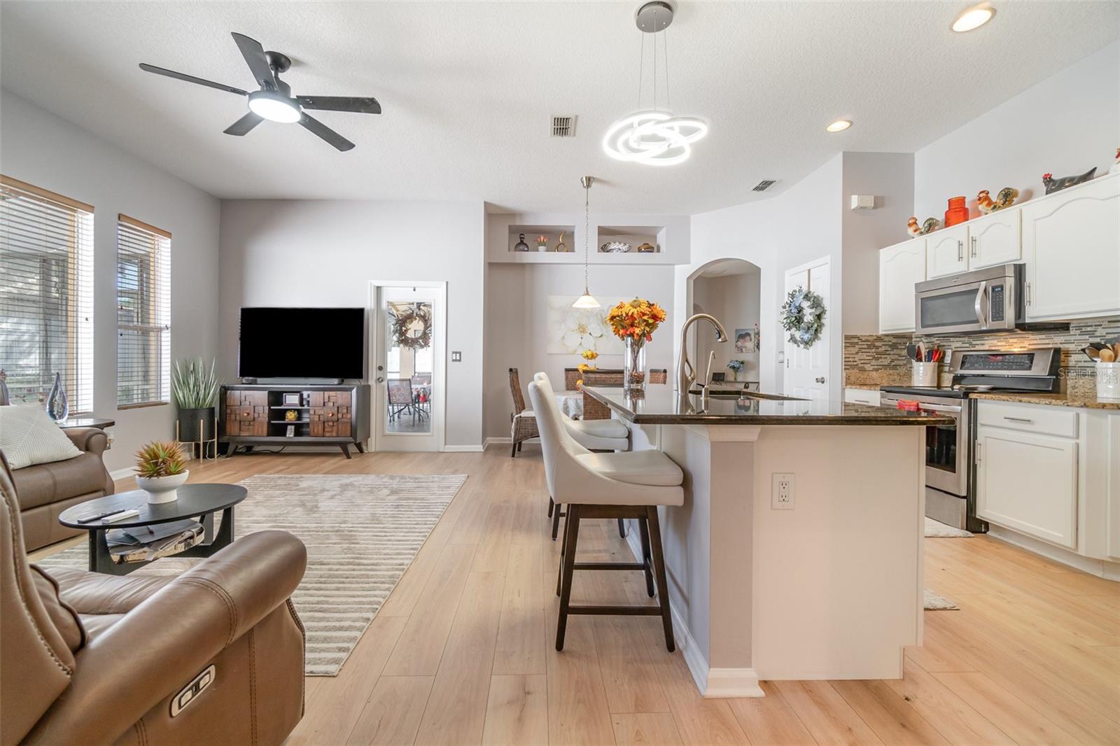Highly sought out LAKE LOUISA HIGHLANDS community. a home that has it ALL , Welcome to this Charming 3 bed 2 bath POOL home. Spacious with tons of natural light includes 2 living and 2 dining spaces that can easily be converted to a bedroom. luxury vinyl planks with a natural oak color just installed. recent upgrades inlcude HVAC 2022, WTH 2022, ROOF 2022, SEPTIC 2017 (serviced each year), POOL SCREEN with high ceiling, POOL RESURFACED 2023, POOL PUMP 2025, REVERSE OSMOSES AND WATER SOFTNER. KITCHEN COUNTERTOPS , SPRINKLER CONTROLLER, FENCE WITH DOUBLE DOOR FOR BOATS . come see it today