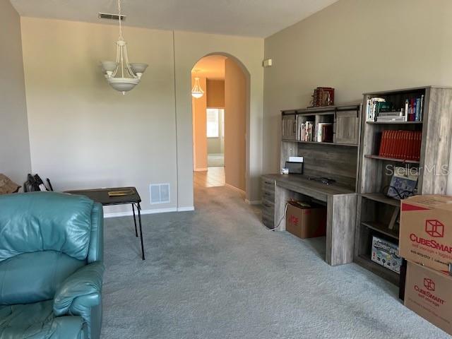 GOREGOUS view of the 7th Fairway of the Clermont National golf course. This one-of-a-kind home is ADA compliant and has been enlarged like no other. The entire interior walls have been freshly painted a beautiful neutral color. Lanai floor and garage have also been freshly painted, for that clean new look. There are 2 bedrooms, 2 baths, and a den (with built-in desk), 2 car 3’ extended garage, double pane windows, has a beautiful front door with a glass side panel. The kitchen has a tile floor, 42” Oak cabinets with pull-out drawers, refrigerator and microwave are 1 year old, gas stove, double closet pantry, porcelain double sink, and eat-in kitchenette. Inside laundry room with washer, dryer, & extra shelving for storage, and has a convenient walk through. The primary bedroom has engineered wood flooring, a bay window, 2 large walk-in closets, and primary bath has a private commode, walk-in shower, garden tub and double vanities. 2nd bedroom and den are carpeted, and den has a bay window. Dining room has a stunning chandelier. Living room has the breath-taking view of the golf course and an electric fireplace (with built-ins around it) for those chilly nights. Nine feet of French doors overlook the screened Lanai with painted floors, a natural gas hook-up for a grill, also 2 solid walls for privacy. Water heater new April 2024, AC 6 years old, new comfort height toilet in Master bathroom. NEW roof up to code in 2024, 4’ extension on length of driveway (can park 4 cars in driveway), 3’ extension on foyer and 3’ extension on den and a bay window in the 2nd bedroom. This community has a fabulous 28, 000 sq. ft. clubhouse incl. 8 clay lit tennis courts, 7 new pickleball courts, state-of-the-art fitness center, indoor/outdoor heated swimming pools, billiard room, 2 card rooms & an arts & craft room with its own kiln, ballroom with stage and dance floor, 19th hole with movie & book library, shuffleboard, & bocce. Great location, a bonus! Near the turnpike, bike trail, shopping, hospital, library, Restaurants, many lakes, Disney & Orlando airport (where you will pick up all your guests). The community is very friendly, active and golf cart friendly, the resort lifestyle you have been waiting for. There is 18-hole golf course, a driving range, “THE VIEW” has a restaurant and bar. HOA includes 24 hr. manned gate, all clubhouse facilities, all yard maintenance, cable tv and high speed internet. The restaurant is connected to the golf course with no financial liability to SG residents. The builder was "Levitt & Son's" with 769 single family homes. There is a onetime capital contribution of $1, 692.60 charged to the buyer at closing. Come see Florida's best kept secret, in the hills of Clermont and the center of the state, safe from hurricanes. Priced to sell, call today for an appointment.