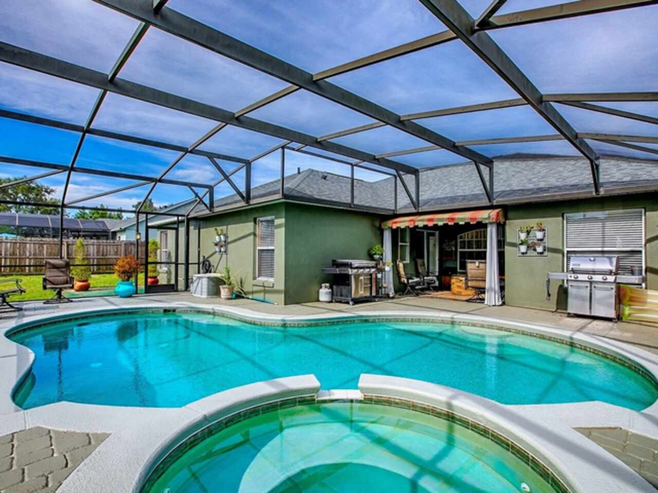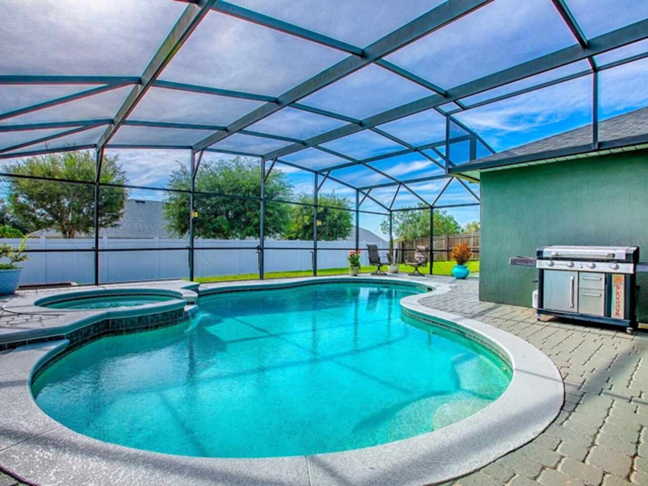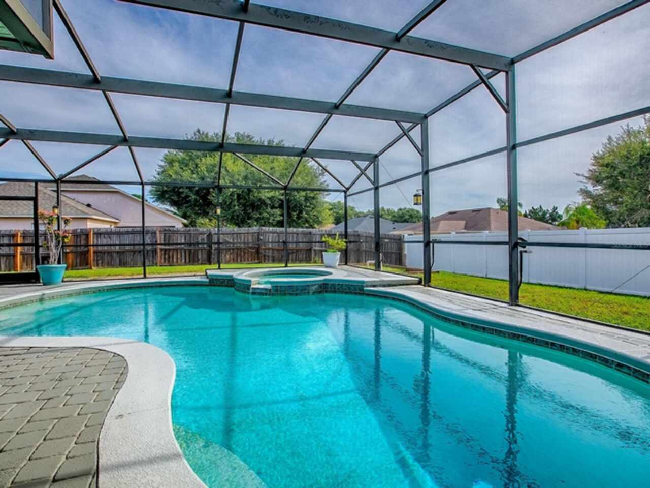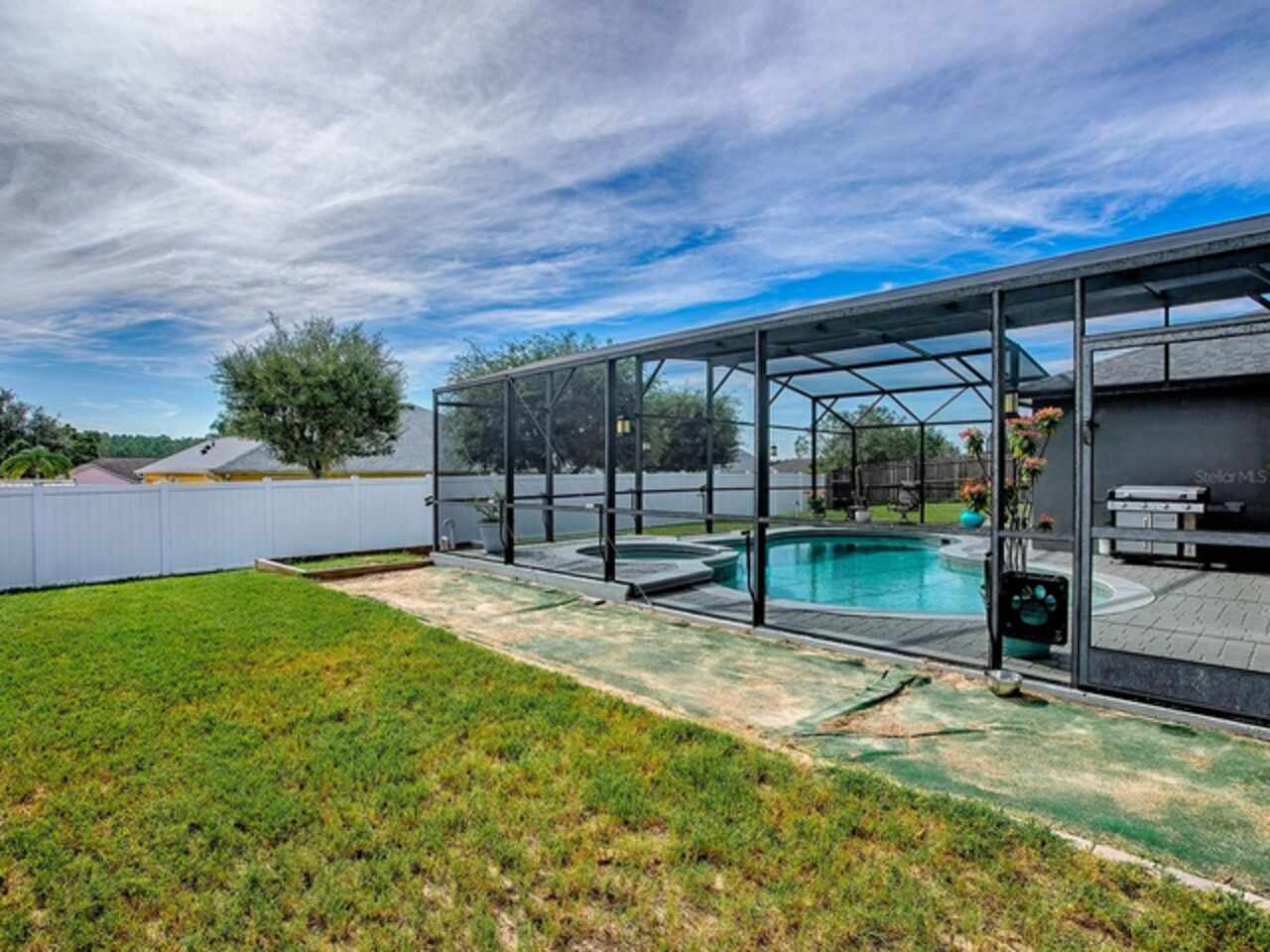 Under contract-accepting backup offers. COME AND SEE THIS STUNNING 4/2/2 SALT WATER POOL HOME IN CLERMONT FLORIDA. LUXURY VINYL THROUGHOUT THE LIVING AREAS AND TILE FLOORING IN THE KITCHEN. THE KITCHEN OFFERS STAINLESS STEEL APPLIANCES WITH STONE BACK SPLASH AND RECESS LIGHTING WITH A STONE/WOOD DINING AREA IN THE KITCHEN. A SEPARATE DINING ROOM GREAT FOR FAMILY AND GUEST DINNERS. MASTER BEDROOM OFFERS DUAL SINKS WITH A GARDEN TUB AND SEPARATE SHOWER. THE AC 2023 WITH A 10 YEAR WARRANTY, ROOF IS A 2023, POOL HEATER 2023, POOL PUMP 2023, NEW POOL CAGE 2023, HOUSE WAS PAINTED IN 2023, AND A SEPARATE LAUNDRY ROOM THAT OFFERS SHELVING AND CABINETS. THE PATIO WHICH LEADS OUT TO THE POOL IS PAVED AND OFFERS A BEAUTIFUL BRICKED FIRE PIT. THE SALT WATER POOL HAS A SPA AND THE BACKYARD IS FENCED FOR PRIVACY AND A GREAT SPACE TO ENTERTAIN GUESTS. THIS PROPERTY IS BIENG OFFERED WITH A 13 MONTH HOME WARRANTY AT NO CHARGE TO THE BUYER. OWNERS ARE MOTIVATED!
