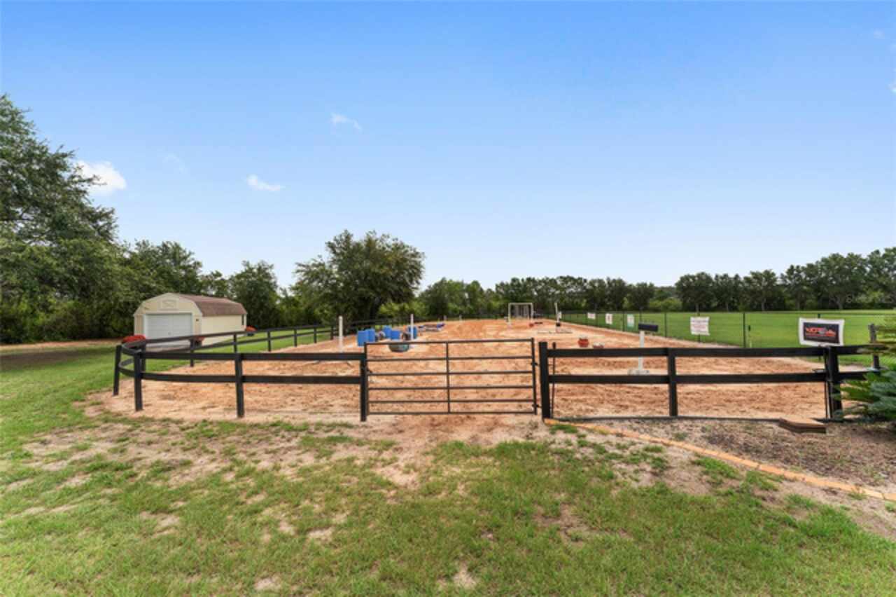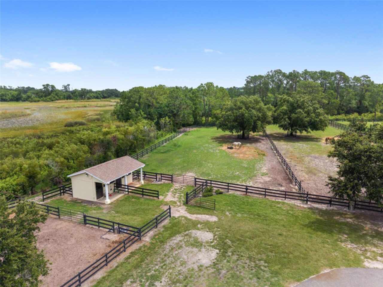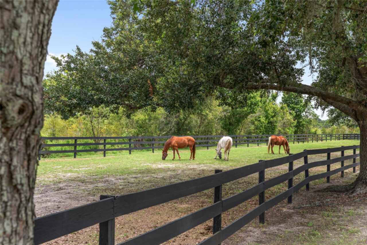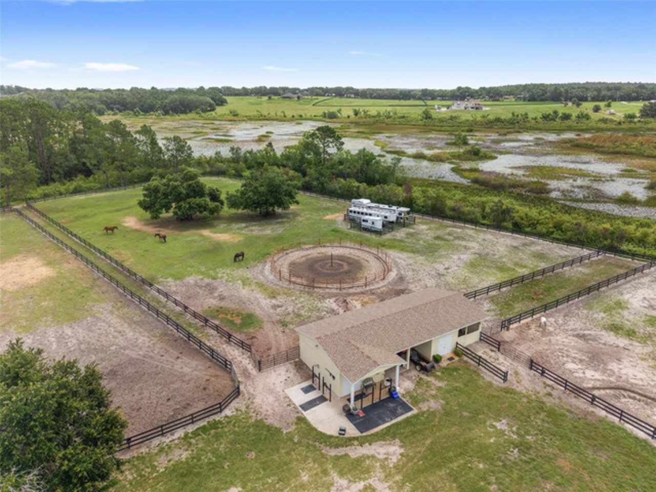 Welcome to this Immaculate Farm, a move-in-ready equestrian estate tucked away at the end of scenic Old Grove Road in beautiful Clermont, Florida. Spanning over 24+ acres, with the main residence situated on 7+ acres private and with security gate. Located just outside the growing city of Clermont and by Lake Louisa State Park. Louisa State park offers about 15 miles of horse trails and also Equine camping opportunities. This turnkey property is thoughtfully designed for both comfortable living and premium horse care. At the heart of the farm is a spacious 3-bedroom, 2-bathroom ranch-style home offering over 2, 500 sq ft of updated living space. Paved driveway up to the home where you will enjoy panoramic views of the horse facilities from nearly every angle. The home features a split floor plan for enhanced privacy, exterior paint (2025), and all-new roofs on every building (except the shed) and fencing completely repainted in 2024. The home features a light-filled living room that flows into a private dining room. A kitchen and bathrooms with quartz countertops and modern finishes. Renovated bathrooms with fresh, updated design and quartz counter tops. A master suite extension with private hallway, large 7' x 17' walk-in closet. An expansive laundry area with 20+ ft of built-in storage. A newly added 2-car garage with a half bath. A bonus office/playroom (20 x 12) with walk-in closet. For horse enthusiasts, the property is truly a dream with 6 irrigated pastures, each equipped with Nelson automatic waterers. A 75’ x 130’ riding arena at the entrance which includes a 12’ x 30’ shed with electricity—perfect for additional storage. The arena has water available for horses. The farms has Two barns: • 2-stall barn with runs • 4-stall barn with large tack room with dehumidifier and feed room with AC wall unit Ride around the property on the outside the fenced pastures. One of the pastures includes a round pen. On top of all of these, the farm has Two RV hook-ups (50 AMP and 30 AMP); two wells to support the home and the farm’s irrigation needs. Just a short drive to Orlando, Ocala, and Tampa. Whether you're looking for a full-time residence or a seasonal retreat, This farm offers an exceptional blend of rural tranquility, equestrian functionality, and modern comfort. Don't' miss this opportunity to enjoy central Florida at its best.