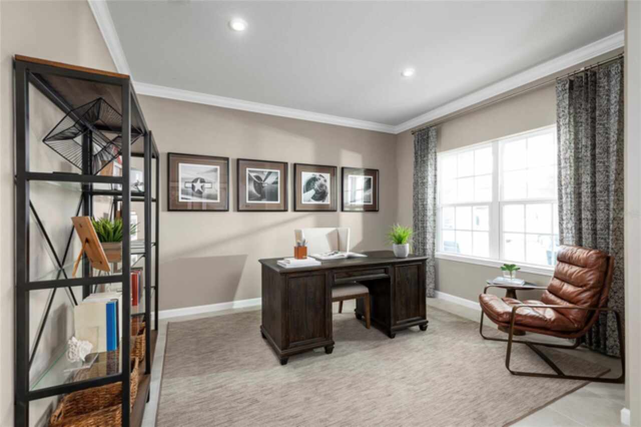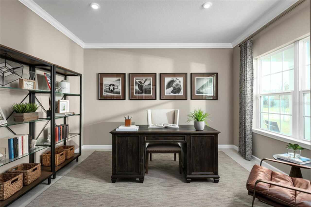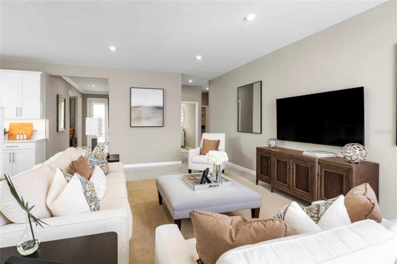 Under Construction. Welcome to Lake Nellie Crossing! No CDD fee, a low monthly HOA, and a low millage rate. In the rolling hills of Clermont, a nature-filled community with oversized homesites and a playground, tucked away from the hustle of Highway 27 while being only 12 minutes away from the closest shopping center. The Peterson Cove single-family villa is the picture of modern living. Enter through the inviting foyer to see the study. The wide-open family room flows effortlessly to the gourmet kitchen and dining area with a large island and huge walk-in pantry. Three more bedrooms and a full bath are tucked quietly into their own wing. Your luxurious owner’s suite stuns with its huge walk-in closet, double vanity bath, oversized shower and private access to the lanai. Discover The Peterson Cove. All Ryan Homes now include WIFI-enabled garage opener and Ecobee thermostat. **Closing cost assistance is available with use of Builder’s affiliated lender**. DISCLAIMER: Prices, financing, promotion, and offers subject to change without notice. Offer valid on new sales only. See Community Sales and Marketing Representative for details. Promotions cannot be combined with any other offer. All uploaded photos are stock photos of this floor plan. Actual home may differ from photos.