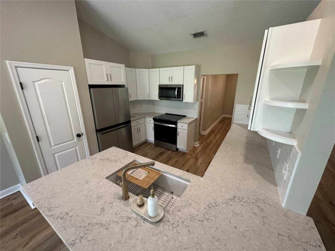 Stunning Fully Renovated 3-Bedroom Home in Gated Clermont Community on almost Half an Acre (.40)! Move in Ready and Just About Brand New! Welcome to your dream home in the heart of Clermont! Nestled in a beautifully maintained gated community on a cul de sac, this completely updated 3-bedroom, 2-bath residence offers the perfect blend of modern luxury and comfortable living. Step inside to discover a bright, open floor plan with brand new luxury flooring, fresh paint throughout, and designer finishes. The gourmet kitchen is a chef’s delight, featuring all-new stainless steel appliances, sleek quartz countertops, custom cabinetry, and stylish backsplash. Both bathrooms have been fully remodeled with contemporary fixtures, vanities, and tilework that exude spa-like elegance. There is also a bonus room that can be used as an office, a reading retreat, or a media room. Outside, the home offers beautifully refreshed landscaping and a private backyard with New Vinyl Fence —perfect for relaxing or entertaining. Located just minutes from top-rated schools, shopping, dining, and major highways, this home combines comfort, convenience, and security in one of Clermont's most desirable communities. Don’t miss your chance to own this turnkey gem—schedule your private showing today!