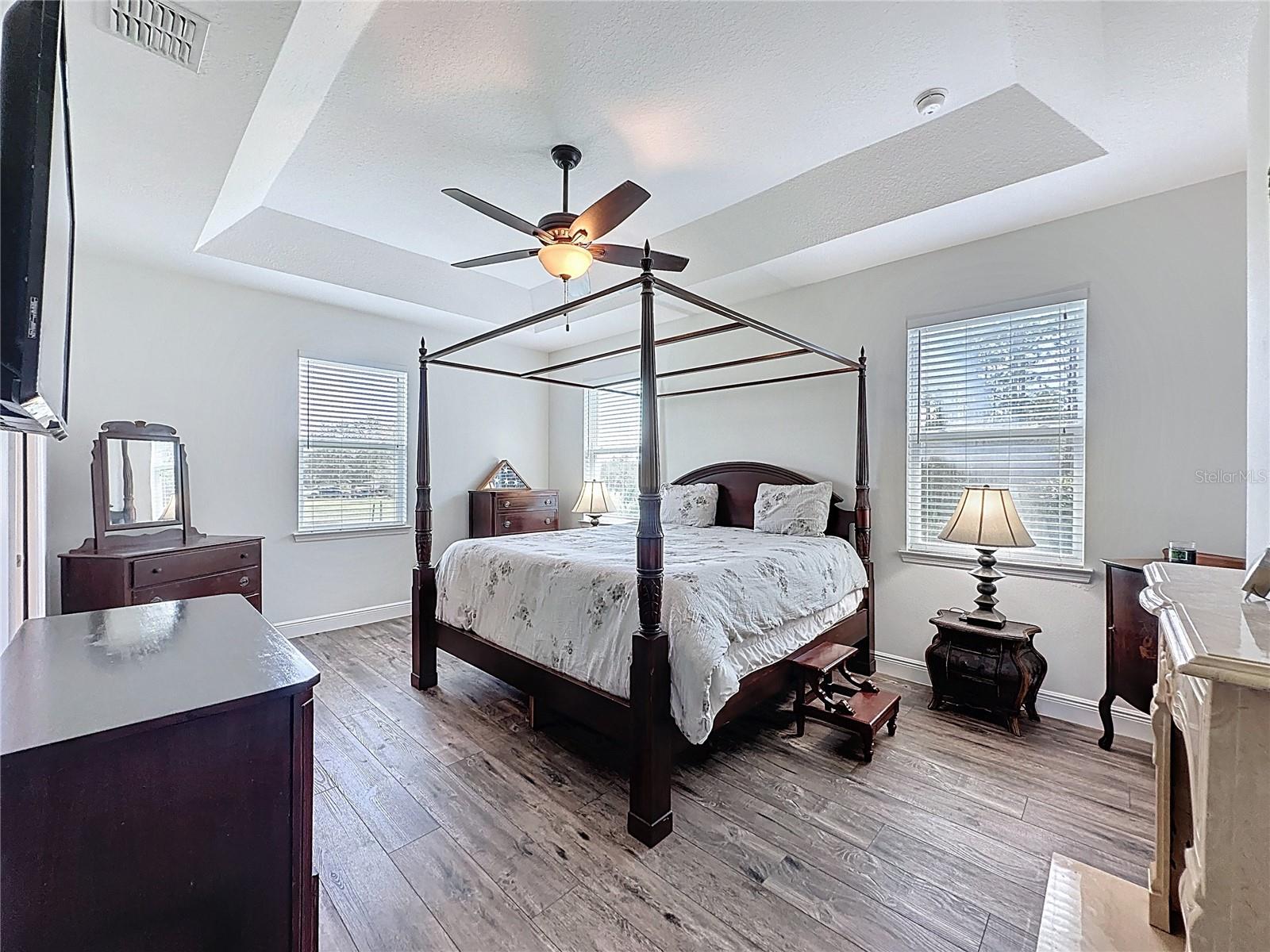 Cathedral Ceiling(s), Ceiling Fans(s), High Ceilings, Living Room/Dining Room Combo, Open Floorplan, Primary Bedroom Main Floor, Solid Surface Counters, Split Bedroom, Thermostat, Walk-In Closet(s)
