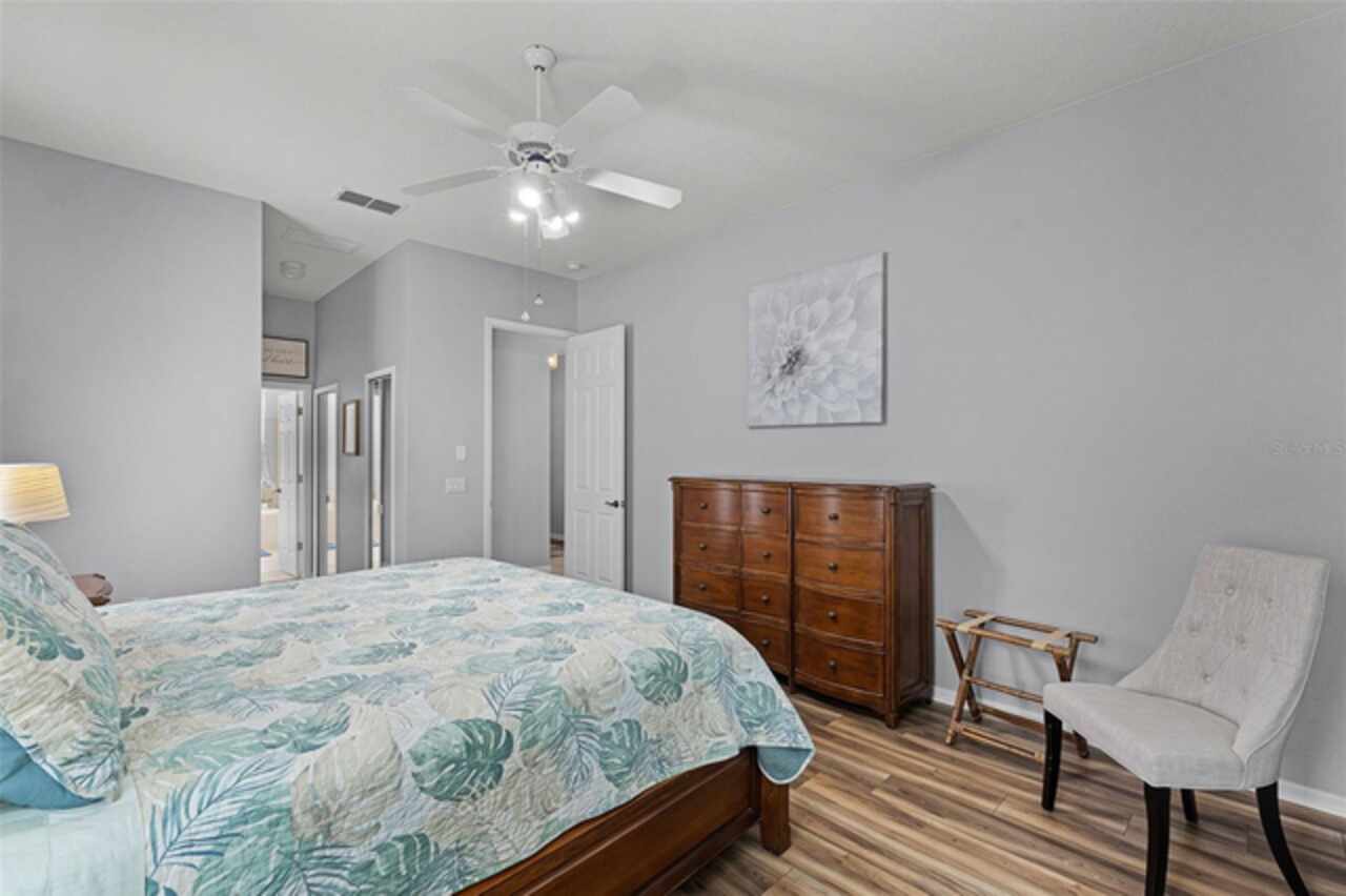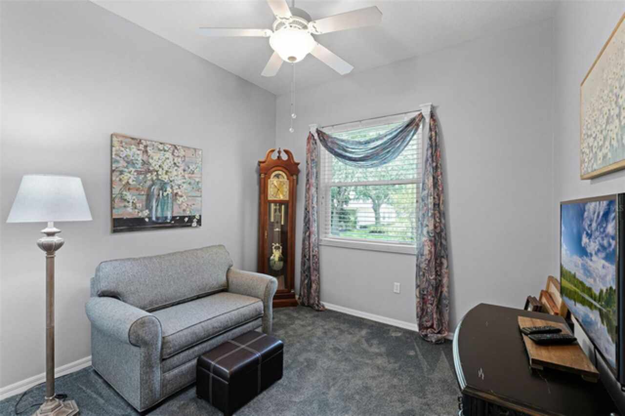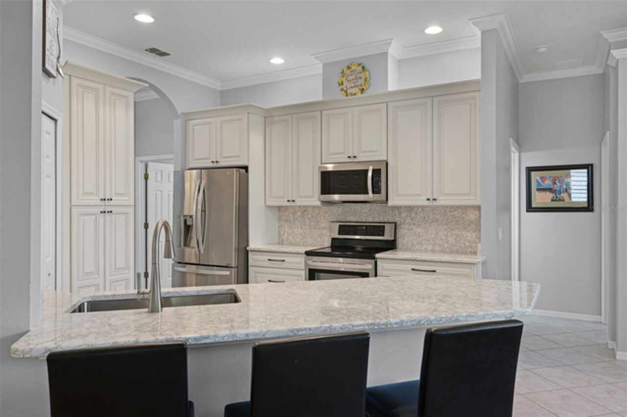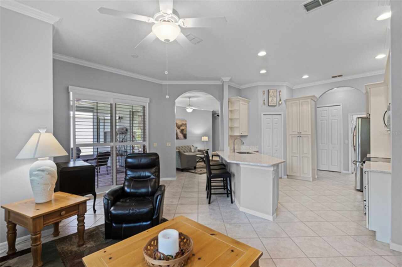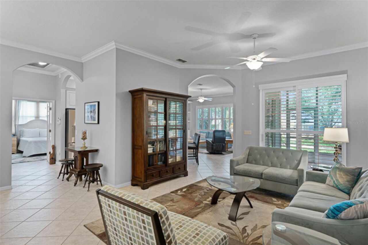 Step into effortless living in the highly desirable 55+ community of Summit Greens! This impeccably maintained 2-bedroom, 2-bath home with a large office/den offers over 2, 000 square feet of thoughtfully designed living space. From the high ceilings and crown molding to the custom baseboards and architectural touches, every corner radiates warmth and elegance. At the heart of the home is a tastefully renovated kitchen, featuring stainless steel appliances, a generous pantry, and an open layout perfect for entertaining. The expansive primary suite provides a true retreat, complete with a walk-in closet and plenty of natural light for a peaceful, private escape. Recent upgrades include a new roof (2022) and updated finishes throughout. Enjoy your mornings on the screened front porch, and your evenings relaxing on the rear lanai overlooking a serene, tree-canopied garden lot—your own slice of nature and privacy. Living in Summit Greens is all about lifestyle. This gated, guard-secured community offers resort-quality amenities like a luxurious outdoor pool, fitness center, tennis and pickleball courts, spa, bocce, shuffleboard, and more. The grand clubhouse is a hub of activity, with billiards, social clubs, dances, art classes, and a fully equipped workout facility. Golf lovers will appreciate easy access Clermont National Golf Course, while the nearby “The View at Clermont National” makes dining out a breeze. With lawn care, cable, internet, and access to all amenities included in the HOA dues, plus ample garage storage with space for both a car and golf cart, this home truly has it all. Just minutes from downtown Winter Garden, top hospitals, dining, shopping, and major highways, this is the perfect blend of comfort, community, and convenience. Schedule your private showing today!