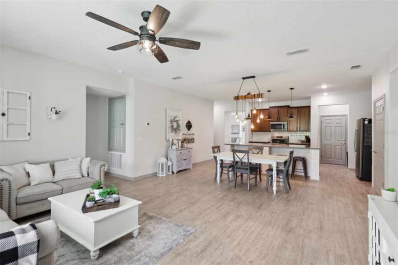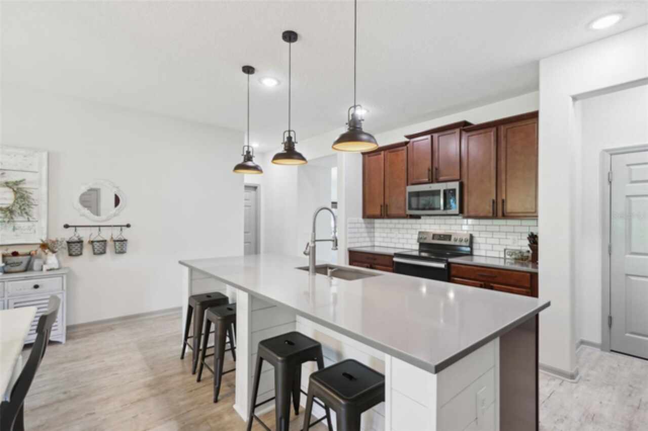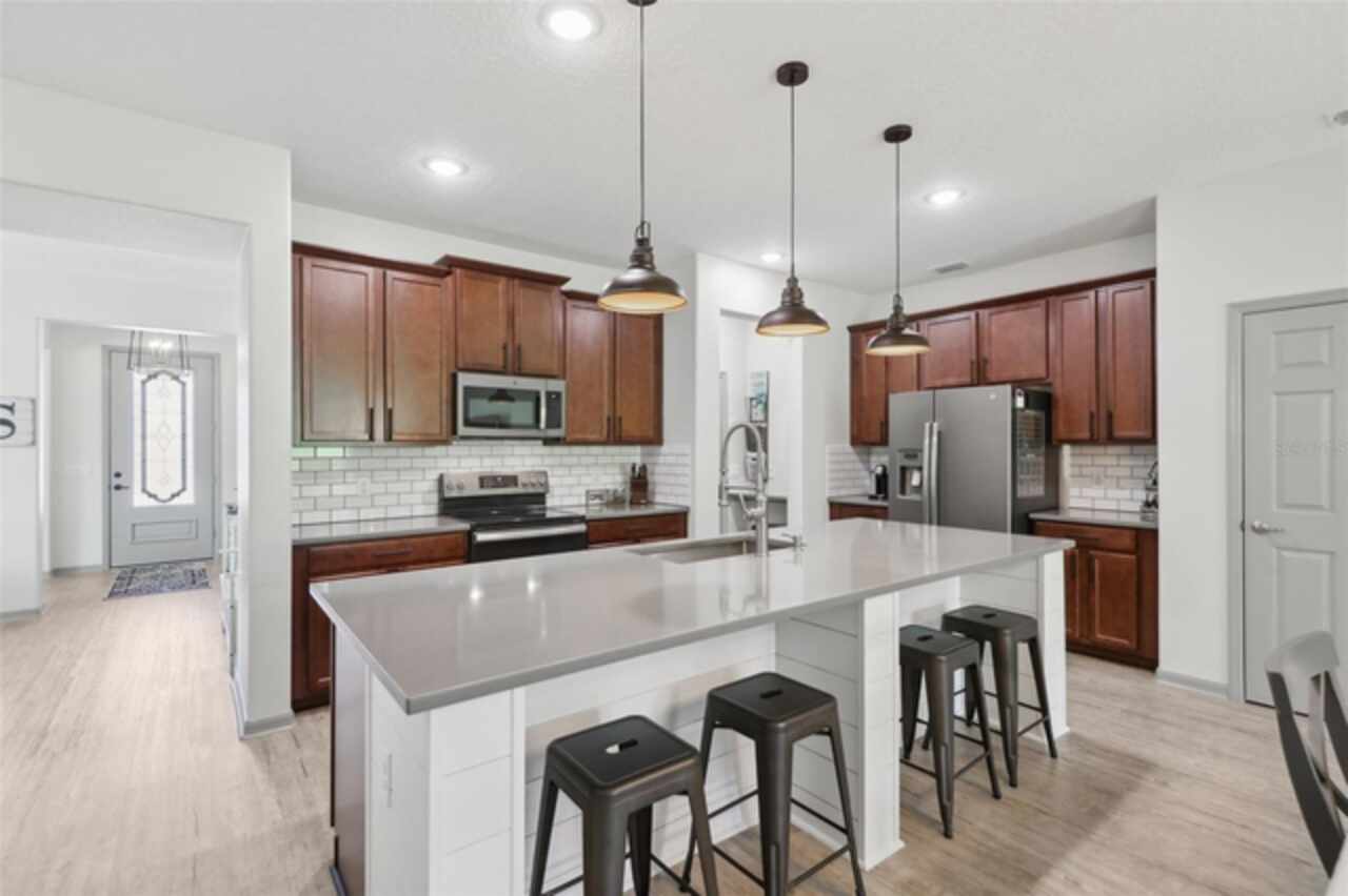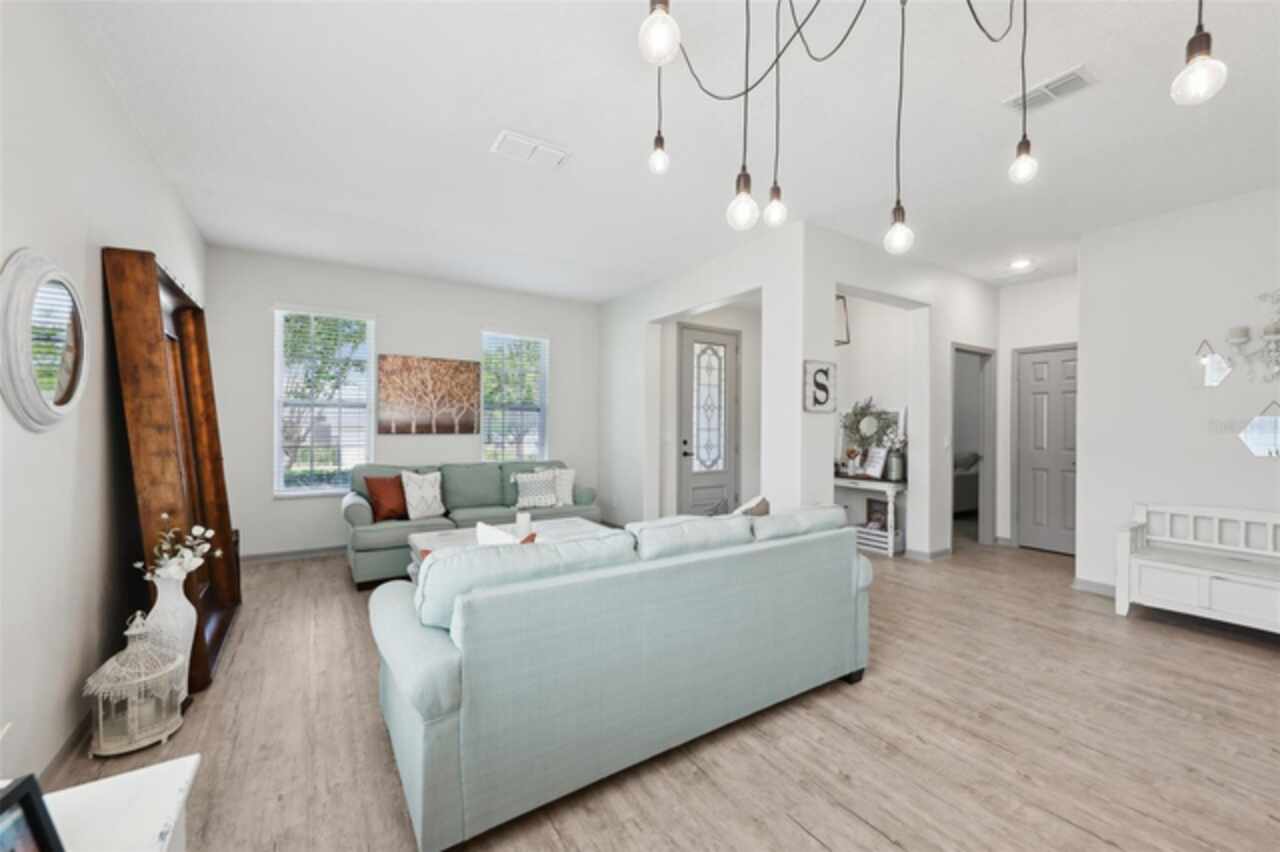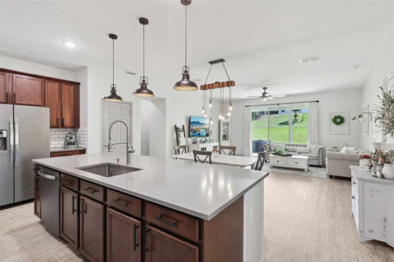 Welcome to your picture perfect Pinterest home. It features an open concept 4 bedroom 3 bath with a separate office that has a closet and can be a 5th bedroom. It has been COMPLETELY updated with all high end finishes. Wood look LVP flooring throughout the entire home. Beautiful quartz countertops in the kitchen and bathrooms. Slate gray GE kitchen appliances that are finger proof free. Oven has Air Fryer option. Soft-close cabinet doors and drawers. LED Edison lighting. Subway tile kitchen backsplash. Nice porcelain tile with glass enclosures in the showers. High ceilings throughout with a tray ceiling in the owner's suite. Completely re-painted inside and out. Located across the street from Little Lake Nellie with a partial lake view. Enjoy low HOA dues. Conveniently located close to everything, yet far enough away for a quiet country feel. Public boat launch to Lake Louisa and chain of lakes, park, playground, picnic area and boat/RV storage area is located close by. This home is truly one of a kind.