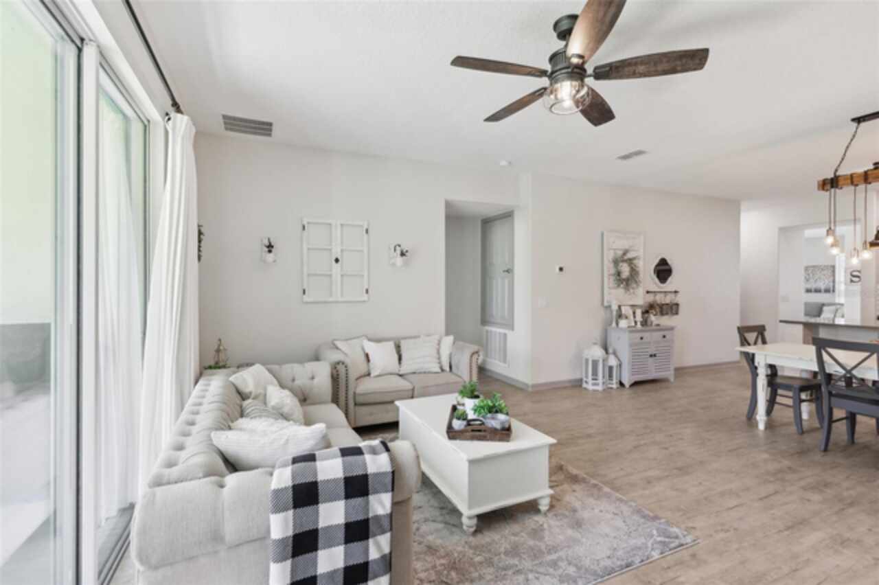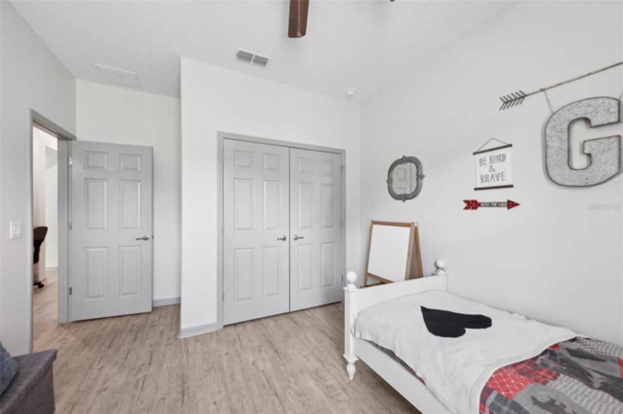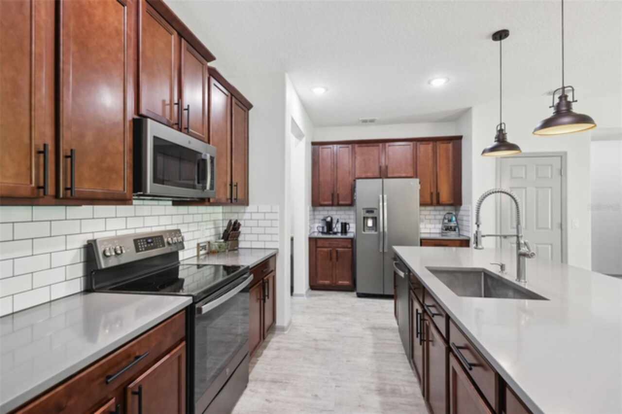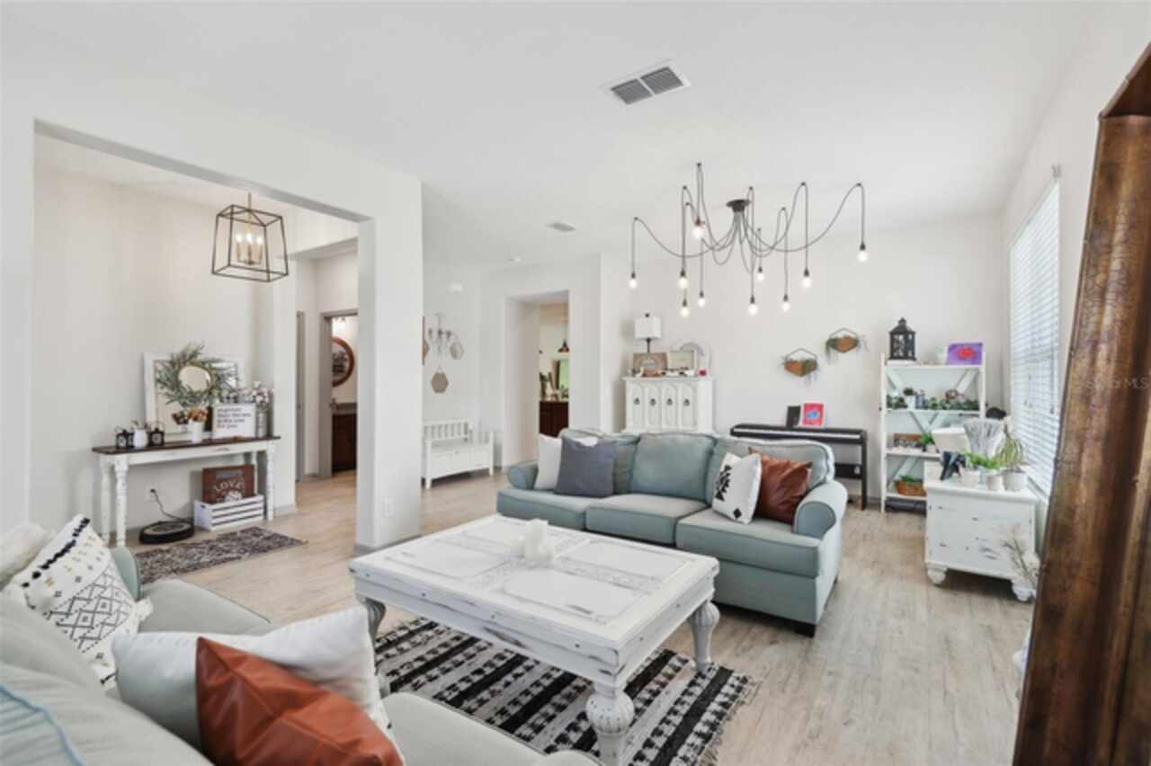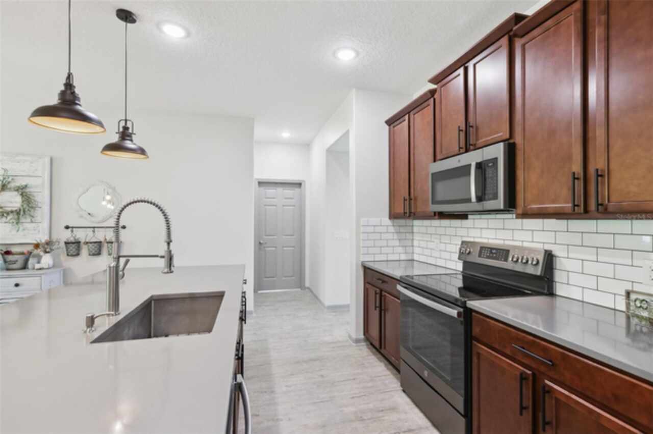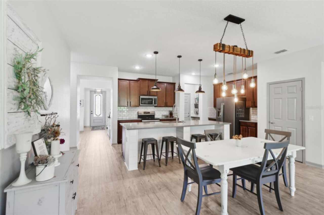 Welcome to your picture perfect Pinterest home. It features an open concept 4 bedroom 3 bath with a separate office that has a closet and can be a 5th bedroom. It has been COMPLETELY updated with all high end finishes. Wood look LVP flooring throughout the entire home. Beautiful quartz countertops in the kitchen and bathrooms. Slate gray GE kitchen appliances that are finger proof free. Oven has Air Fryer option. Soft-close cabinet doors and drawers. LED Edison lighting. Subway tile kitchen backsplash. Nice porcelain tile with glass enclosures in the showers. High ceilings throughout with a tray ceiling in the owner's suite. Completely re-painted inside and out. Located across the street from Little Lake Nellie with a partial lake view. Enjoy low HOA dues. Conveniently located close to everything, yet far enough away for a quiet country feel. Public boat launch to Lake Louisa and chain of lakes, park, playground, picnic area and boat/RV storage area is located close by. This home is truly one of a kind.