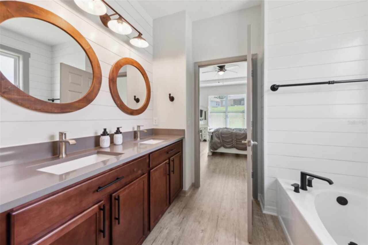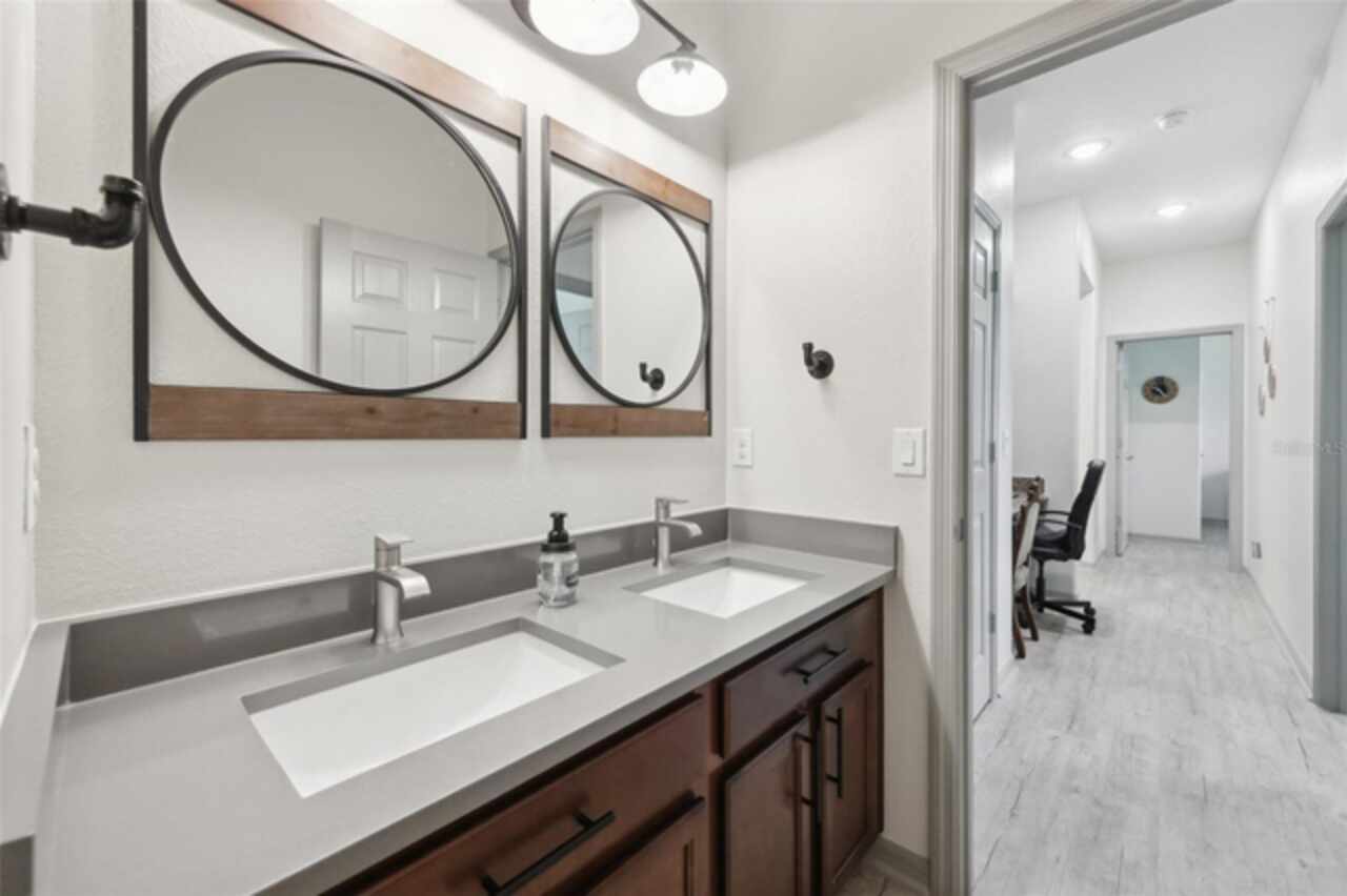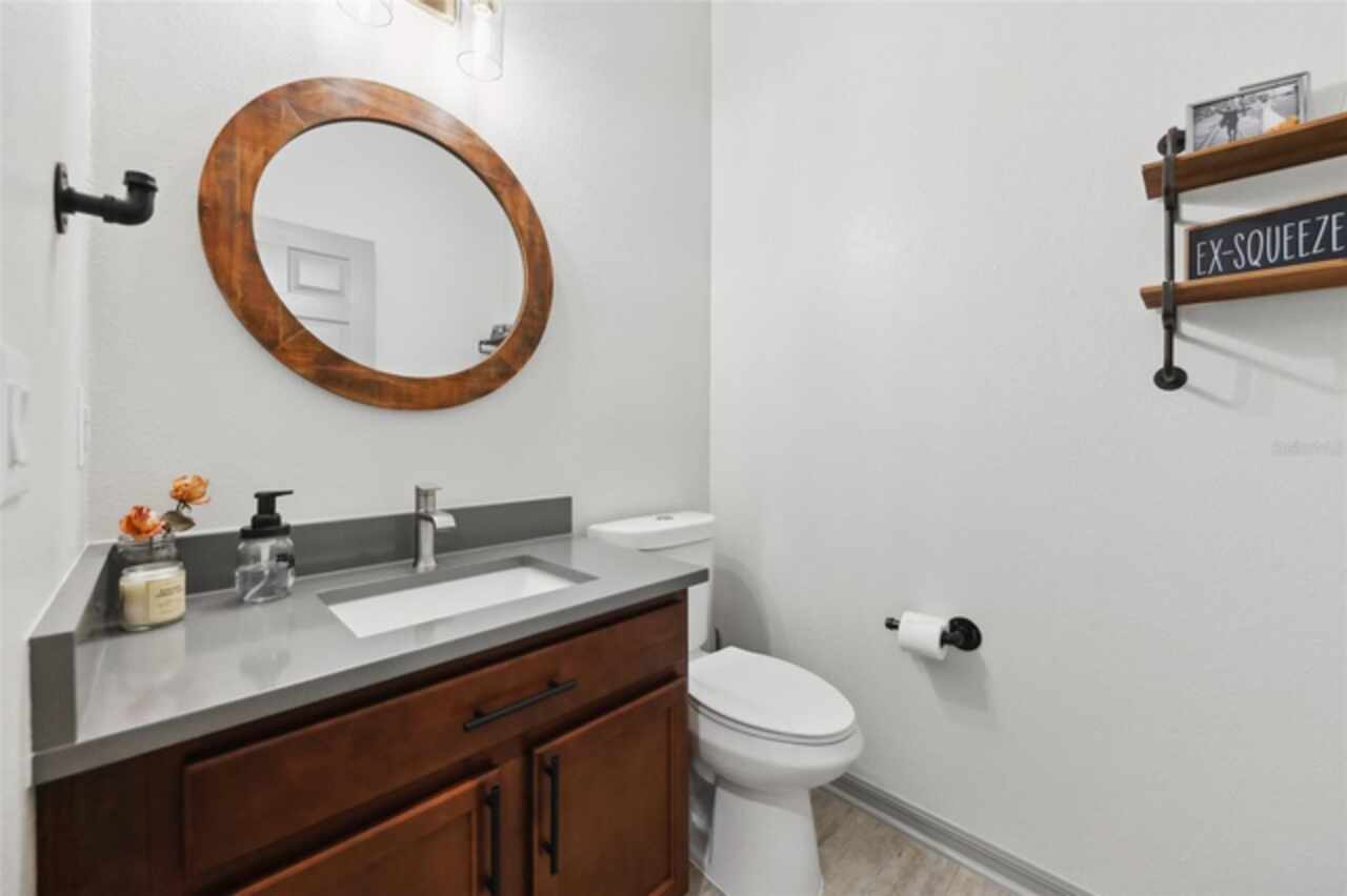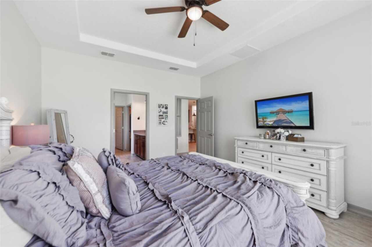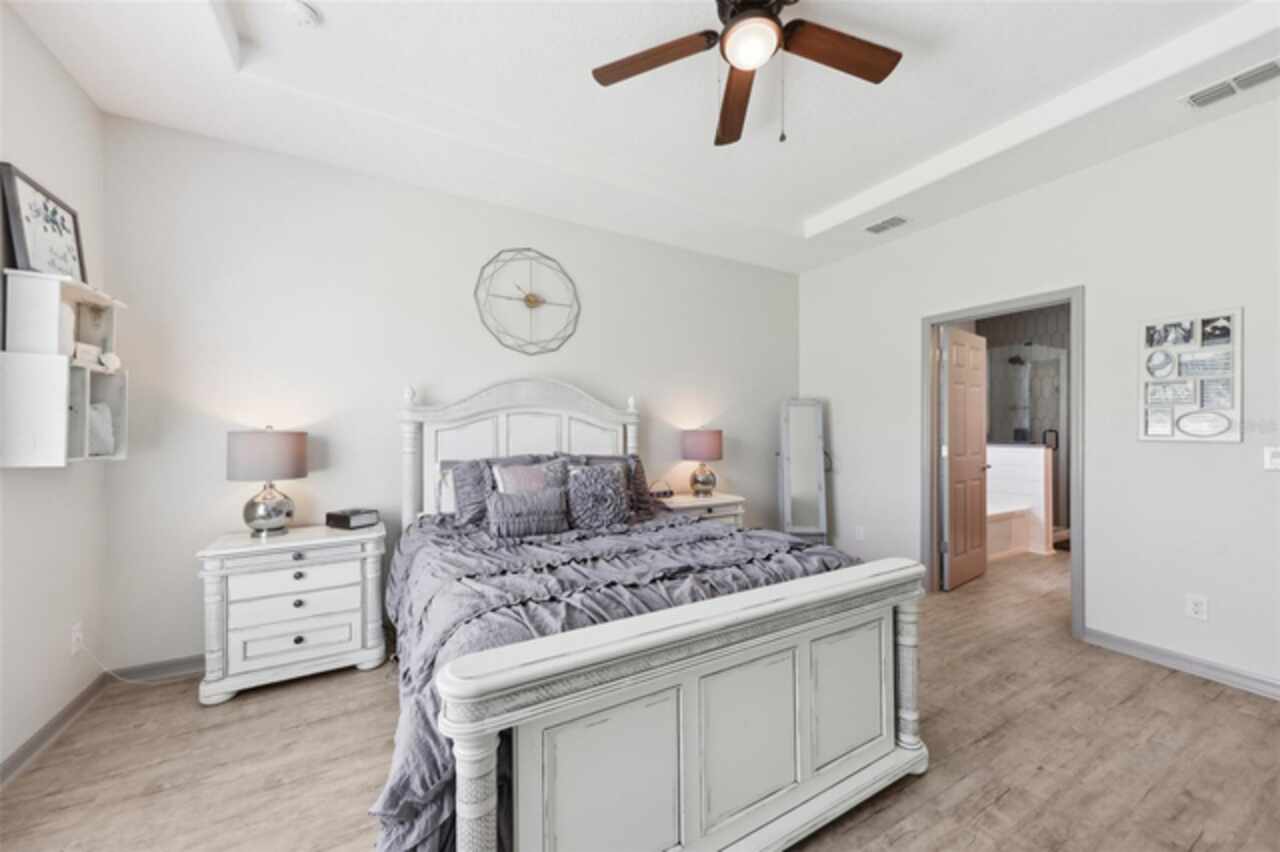 Welcome to your picture perfect Pinterest home. It features an open concept 4 bedroom 3 bath with a separate office that has a closet and can be a 5th bedroom. It has been COMPLETELY updated with all high end finishes. Wood look LVP flooring throughout the entire home. Beautiful quartz countertops in the kitchen and bathrooms. Slate gray GE kitchen appliances that are finger proof free. Oven has Air Fryer option. Soft-close cabinet doors and drawers. LED Edison lighting. Subway tile kitchen backsplash. Nice porcelain tile with glass enclosures in the showers. High ceilings throughout with a tray ceiling in the owner's suite. Completely re-painted inside and out. Located across the street from Little Lake Nellie with a partial lake view. Enjoy low HOA dues. Conveniently located close to everything, yet far enough away for a quiet country feel. Public boat launch to Lake Louisa and chain of lakes, park, playground, picnic area and boat/RV storage area is located close by. This home is truly one of a kind.