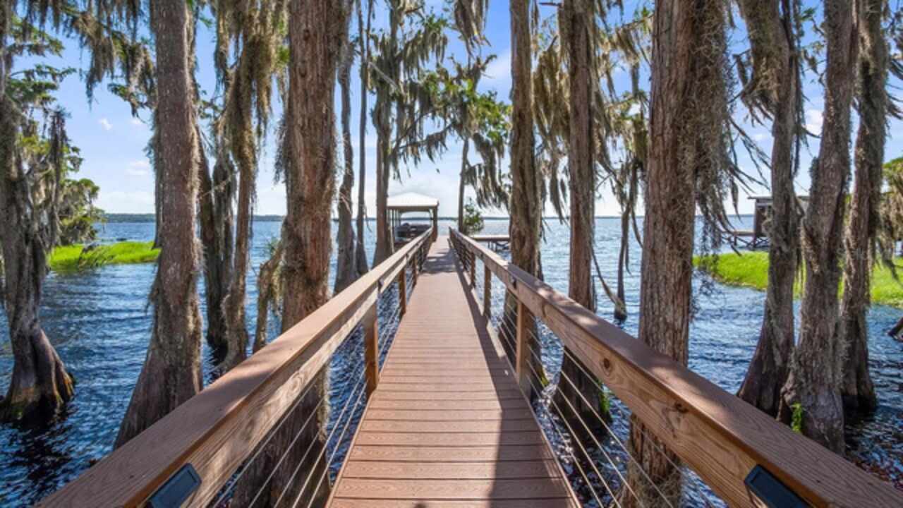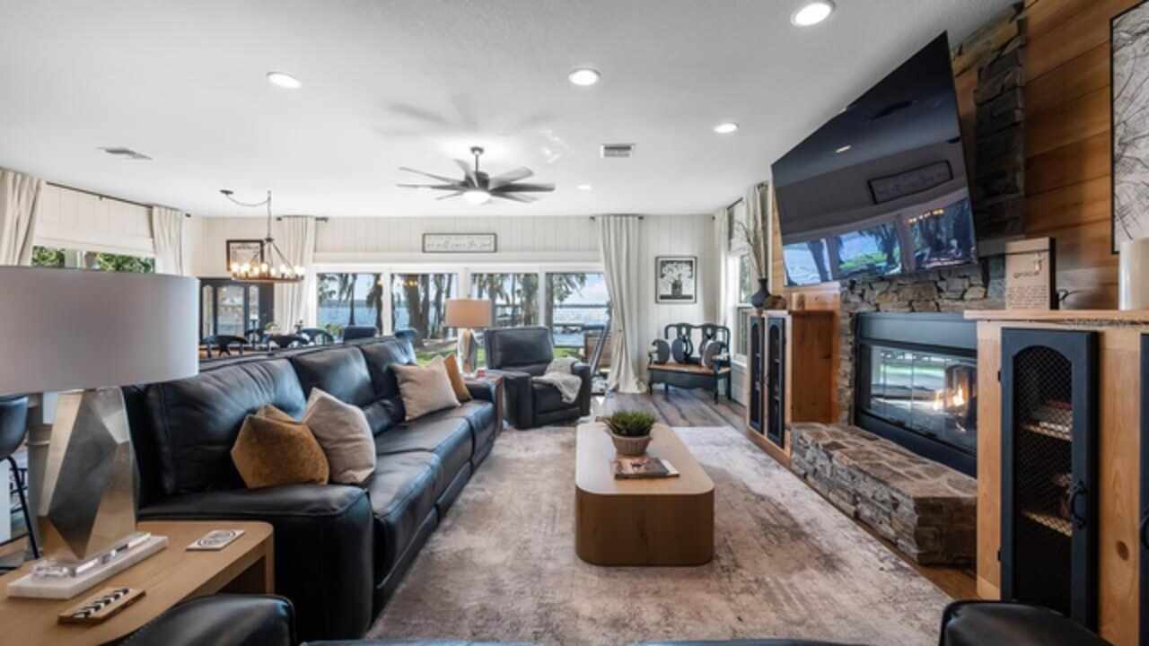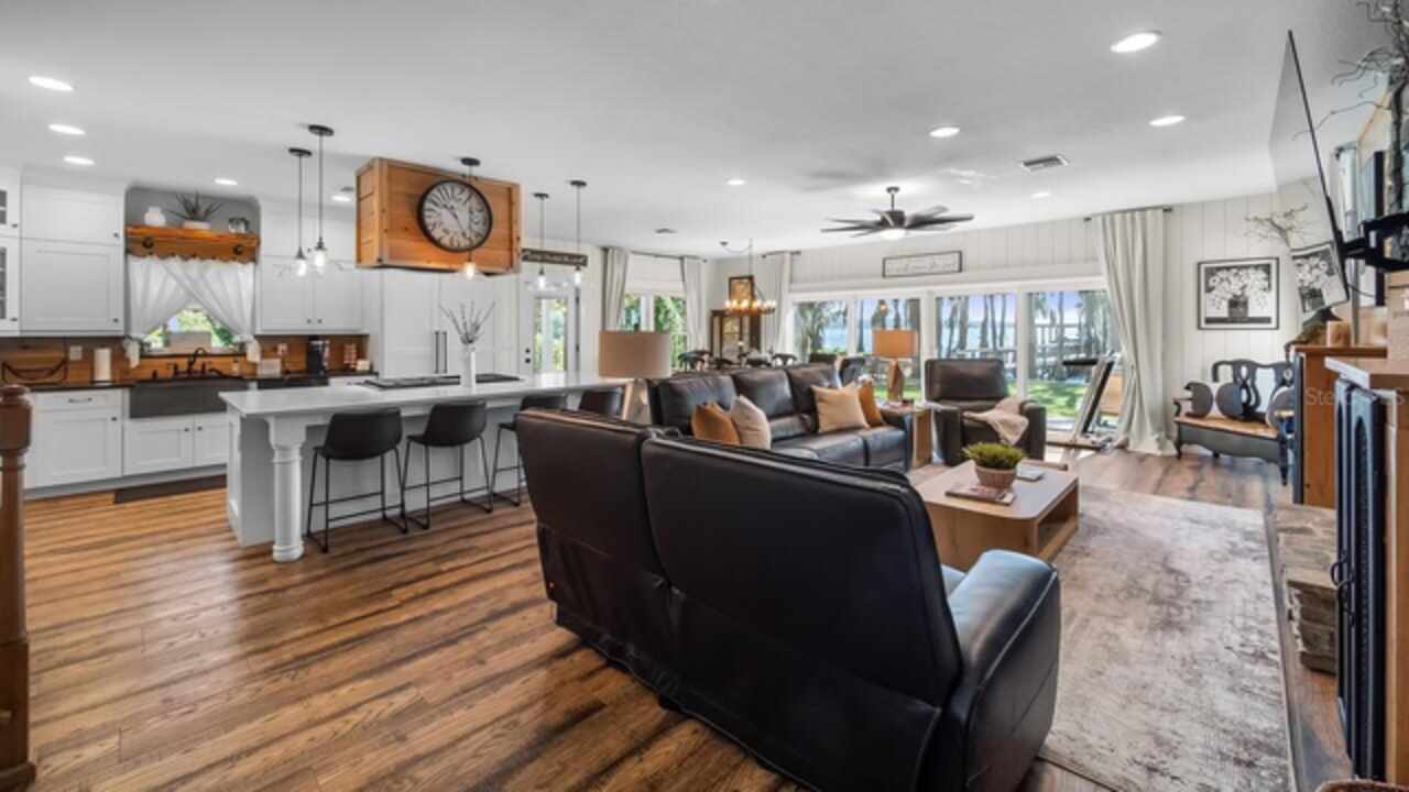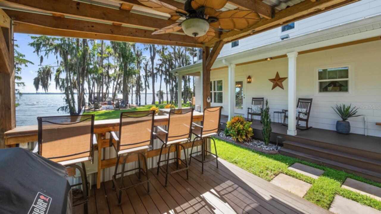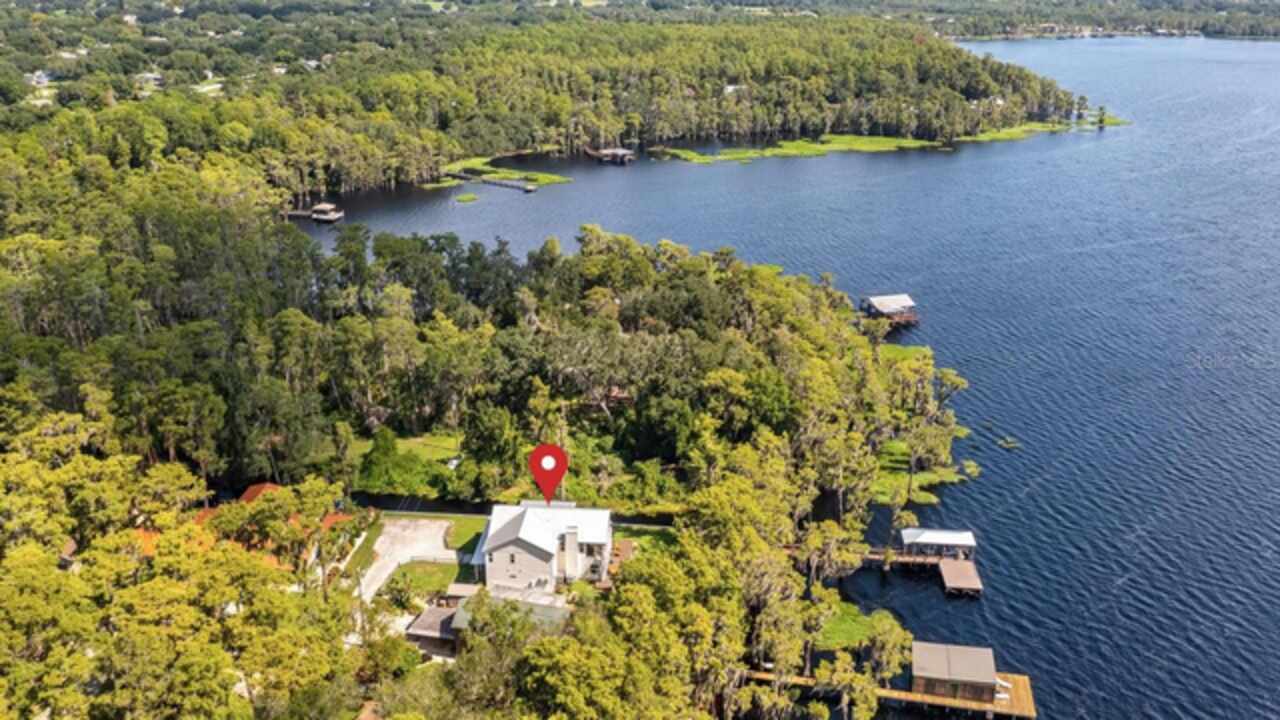 PRICED BELOW APPRAISAL PRICE.....A RARE AND EXTRONDINARY OPPORTUITY AWAITS YOU WITH TIMELESS ELEGANCE AND COMFORTABLE LIVING WITH THIS 4 BEDROOM/4 BATHROOM DIRECT LAKE FRONT HOME ON THE CLERMONT CHAIN OF LAKES. With approximately 3220 sq ft of luxury living this 2019 home combines the finest of finishes with multiple upgrades. This home offers an open airy floor plan with lots of natural light and panoramic lake views of Lake Louisa for your enjoyment, and is perfect for entertaining family and friends. As you walk through the front door you will be greeted with a large great room adorned with high ceilings, a gas stone fireplace, luxury vinal plank flooring, Cypress accents, a gourmet kitchen, large windows, and pocket French Doors leading out to of the lake and boat house. The gourmet kitchen which flows seamlessly into expansive open living areas, is equipped with plenty of upgraded wood cabinets with pull out drawers, a large center island, luxury high end Dacor Appliances which are designed for style and efficiency. The Dacor built in column refrigerator also boasts a large freezer and icemakers. Baking and cooking gourmet meals are made easy with this Dacor 6 burner gas stove with an electric griddle, a dual oven that boasts a bread baking oven, and a food warmer. The formal dining room with views of the lake adds extra dining seating for those special occasions with family and friends. As you move through the home you will notice the tongue and grove and shiplap Cypress walls and accents, which makes this home especially stand out above the others. The downstairs bedroom with a large walk-in closet can be also used as a Primary Bedroom. The bathroom has a tiled walk-in shower, stone counter tops, luxury vinyl flooring. The downstairs office is large, and can accommodate 2 desks or a seating area. There is a door that leads outside the large laundry room with a connecting bathroom with Stone counter tops and walk in shower. The Crown Jewel is the owner’s Primary Retreat, boasting a seating area with a gas fireplace, dual closets, and French doors leading to your private relaxing screened balcony overlooking the lake with beautiful sunsets and sunrises, and cool breezes. Moving into the Primary Bathroom hosts a claw foot ceramic bath tub, his and her sinks, and large walk-in shower. To finish the upstairs, you will find 2 other bedrooms, 1 bathroom with tub & shower combo, and a flex room overlooking the lake that can be used as an office, nursery, man cave, den, the choice is yours. If you are looking for outdoor living this home has it. The outdoor features include, Composite wrap around porch with Cypress Ceiling, storage area with seating overlooking the lake with sink, fire pit, beach, sea wall, 2023 New boat house with electric and water, composite walkway deck, New Wrap Around Deck, New Water Purification System, New Sprinkler System, Gutters and Gutter Drains, New Curbing Around the Home, New Landscaping. 2025 New Septic Pump and Septic pump out. This residence offers elegant design, functionality, and stunning waterfront living, with skiing, boating and fishing on a 3600 Acre Lake which is the largest on the Chain. This home is the perfect format for modern day relaxing, enjoyment, and living.