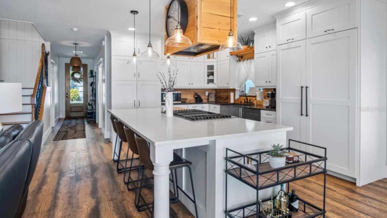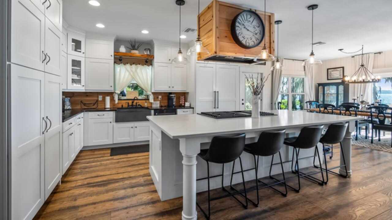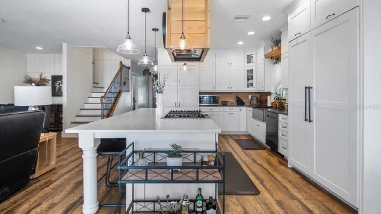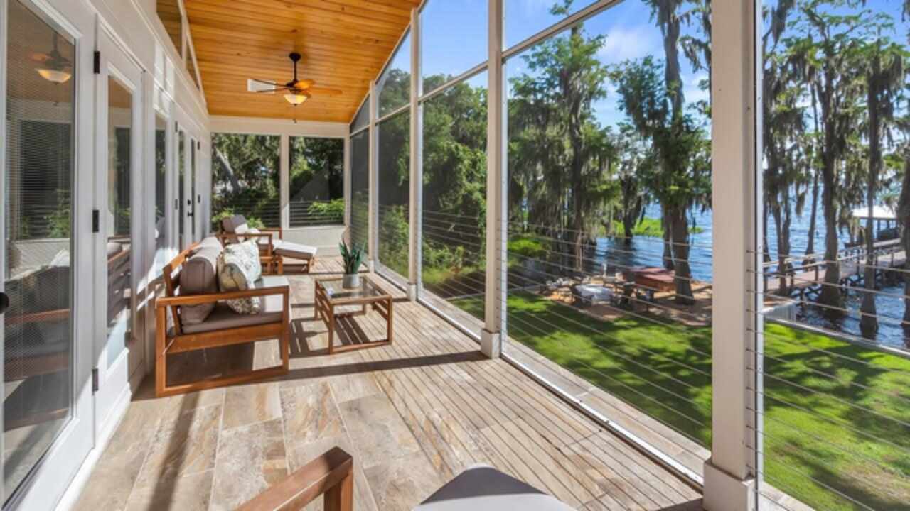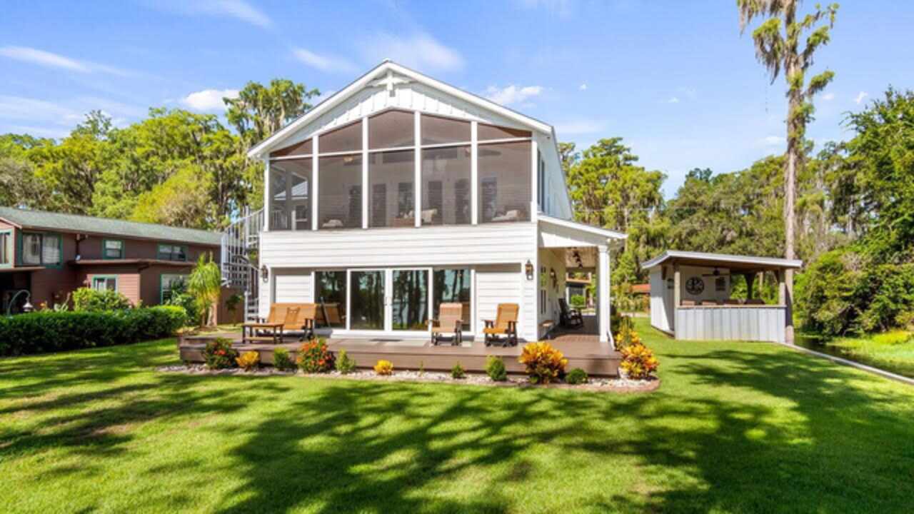 PRICED BELOW APPRAISAL PRICE.....A RARE AND EXTRONDINARY OPPORTUITY AWAITS YOU WITH TIMELESS ELEGANCE AND COMFORTABLE LIVING WITH THIS 4 BEDROOM/4 BATHROOM DIRECT LAKE FRONT HOME ON THE CLERMONT CHAIN OF LAKES. With approximately 3220 sq ft of luxury living this 2019 home combines the finest of finishes with multiple upgrades. This home offers an open airy floor plan with lots of natural light and panoramic lake views of Lake Louisa for your enjoyment, and is perfect for entertaining family and friends. As you walk through the front door you will be greeted with a large great room adorned with high ceilings, a gas stone fireplace, luxury vinal plank flooring, Cypress accents, a gourmet kitchen, large windows, and pocket French Doors leading out to of the lake and boat house. The gourmet kitchen which flows seamlessly into expansive open living areas, is equipped with plenty of upgraded wood cabinets with pull out drawers, a large center island, luxury high end Dacor Appliances which are designed for style and efficiency. The Dacor built in column refrigerator also boasts a large freezer and icemakers. Baking and cooking gourmet meals are made easy with this Dacor 6 burner gas stove with an electric griddle, a dual oven that boasts a bread baking oven, and a food warmer. The formal dining room with views of the lake adds extra dining seating for those special occasions with family and friends. As you move through the home you will notice the tongue and grove and shiplap Cypress walls and accents, which makes this home especially stand out above the others. The downstairs bedroom with a large walk-in closet can be also used as a Primary Bedroom. The bathroom has a tiled walk-in shower, stone counter tops, luxury vinyl flooring. The downstairs office is large, and can accommodate 2 desks or a seating area. There is a door that leads outside the large laundry room with a connecting bathroom with Stone counter tops and walk in shower. The Crown Jewel is the owner’s Primary Retreat, boasting a seating area with a gas fireplace, dual closets, and French doors leading to your private relaxing screened balcony overlooking the lake with beautiful sunsets and sunrises, and cool breezes. Moving into the Primary Bathroom hosts a claw foot ceramic bath tub, his and her sinks, and large walk-in shower. To finish the upstairs, you will find 2 other bedrooms, 1 bathroom with tub & shower combo, and a flex room overlooking the lake that can be used as an office, nursery, man cave, den, the choice is yours. If you are looking for outdoor living this home has it. The outdoor features include, Composite wrap around porch with Cypress Ceiling, storage area with seating overlooking the lake with sink, fire pit, beach, sea wall, 2023 New boat house with electric and water, composite walkway deck, New Wrap Around Deck, New Water Purification System, New Sprinkler System, Gutters and Gutter Drains, New Curbing Around the Home, New Landscaping. 2025 New Septic Pump and Septic pump out. This residence offers elegant design, functionality, and stunning waterfront living, with skiing, boating and fishing on a 3600 Acre Lake which is the largest on the Chain. This home is the perfect format for modern day relaxing, enjoyment, and living.