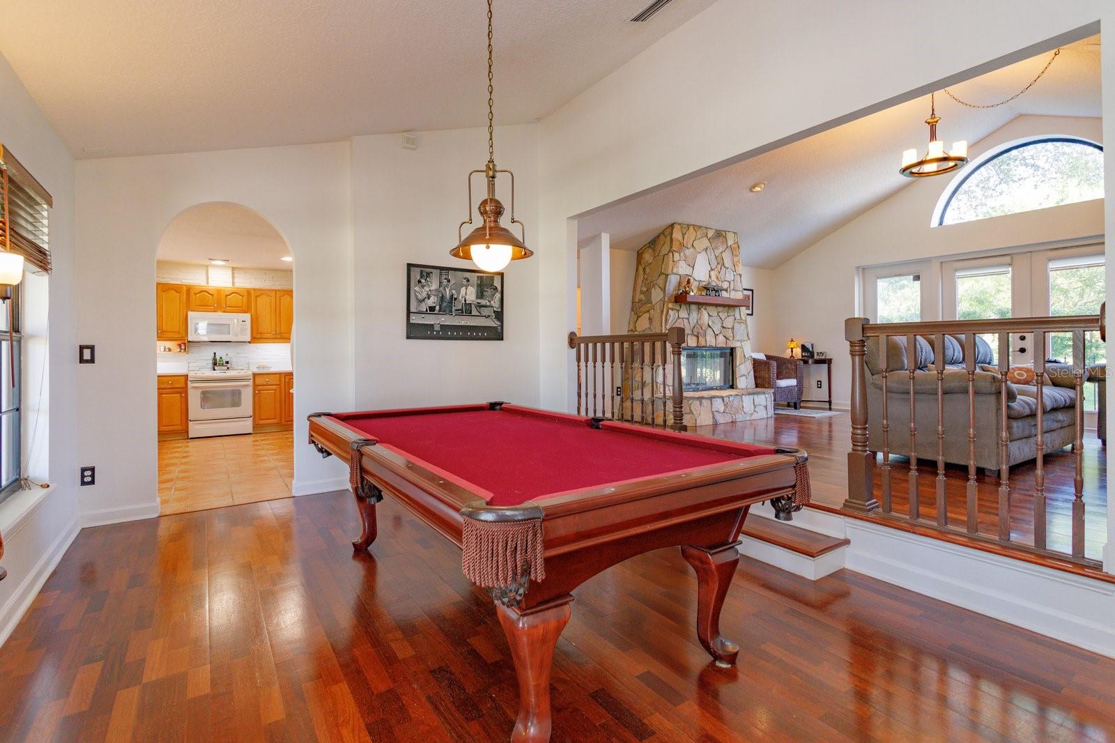 Rare opportunity in the highly desirable and much sought after Amberhill subdivision with Clermont Chain of Lakes access. Aptly named "Amberhill", elevations like this are rarely found in Florida. This one owner home has been well loved and cared for and sits on over 1/2 acre. New roof in 2024 and brand-new A/C! Custom homes like this are hard to come by these days, with large rooms, a split bedroom plan, and wonderful owner's retreat. Beautiful tile, wood and luxury vinyl plank flooring throughout with no carpet. Beautiful stone wood burning fireplace! Stone counter tops in the kitchen and both baths. The primary bath features a large walk-in shower and his and hers closets. Enjoy the enclosed bar and the multiple outdoor entertainment areas. Zoned for top schools and minutes from shopping, dining, and major highways. *Aerial photo property lines are an estimate and to be verified by buyer.