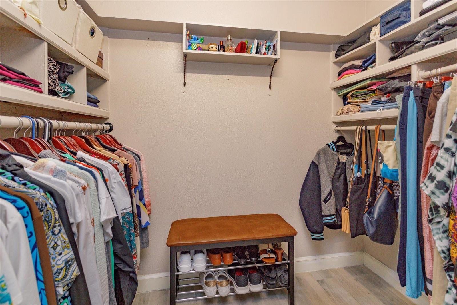 Eat-in Kitchen, High Ceilings, Primary Bedroom Main Floor, Solid Wood Cabinets, Split Bedroom, Stone Counters, Thermostat, Vaulted Ceiling(s), Walk-In Closet(s)