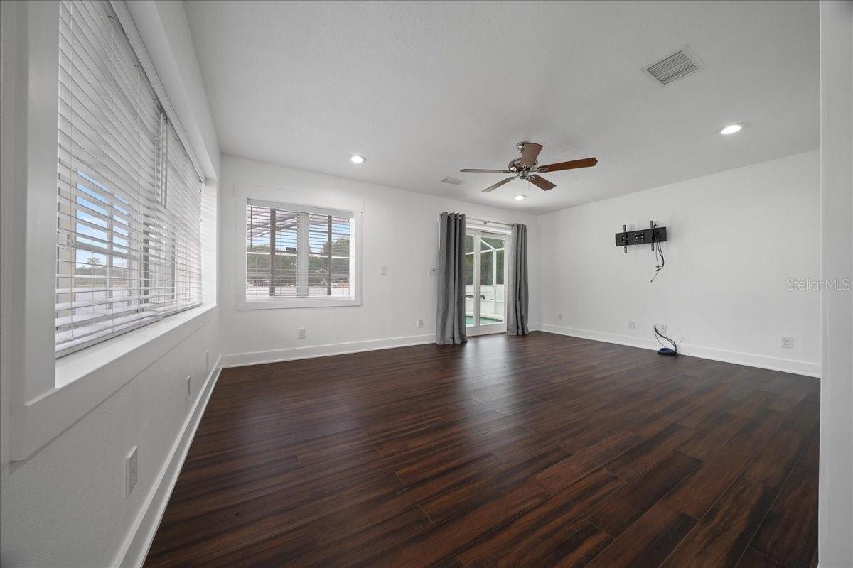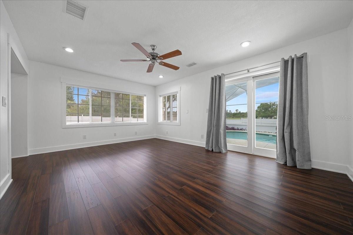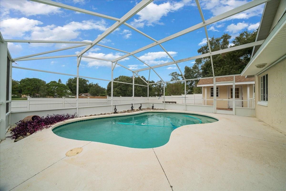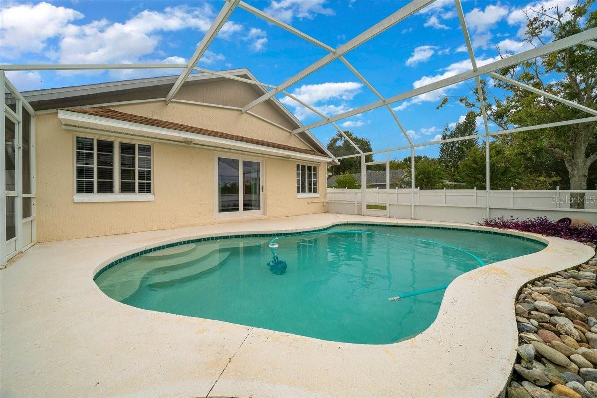 Welcome home. This gorgeous ranch style Property offers three bedrooms, two bathrooms, and tons of living space! From the moment you arrive at the property, you will appreciate the low maintenance landscaping and beautiful oversized lot. Upon entry, you’ll be greeted by a welcoming foyer with an adjacent kitchen and Open concept living room. This is the Dryer split plan which offers two bedrooms and a guest bathroom on the left side of the home as well as a primary suite on the right side of the home. The wonderfully maintained kitchen offer is eating space as well as a breakfast bar and it looks over the adjacent family room. The open concept, family room offers, beautiful bamboo floors that were just installed less than a year ago. These gorgeous bamboo floors continue throughout the primary suite as well as the additional living space at the rear of the home. The primary suite is fantastic. Offering a separate walk-in closet with built-in and a recently updated master bathroom, this suite is sure to impress! Headed out back, the beautiful pool offers, gorgeous sunset views with no rear neighbors. This oversize lot is fully privacy fenced in and offers spectacular space on either side of the home. There is a separate shed, a separate workshop with electric and lighting, and tons of paved patio space to entertain! Do not miss out on your opportunity to call this home! Call today for your private showing!