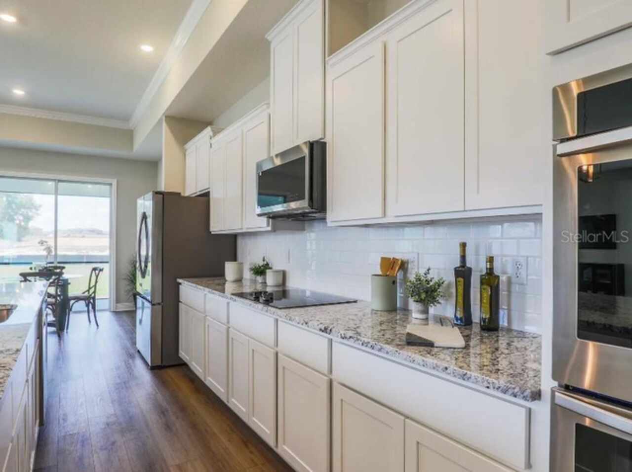 Pre-Construction. To be built. Introducing Stillwater Cove – A New Lakefront Community in Astatula, Florida! Featuring ½-acre homesites, sidewalk-lined streets, and included 3-car garages, this exclusive neighborhood offers a rare opportunity to live just 1 minute from the Astatula Boat Ramp on Little Lake Harris and only 45 minutes from downtown Orlando. Luxury Meets Comfort in The Venice! This thoughtfully crafted one-story home blends upscale finishes, open design, and breathtaking surroundings to create an exceptional living experience. Inside, 10’ ceilings enhance the open feel, while tray ceilings in the foyer and primary suite add refined architectural detail. The split-bedroom layout includes a private guest ensuite with full bath, ideal for extended family or overnight visitors. The primary suite is a true retreat, showcasing a tray ceiling, dual quartz vanities, oversized tiled shower, separate soaking tub, and large walk-in closet—a perfect balance of elegance and relaxation. At the heart of the home, the gourmet kitchen impresses with quartz countertops throughout, upgraded cabinetry, full line of stainless steel appliances including wall oven, cooktop, and side-by-side refrigerator, stylish backsplash, and a spacious walk-in pantry. The kitchen flows effortlessly into the spacious great room with soaring 11’ ceilings, where abundant natural light makes it perfect for gatherings and entertaining. Just off the great room, the den features a sliding glass door to the lanai and a French door with sidelights, offering flexibility for a home office or lounge space. A covered lanai invites you to relax outdoors, overlooking your expansive lot with lush landscaping. Additional highlights include 12x24 ceramic tile flooring throughout the entire home, blinds, laundry room with upper cabinets, crown molding, driveway and entry pavers, and architectural shingles. The 3-car garage offers plenty of space for vehicles, storage, or a workshop. With Smart Home features and the peace of mind of a full builder warranty, The Venice is more than just a home—it’s a lifestyle. Don’t miss your chance to own at Stillwater Cove—secure your half-acre homesite today and enjoy lakefront community living with unmatched value!