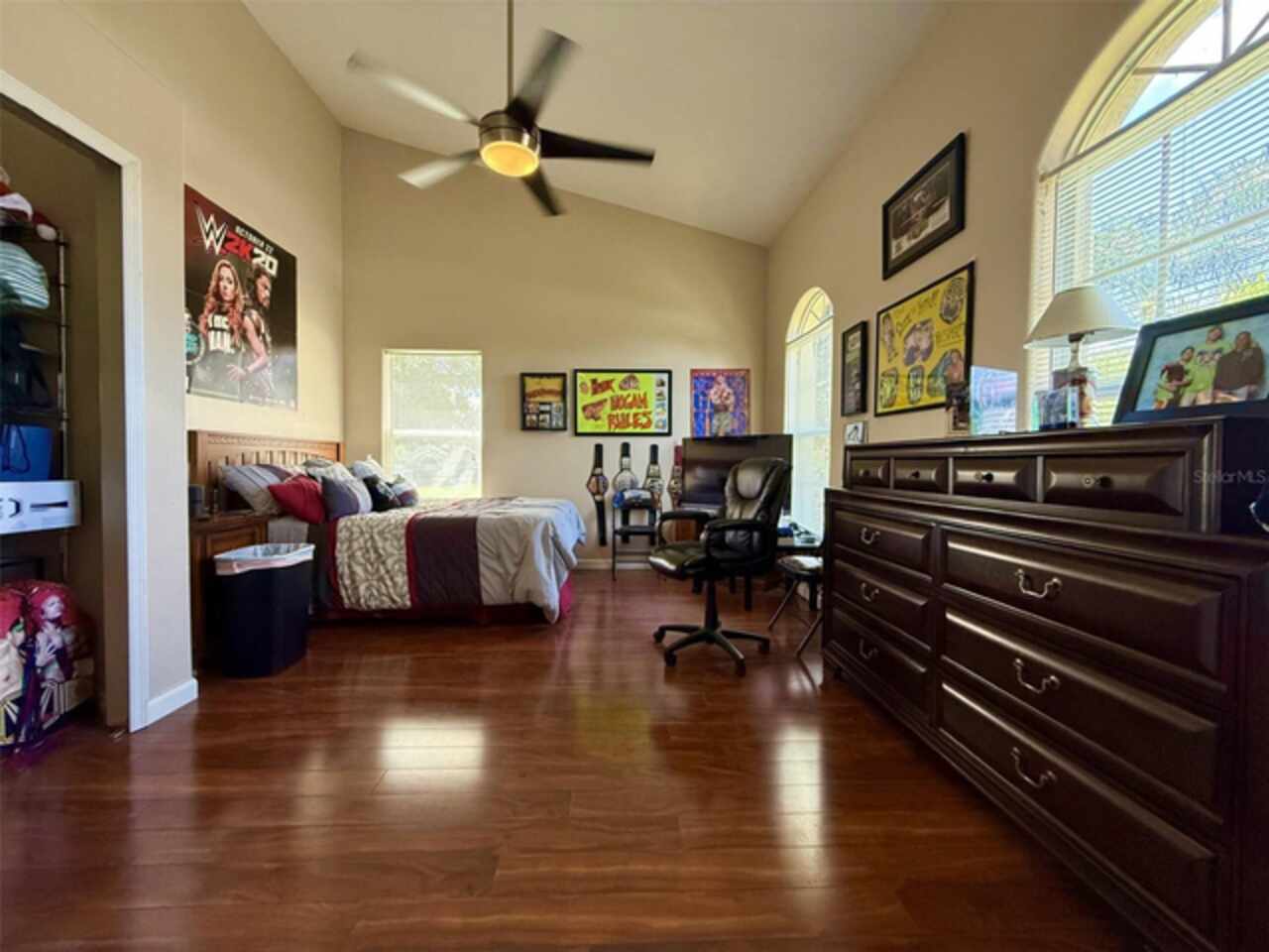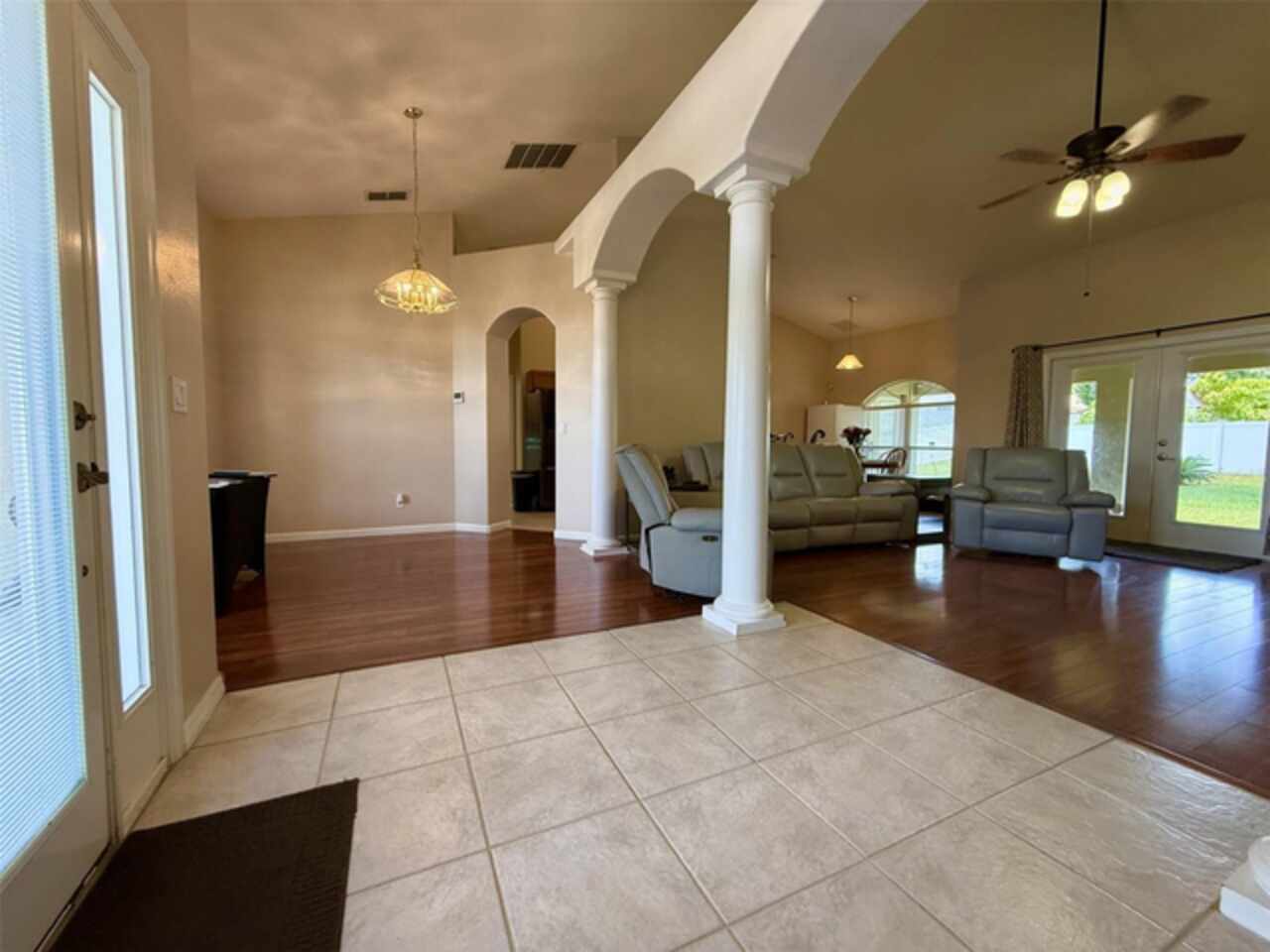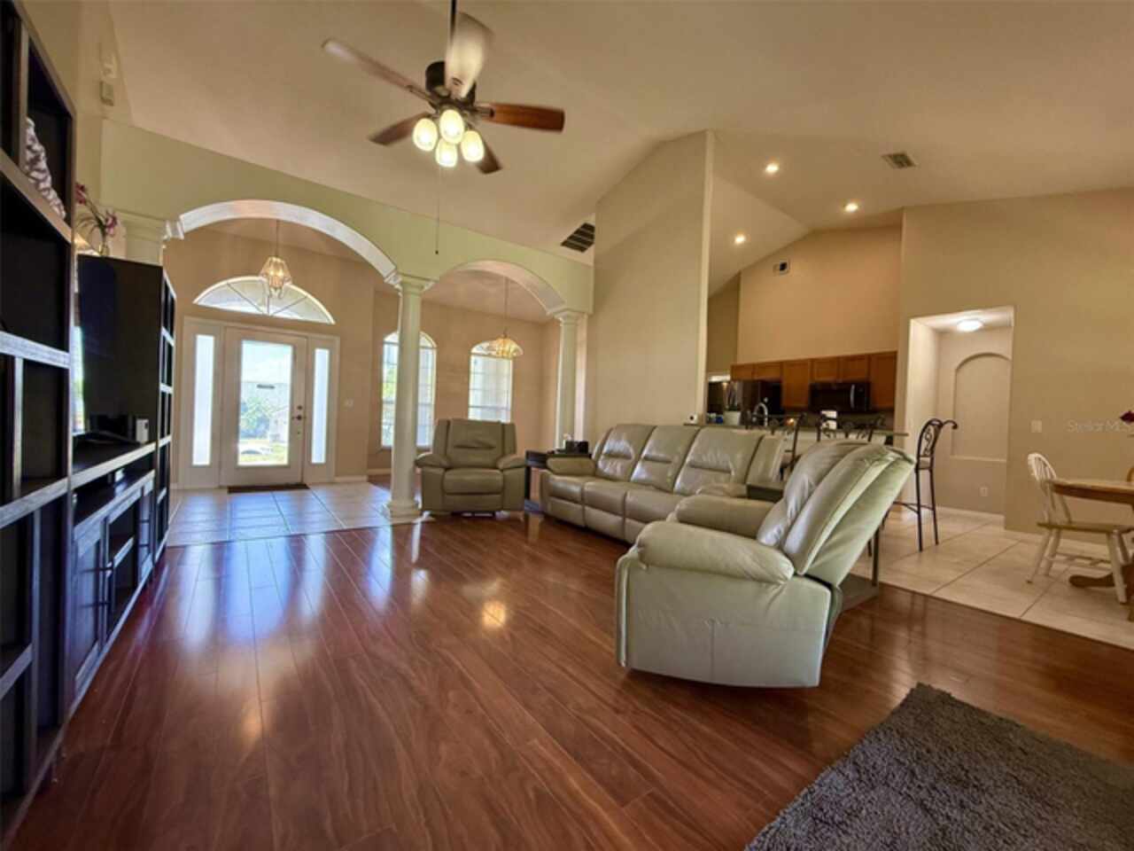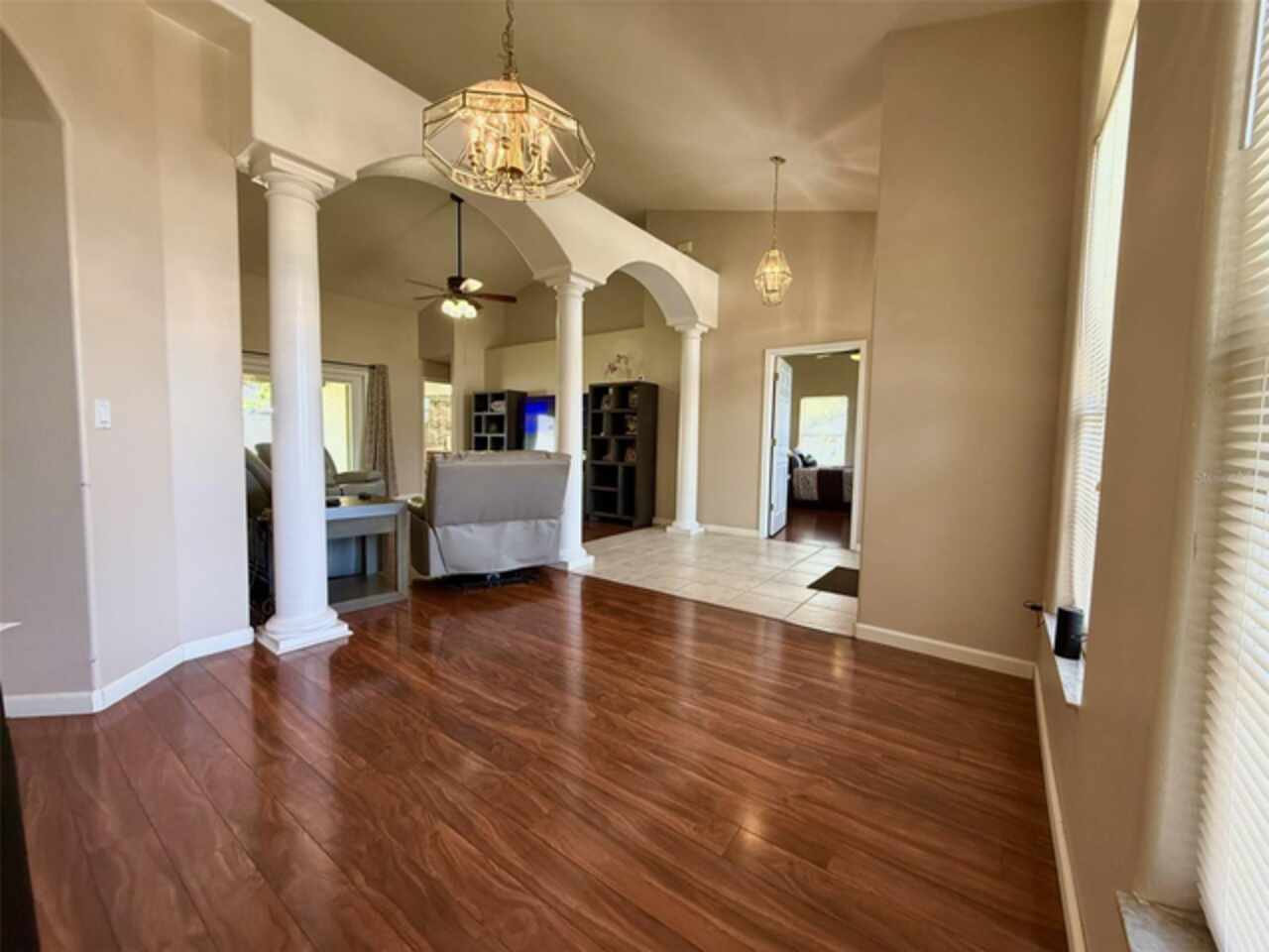 Ceiling Fans(s), Living Room/Dining Room Combo, Vaulted Ceiling(s), Window Treatments