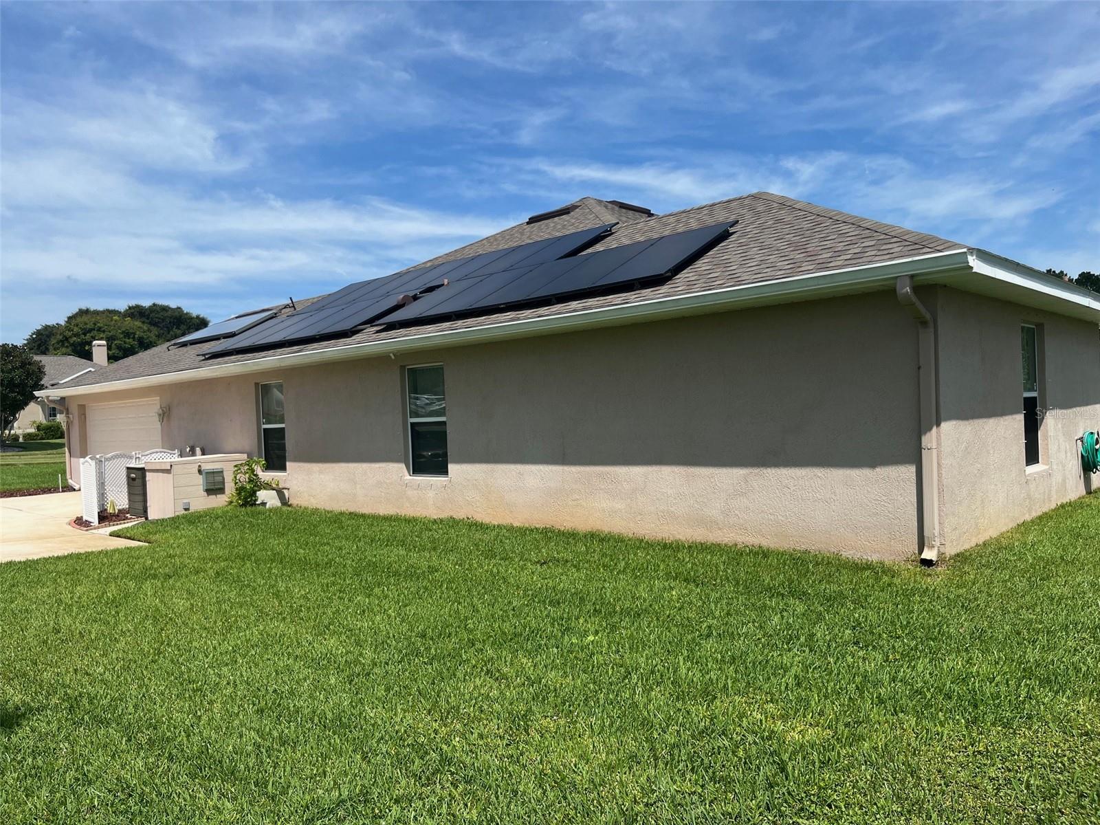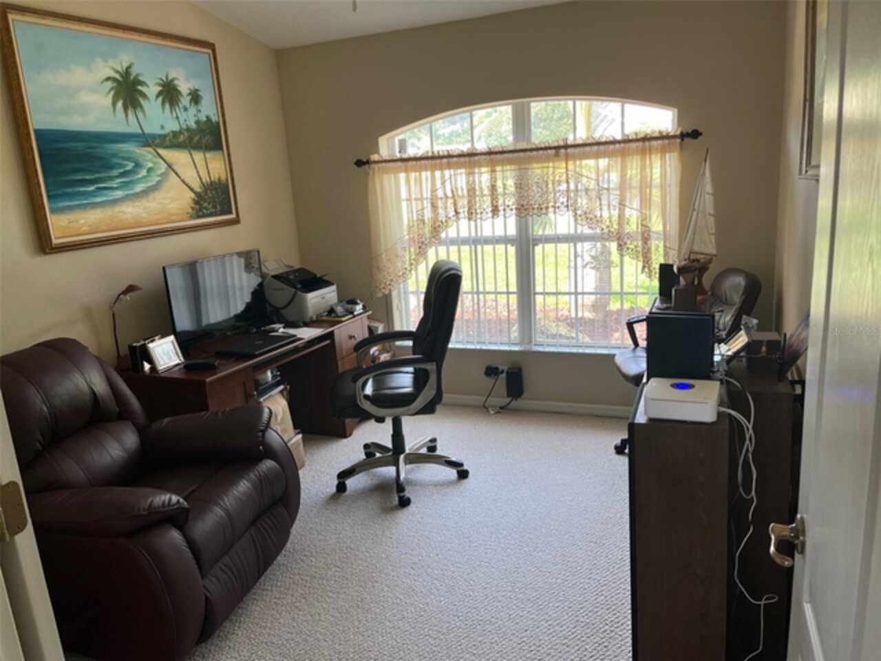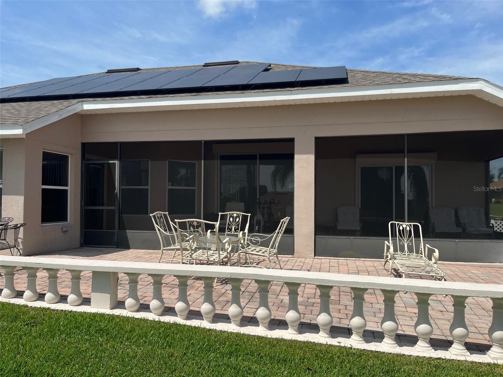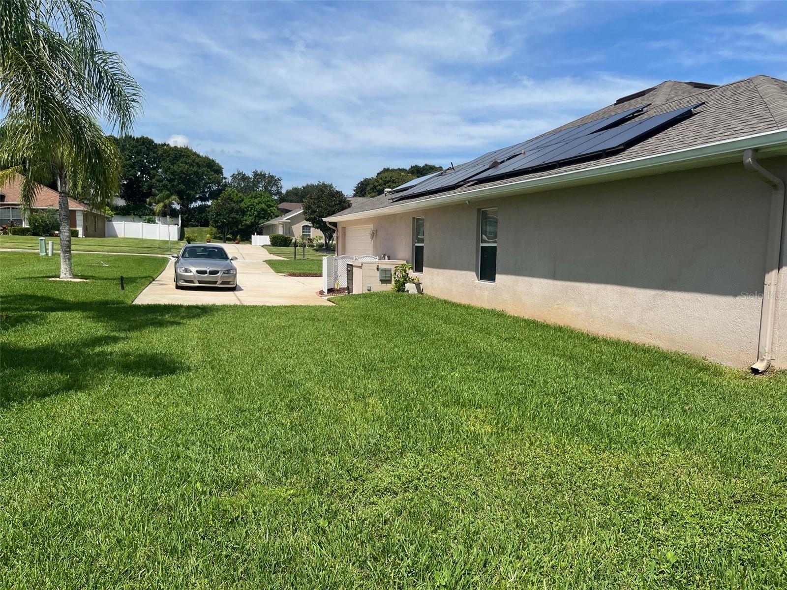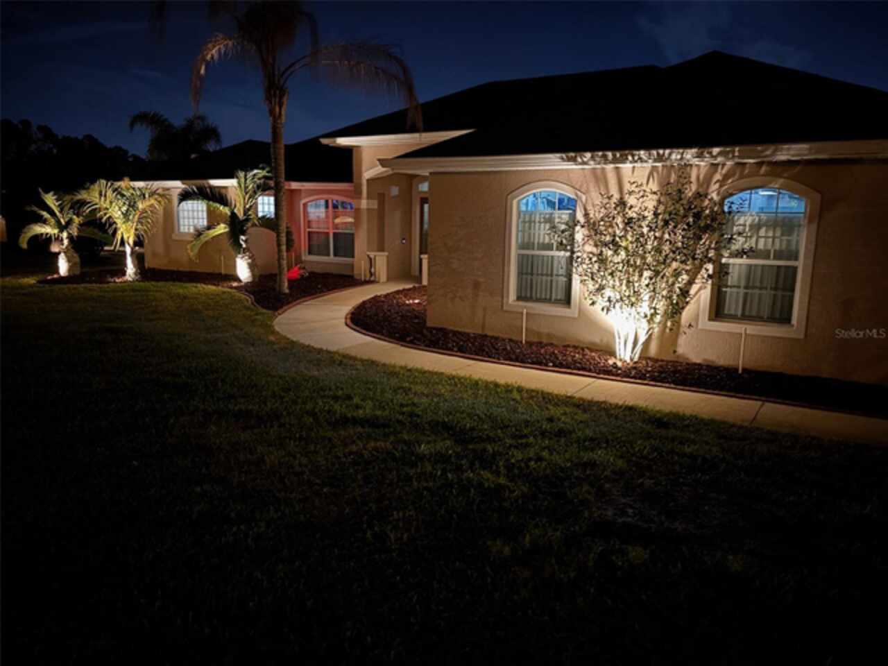 Welcome to this beautifully maintained corner lot home. This spacious property features 4 bedrooms, 3 baths, a cozy family room, a formal living and dining room and a dedicated office room perfect for remote work. Enjoy your evenings in serenity in your extended lanai (14x40) in addition to the screened in enclosed back porch. The house is equipped with Solar for energy efficiency in addition to a solar water heater. It has a well for the sprinkler system to keep the landscape lush together with a water softener for the house. A home generator is also included should the need arise in inclement weather. The large sliding glass doors leading from the master bedroom and living room have roll up shutters. The kitchen boasts all stainless-steel appliances like new with granite countertop. Elegant palm trees surround this almost half acre property with side entry garage. Automatic exterior landscape lights are installed front and back of this pristine home.