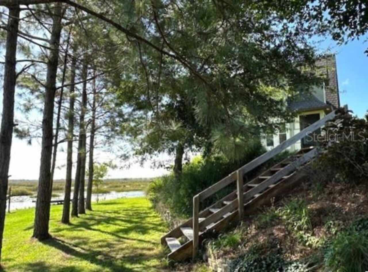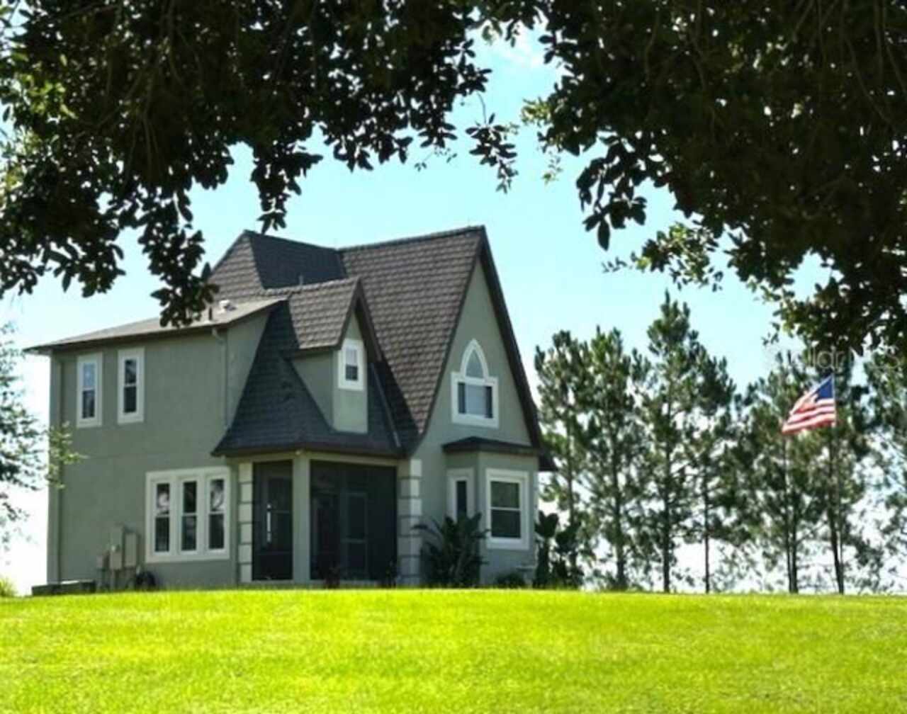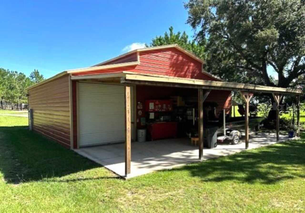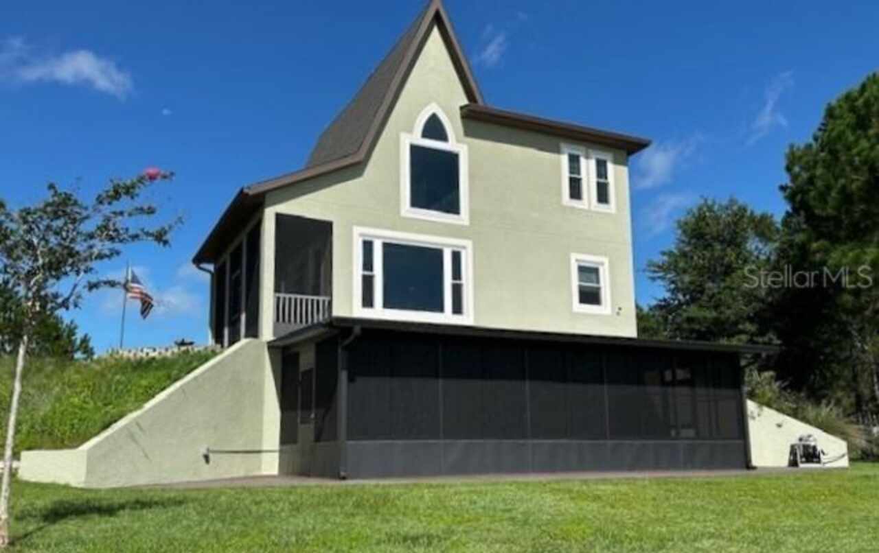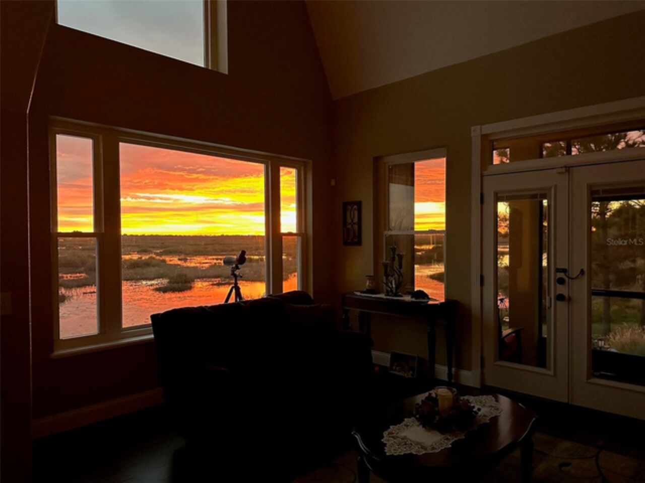 This amazing home located on 5.8 acres overlooking an expanse of waters and nature including daily sunrises peeking over the horizon. PERFECT LOCATION FOR YOUR SMALL BUSINESS, park all your vehicles, work on your equipment as there is a 14' center garage door AND 2 offices or workshops UNDER AIR. This incredible 41'x41' Carolina Barn and home are behind a motorized gate, and fenced. Need a place for gardens, greenhouses (but 3 minutes from a Publix shopping center), bring your horses and animals! The luxury chicken coop complete w/24 hens and 2 roosters and can be the start of your farm, or use this property as a home based business. Keep your equipment, large trucks and RV here! When the gate opens and leads you onto this gorgeous property, lined with huge oaks, fruit trees, bamboo for privacy, crepe myrtles, native Florida plants and other shrubs, the peaceful invitation is apparent. At the top of the hill is this gorgeous home w/incredible pitched roof lines which creates a beautiful silhouette against the blue skies, but also creates amazing architecture inside. The cathedral ceilings in the living room allow the huge (NEW) windows let in the gorgeous rays from the sunrises and enables the views out overlooking the birds in the water, the fish jumping, an occasional otter swimming by, and the incredible birds swooping around the home, and third generation sandhill cranes roosting and raising their babies. The primary suite has the highest level view out both the front and rear of the home, the bathroom was remodeled w/beautiful tile walls and stone floor in the shower. The family room on the lowest level is still at a high level looking out the back, has plenty of room for your home office area with closet storage, and the laundry space has tons of extra storage. Out onto the sunroom, you have a massive porch area - perfect for entertaining and relaxing. From your side screened porch off the living room, your front screened porch or your sun room, you can bring the outside in. From the inside, there isn't a room without a view, perfection. The workshops are second to none. Concrete slab and steel construction, the center aisle has plenty of space for vehicles, boats, RV, work equipment and tons of storage w/the lofts on both sides. The dual workshops are under AC, so these can be utilized as offices, art studios, school rooms, or other creative ventures. There is additional covered workshop and carport areas off the back of the building, also on concrete for parking/projects. The wellhouse was built with storage in mind, no need to clutter your workshop w/lawn tools, they all fit here. Located on a paved, dead end road, you can live as privately as you would like. Knowing that the home has been updated and extremely well maintained, the decision to live on acreage, wi/all the conveniences of city living within minutes is a simple one. The option of having your business run from your home is attractive with the distance of the home from the workshops will maintain that privacy. Your dream garden, sunrise or afternoon fishing from the bass filled waters, bird watching, your mini farm, your home based business (or lease out the space you don't need), your Airbnb investment, an idea undiscovered, it is all here for you. Bring your cameras, paints and easel or writer's desk. Inspiration is everywhere here, just waiting for you to discover. Incredibly underpriced now, please see the interior/drone video and make your appointment today!