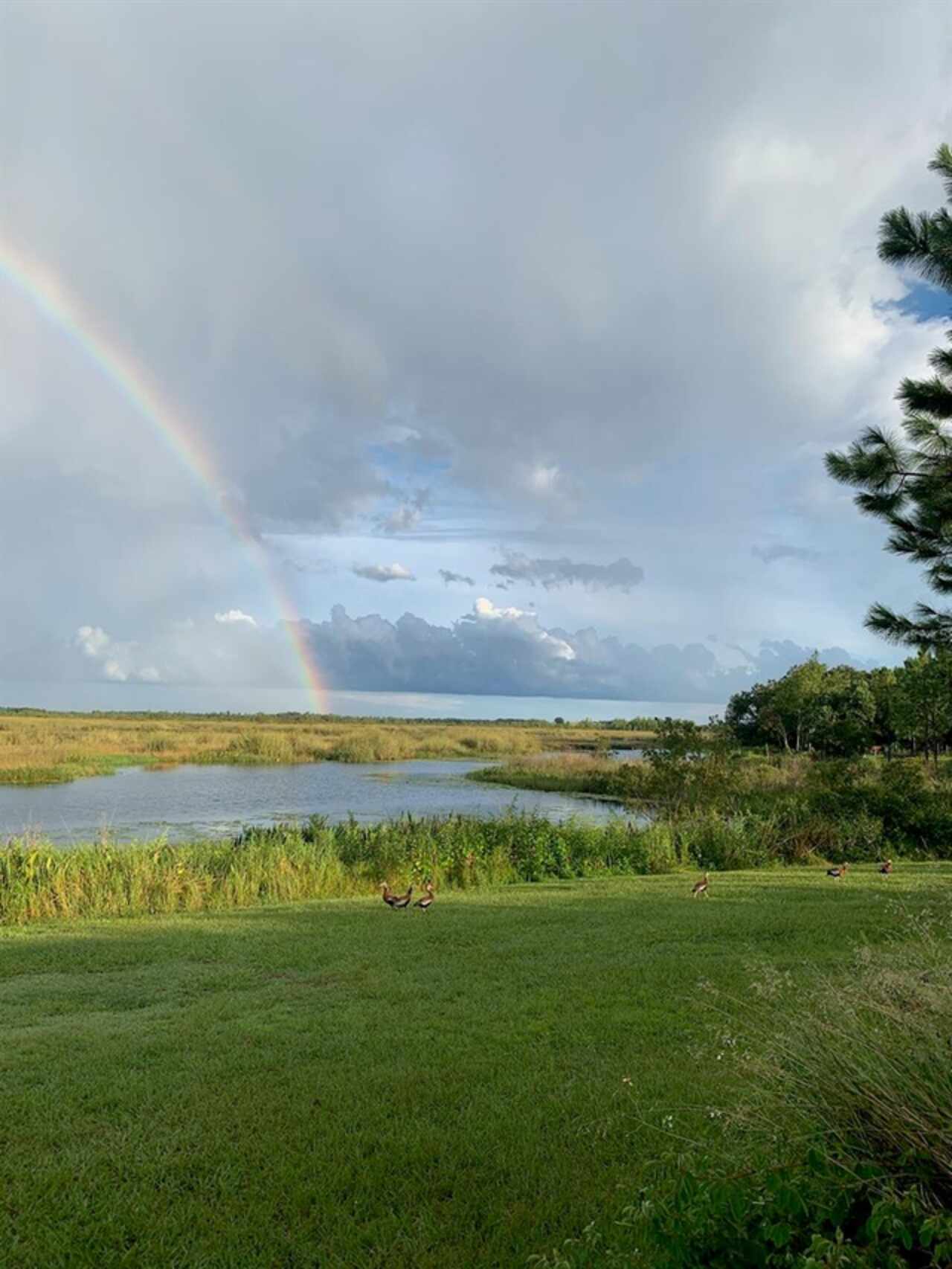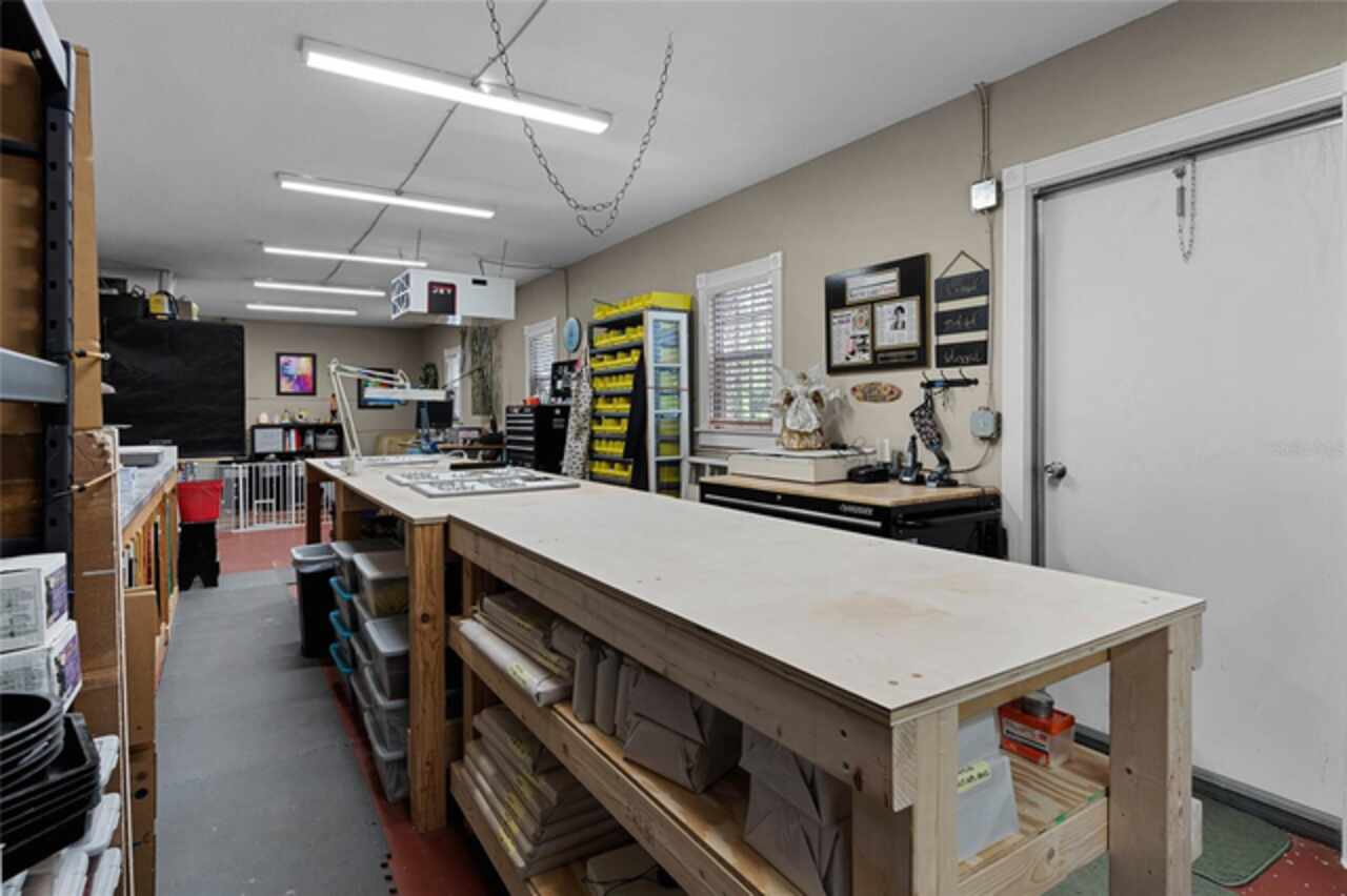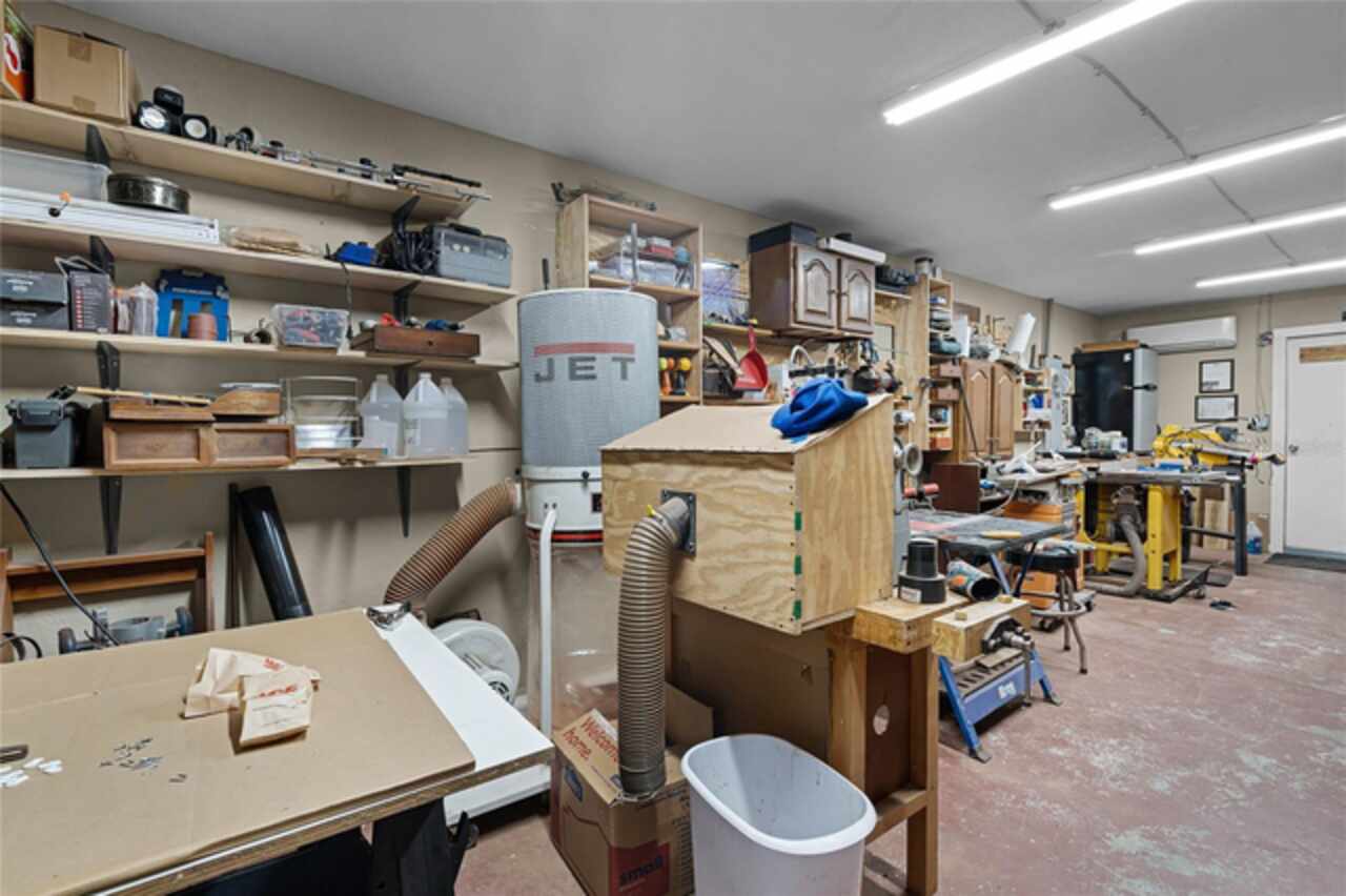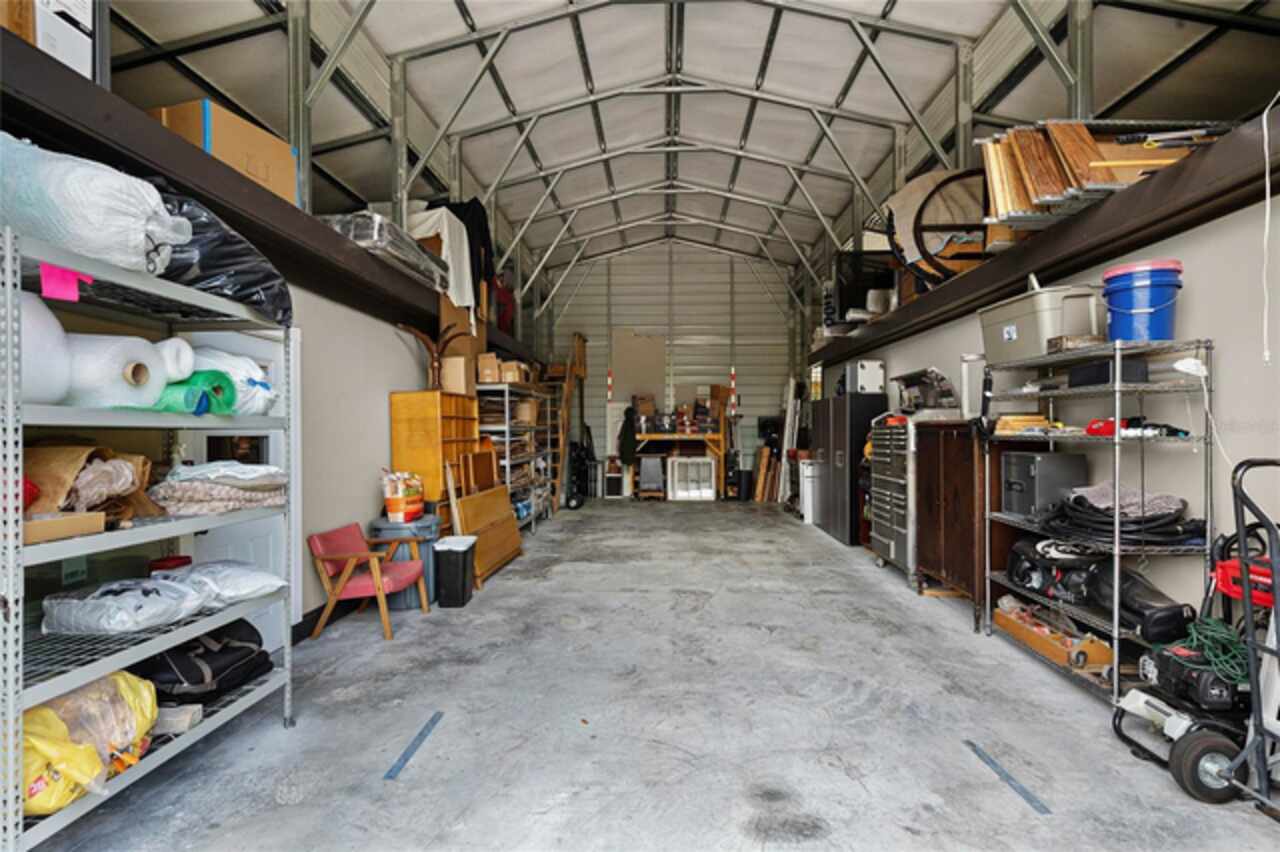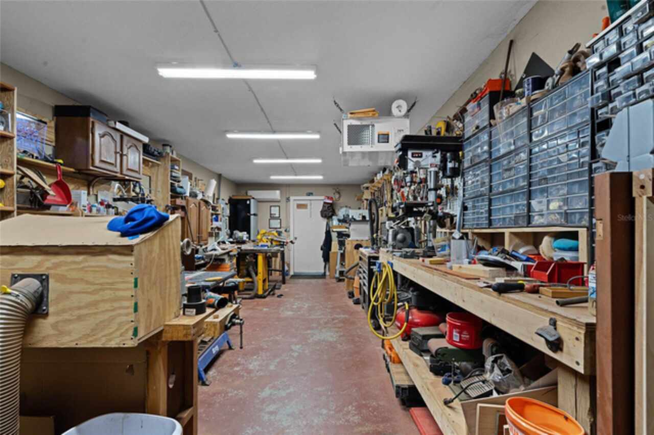 This amazing home located on 5.8 acres overlooking an expanse of waters and nature including daily sunrises peeking over the horizon. PERFECT LOCATION FOR YOUR SMALL BUSINESS, park all your vehicles, work on your equipment as there is a 14' center garage door AND 2 offices or workshops UNDER AIR. This incredible 41'x41' Carolina Barn and home are behind a motorized gate, and fenced. Need a place for gardens, greenhouses (but 3 minutes from a Publix shopping center), bring your horses and animals! The luxury chicken coop complete w/24 hens and 2 roosters and can be the start of your farm, or use this property as a home based business. Keep your equipment, large trucks and RV here! When the gate opens and leads you onto this gorgeous property, lined with huge oaks, fruit trees, bamboo for privacy, crepe myrtles, native Florida plants and other shrubs, the peaceful invitation is apparent. At the top of the hill is this gorgeous home w/incredible pitched roof lines which creates a beautiful silhouette against the blue skies, but also creates amazing architecture inside. The cathedral ceilings in the living room allow the huge (NEW) windows let in the gorgeous rays from the sunrises and enables the views out overlooking the birds in the water, the fish jumping, an occasional otter swimming by, and the incredible birds swooping around the home, and third generation sandhill cranes roosting and raising their babies. The primary suite has the highest level view out both the front and rear of the home, the bathroom was remodeled w/beautiful tile walls and stone floor in the shower. The family room on the lowest level is still at a high level looking out the back, has plenty of room for your home office area with closet storage, and the laundry space has tons of extra storage. Out onto the sunroom, you have a massive porch area - perfect for entertaining and relaxing. From your side screened porch off the living room, your front screened porch or your sun room, you can bring the outside in. From the inside, there isn't a room without a view, perfection. The workshops are second to none. Concrete slab and steel construction, the center aisle has plenty of space for vehicles, boats, RV, work equipment and tons of storage w/the lofts on both sides. The dual workshops are under AC, so these can be utilized as offices, art studios, school rooms, or other creative ventures. There is additional covered workshop and carport areas off the back of the building, also on concrete for parking/projects. The wellhouse was built with storage in mind, no need to clutter your workshop w/lawn tools, they all fit here. Located on a paved, dead end road, you can live as privately as you would like. Knowing that the home has been updated and extremely well maintained, the decision to live on acreage, wi/all the conveniences of city living within minutes is a simple one. The option of having your business run from your home is attractive with the distance of the home from the workshops will maintain that privacy. Your dream garden, sunrise or afternoon fishing from the bass filled waters, bird watching, your mini farm, your home based business (or lease out the space you don't need), your Airbnb investment, an idea undiscovered, it is all here for you. Bring your cameras, paints and easel or writer's desk. Inspiration is everywhere here, just waiting for you to discover. Incredibly underpriced now, please see the interior/drone video and make your appointment today!