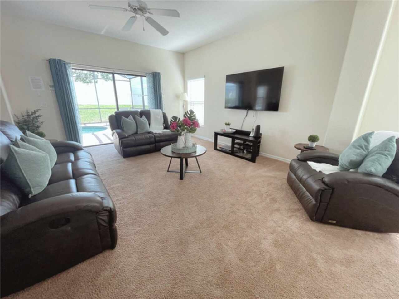 Stunning 4-Bedroom, SOUTH-FACING Pool Home in Gated Resort-Style Community – Minutes from Disney! Welcome to your dream home in the highly desirable High Grove community of South Clermont! This beautifully maintained 4-bedroom, 2.5-bathroom Mediterranean-style pool home is the perfect blend of comfort and unbeatable location. With over 2, 000 square feet of living space and a private screened-in pool and patio, this FULLY FURNISHED property is ideal as a primary residence, vacation retreat, or income-producing Airbnb! Step inside to an expansive open floor plan, where the bright and airy family room flows seamlessly into the kitchen via a convenient breakfast bar—perfect for entertaining or relaxing with family. Enjoy sweeping views of the pool area from your main living space, offering a true indoor-outdoor lifestyle. Spacious Primary bedroom is located on 2nd floor with ensuite, including garden tub and separate shower stall. Guest/ pool bathroom on first floor. Fully equipped kitchen with STAINLESS STEEL range, microwave and dishwasher. Located just minutes from Walt Disney World, you’ll love the proximity to world-class theme parks, shopping, dining, and stunning national parks. This gated community offers peace of mind and incredible amenities, including a clubhouse with a large community pool, fitness center, game room, and toddler play area. There’s even a pub just a short walk away—the perfect neighborhood hangout! High Grove is zoned for both short-term and residential use, offering amazing flexibility and investment potential. Fully operating, income producing AIRBNB property with booking history. Property Management and future bookings in place. The homes in the community feature Mediterranean-style architecture with tiled roofs and clean, white exteriors, giving the neighborhood a fresh, uniform appeal. Even better—landscaping is included in the HOA, so you can spend more time enjoying the Florida lifestyle. Conveniently located near I-4, Hwy 27, and US-192, you’ll have quick access to both coasts, the airport, and all the major attractions Central Florida has to offer. HOME WARRANTY for the new owner. Don’t miss your chance to own this slice of paradise—schedule your private tour today!