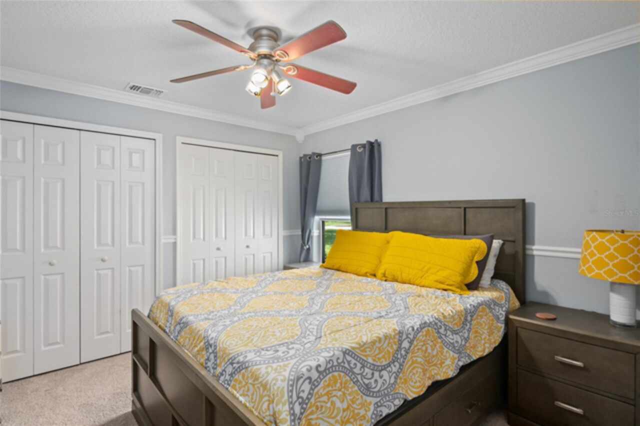 Ceiling Fans(s), Chair Rail, Coffered Ceiling(s), Crown Molding, Kitchen/Family Room Combo, Living Room/Dining Room Combo, Open Floorplan, Split Bedroom, Stone Counters, Thermostat, Vaulted Ceiling(s), Walk-In Closet(s)