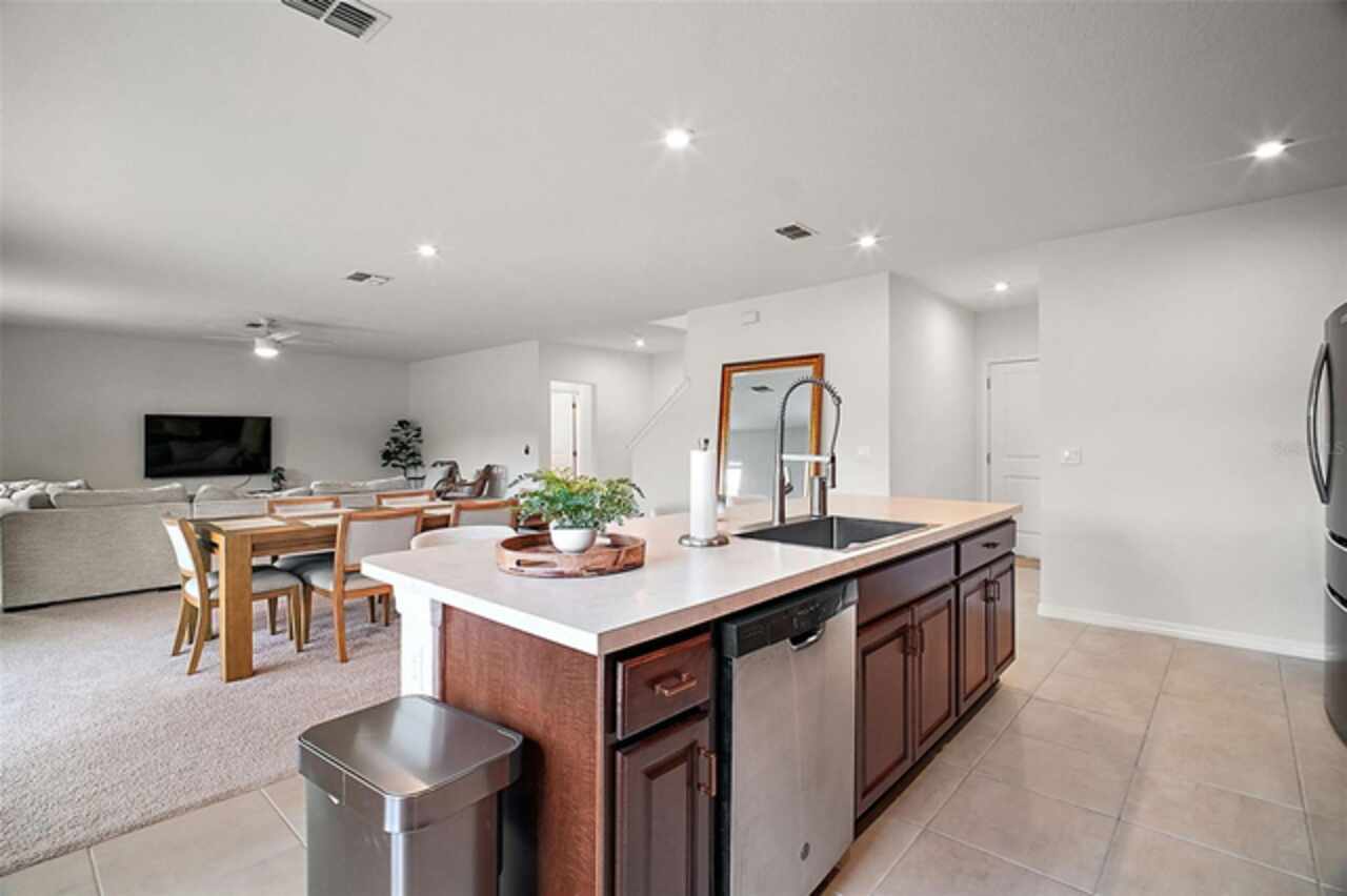 Under contract-accepting backup offers. Immaculately maintained 5/3 with 2 car garage in Louisa Grande with no rear neighbors! This 2020 built Redbud model by Taylor Morrison/AV Homes is perfect for entertaining. Kitchen with huge pantry, farmhouse sink, tons of counter space and cabinets, and a large island opening to the family/dining room. There is a bedroom and full bathroom downstairs; perfect for guests. Just off the kitchen and dining area are sliders opening up to the covered patio and back yard with no rear neighbors. Upstairs is the primary suite and 3 additional bedrooms and bathroom. Primary bathroom has dual vanities and a large walk in closet. You will not find a nicer 5 bedroom 3 full bathroom home in this price point in Clermont! Location is fantastic; located near Lake Louisa State Park, shopping, dining, grocery, with nearby parks, trails, lakes, and plenty of activities and within 30 minutes from Disney. Come see it soon!