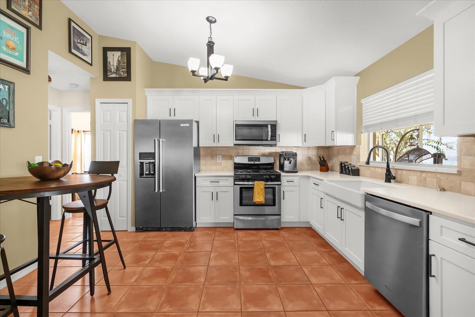 Under contract-accepting backup offers. Beautifully Updated 3-Bedroom Home with Modern Kitchen & Great Amenities! Step into this upgraded 3-bed, 2-bath home featuring a split floor plan and a stunning 2025 kitchen remodel with 36" soft-close cabinets, crown molding, quartz counters, and a farmhouse sink. Tile floors flow through the main areas with LVP in bedrooms. Living room and one bedroom include surround sound, and the primary suite features vaulted ceilings. Enjoy a large screened porch perfect for relaxing or entertaining. Roof (2014), A/C (2015), exterior paint (2021), septic drain field (2021), and gutters installed. Includes all major appliances plus Maytag washer/dryer; furnishings negotiable. Community offers pool, tennis courts, playground, and sidewalks connecting to the West Orange Trail. Convenient access to Hwy 50, 27, and Florida Turnpike!