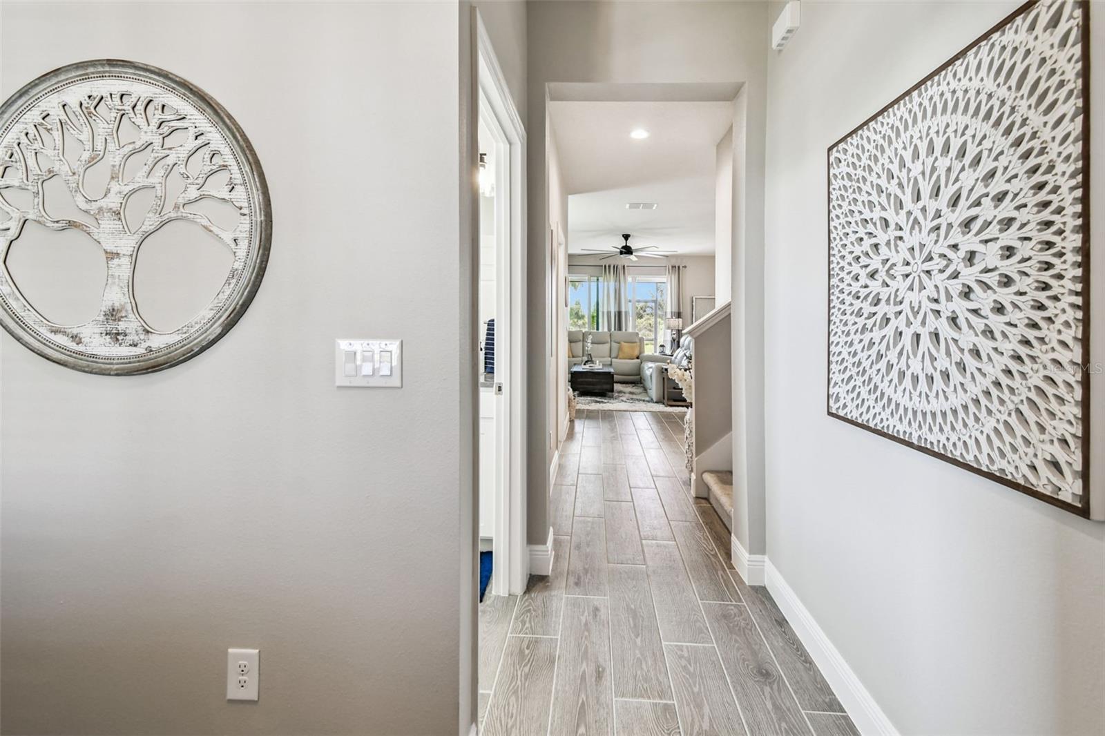 This 5-bedroom, 2.5-bath offers the perfect blend of privacy, and modern convenience. Definitely a perfect location for any one who wishes to revel in the great outdoors! It is a newer Landsea Vero Smart Home situated on a corner lot with no rear neighbors, ready for a pool, and is absolutely ONE OF A KIND!! Since only May this year the owners moved in and planned on living here for many years to come. So, they did not hold back on anything. From the beautiful stone accents on the exterior of the residence, to entering the open living area that boasts a gorgeous custom stone fireplace and mantle, wall accents, custom light fixtures, and fans. Enjoy the sealed porcelain tile plank flooring throughout the first floor, and everything was professionally painted with Sherwin Williams Agreeable Gray. Expect only the best in your Chef's Kitchen that offers upgraded pendant lights, quartz counters and a large quartz island with plenty of room to sit and enjoy your time with each other.. Check out the additional kitchen pantry to store your small appliances. All new stainless appliances stay in the kitchen. The owner added cabinets in the laundry room, screened in the lanai, and and the thoughtfully designed 2 car garage offering tons of extra ceiling storage, 220V outlet, along with the 220V wiring ready for up to 2 Tesla charging stations. As you head upstairs you will be in awe of the decorative iron railing leading to a spacious loft. The Primary Suite is one of the largest you will ever see. It is a large Bedroom with an additional 11X11 space. This additional space could be a nursery, work area, place to exercise, you choose! Large Walk-In Closet along with a double quartz vanity and extra large shower where you will surely enjoy your 2 shower heads since 1 is an oversized overhead rain shower. Additionally upstairs are 3 oversized bedrooms and another bath with a double quartz vanity. The community offers access to a resort-style pool, playground and is a haven for all to enjoy boating, biking, hiking, fishing, camping and more right across the street. Louisa State Park has many opportunities for endless adventures. Just minutes away, you’ll also find Clermont’s charming downtown, filled with local dining, boutique shopping, weekly farmers’ markets, and events that bring neighbors together. To the north, the highly anticipated Olympus Sports Complex is under development. Olympus is to uniquely combine health, wellness, fitness, sports, hospitality and entertainment into one complete community and global destination all right in your own backyard. As you can clearly see, Ridgeview is not just a place to live; it's a lifestyle where you are sure to enjoy the rolling hills, the chain of lakes, Lake Louisa State Park, Downtown Clermont, Olympus Sports Complex while only 20 minutes from Disney and able to enjoy the Magic Kingdom Nightly Fireworks.
