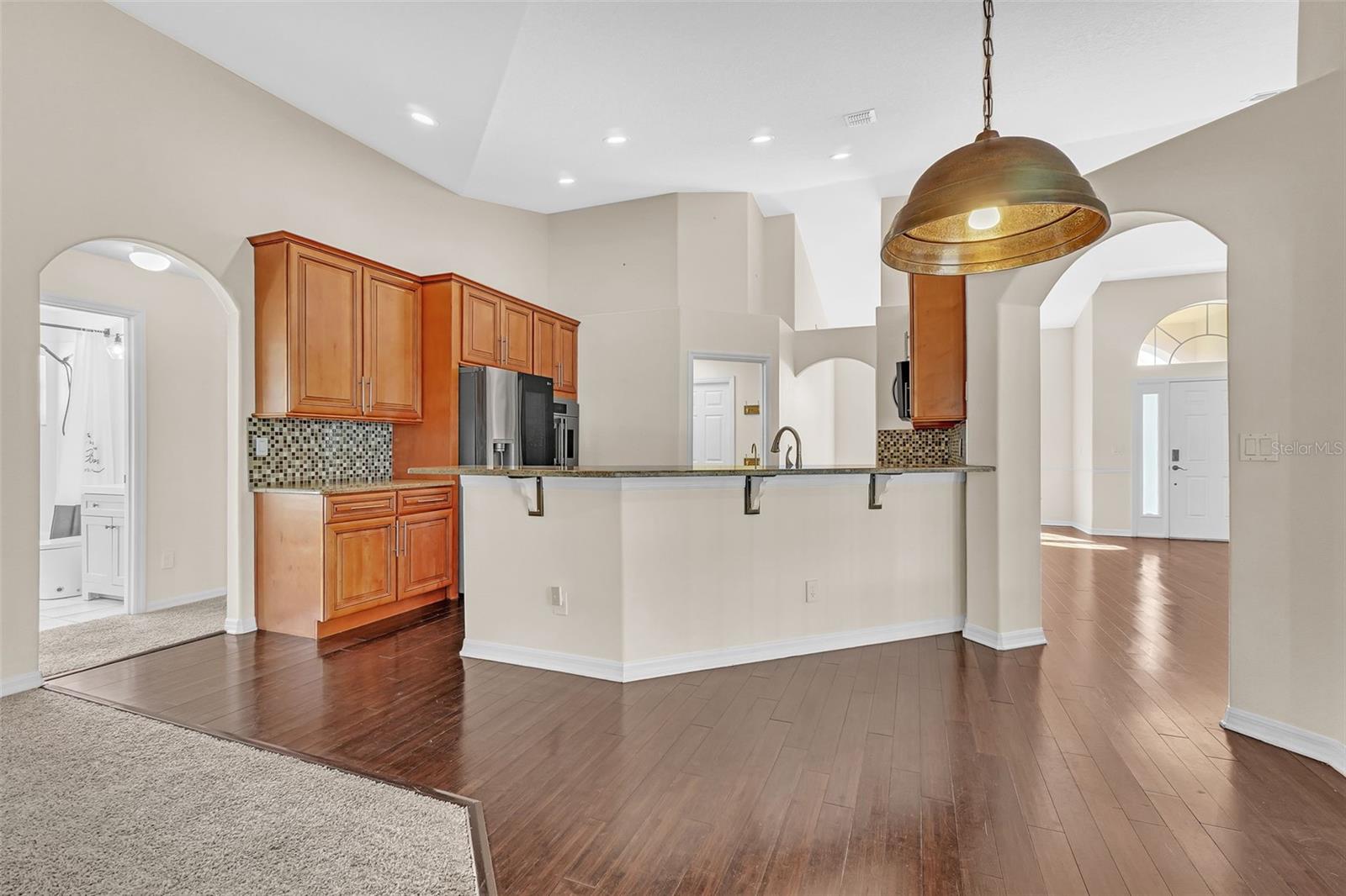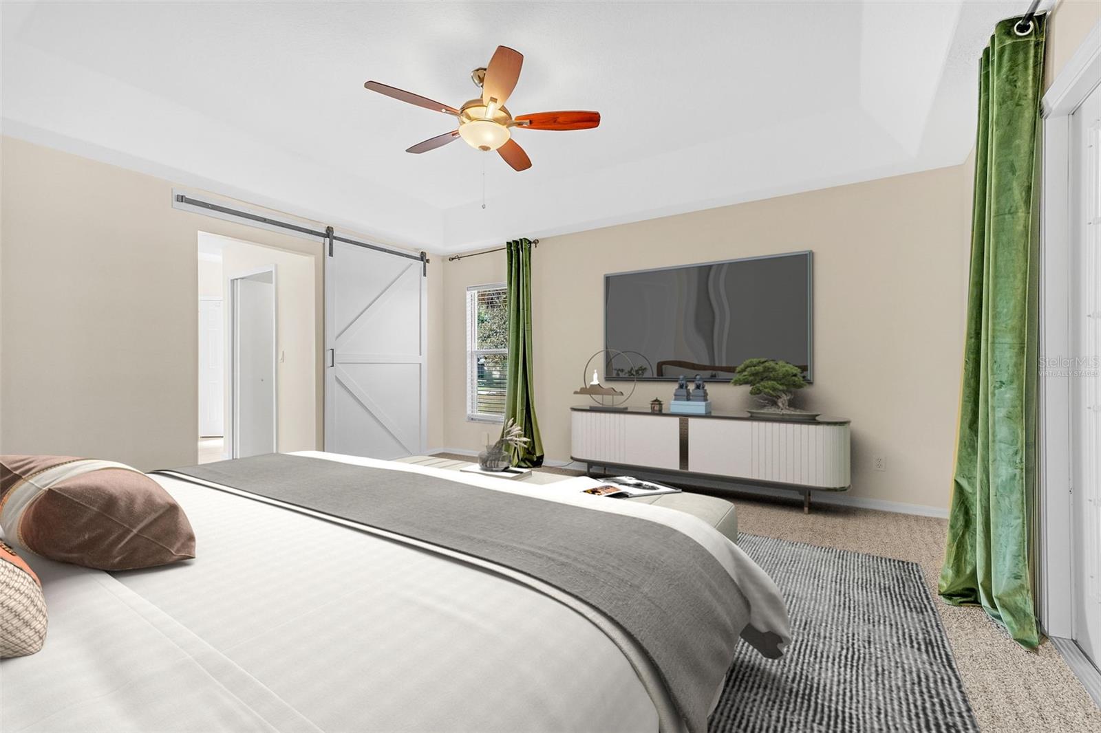 One or more photo(s) has been virtually staged. Welcome to this stunning 4-bedroom, 3-bathroom home nestled in the highly sought-after Greater Pines community, surrounded by the rolling hills of Clermont, Florida. Offering over 2, 100 square feet of comfortable living space, this home sits on an oversized lot—perfect for a growing family. As you arrive, you’ll be impressed by the home’s exceptional curb appeal and side-entry garage. Step inside to discover a bright and inviting interior filled with natural light that enhances the formal living and dining areas. At the heart of the home is a spacious kitchen that showcases high-end stainless steel appliances, including a double oven valued at $10, 000 as well as a wine fridge—perfect for both cooking enthusiasts and entertainers. The kitchen also features a breakfast bar and a cozy breakfast nook, providing extra seating for family and guests. Just off the kitchen, the family room offers a warm and inviting atmosphere, ideal for gatherings or relaxing evenings at home. From the family room, step out to your private outdoor retreat, complete with a fully fenced backyard, a firepit, a shed, a peach tree, and a large screened-in lanai with pavers perfect for relaxing or entertaining year-round. Designed for privacy, the split floor plan places the primary suite on one side of the home, separate from the secondary bedrooms. The spacious primary suite offers a peaceful escape with direct access to the backyard, TWO walk-in closets, and a stylish custom barn door leading to the ensuite bathroom with dual sinks, tub and a walk-in shower. This home is equipped with high-speed fiber optics, Eufy security cameras and BEST of ALL it comes with a FULLY PAID SOLAR PANEL SYSTEM (28 panels), roof is 7 years old, providing significant savings with an average monthly electric bill of just $80. Additional upgrades include new carpeting and a new water heater. Residents of the well-established Greater Pines community enjoy access to fantastic amenities, including a sparkling pool, recreation area, tennis courts, and a playground. Conveniently located just 30 minutes from world-famous theme parks and downtown Orlando, this home offers the perfect balance of comfort, community, and modern living. This home is move-in ready, offering convenience for its new owners. Don’t miss your chance to make this beautiful home yours —schedule a showing today!