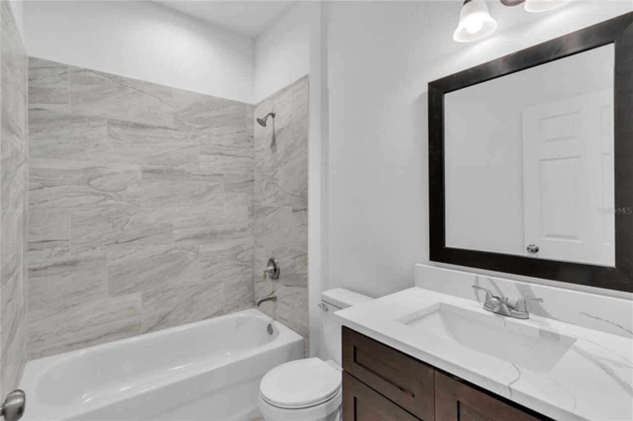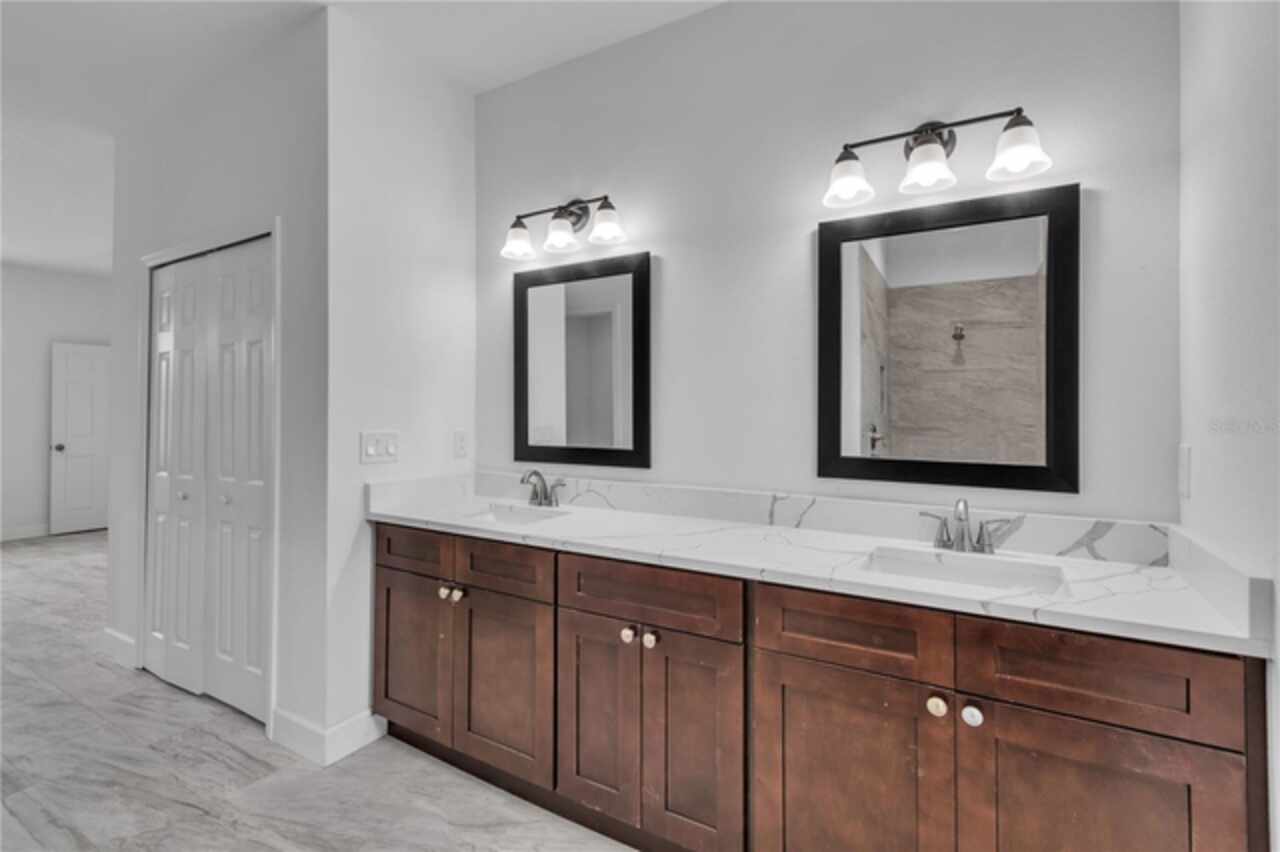 Discover your new home in the Village Green community, nestled in the picturesque city of Clermont. This stunning four-bedroom, two-and-a-half-bathroom home, just completed in July 2024, offers exquisite views of the Green Valley Country Club's golf course. With a spacious split floor plan, the primary suite features a luxurious bathroom and two expansive walk-in closets. The additional three bedrooms are generously sized, presenting the perfect space for a growing family or a home office with ample room for guests. The kitchen showcases elegant quartz countertops, premium Whirlpool stainless steel appliances, and a layout that's perfect for hosting. This open concept home boasts soaring volume ceilings and elegantly tiled floors throughout every room, including the bathrooms. Furthermore, this area is on the rise, with new stores, restaurants, and retail centers continuously being added, offering endless growth and opportunity.