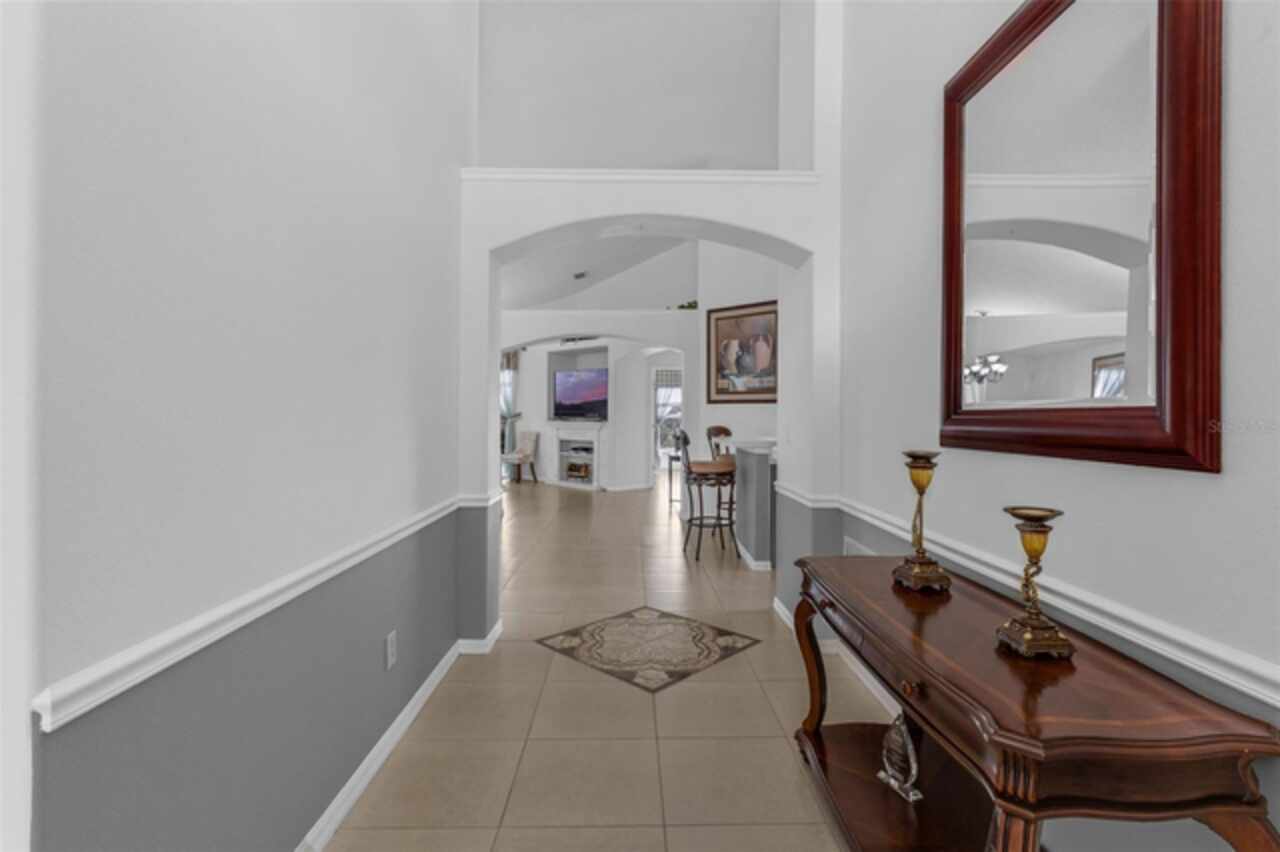 Experience refined living in Lakeview Pointe, one of Clermont’s most sought-after communities. This exquisite, one-owner residence presents 3 bedrooms and 2 baths, flawlessly designed with an open-concept layout, soaring ceilings, ceiling fans, and a decorative fireplace that enhances the elegant living space. The spacious kitchen features a breakfast area and plentiful cabinetry, seamlessly flowing into the living and dining areas adorned with pristine ceramic tile flooring that flows throughout the entire home The serene primary suite offers a spacious walk-in closet and captivating lake views, creating a private sanctuary. A versatile office space adapts beautifully to a study, playroom, or guest retreat. Step onto the covered back porch to enjoy the meticulously landscaped yard and tranquil lake vistas—perfect for sophisticated entertaining or quiet moments of reflection. Additional features include a 2-car garage and meticulously maintained landscaping. Ideally situated in Clermont, just minutes from premier shopping, dining, hospitals, and major highways, this home harmoniously blends refined comfort with modern convenience. Whether as a first residence or a savvy investment, this property exemplifies the unparalleled lifestyle of Lakeview Pointe. Schedule your private showing today and discover the elegance and charm this exceptional home has to offer.