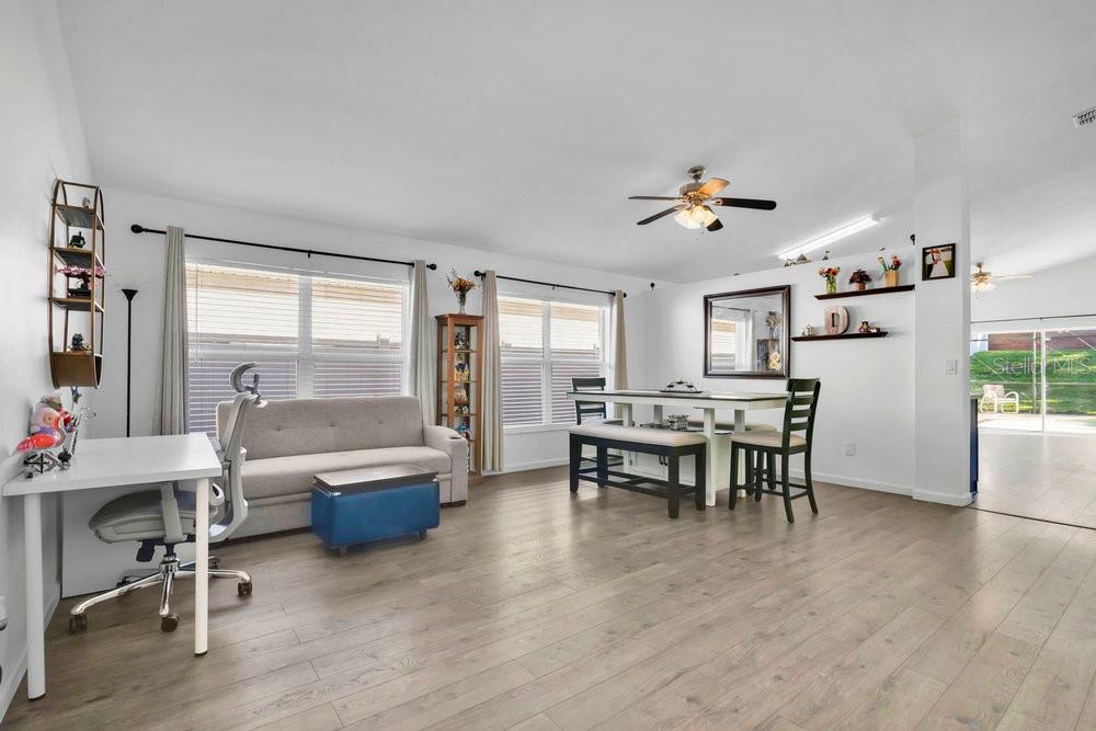 LOCATION! LOCATION! Don't miss this rare opportunity to own a stunning pool home in the highly desirable gated community of Mission Park offering short-term and long-term rentals, Airbnb approval, no CDD and super low HOA. Perfect for investors or families seeking an immaculate primary residence, this 4-bedroom, 2-bathroom home has it all: 2021 roof, 2020 AC & Water Heater, brand new microwave, freshly painted interior and pool deck, fully fenced-in yard, soaring vaulted ceilings, Pergo flooring in all main living areas and ample amounts of natural light. The kitchen has no-spill countertops, a beautiful island, stainless-steel appliances and plenty of cabinet space with added pantry storage. The bedrooms are spacious with lots of closet space. Mission Park offers a community pool, basketball court, and playground and is located only 10 miles from Disney and Southern Hill Farms! Lake Louisa Park and Publix are 3 minutes away! This property is centrally located to restaurants, banks, grocery stores, golf courses and so much more.