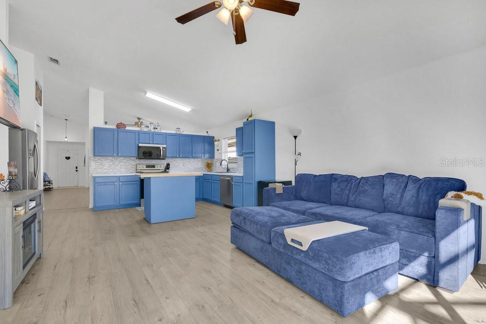 Ceiling Fans(s), High Ceilings, Kitchen/Family Room Combo, Living Room/Dining Room Combo, Primary Bedroom Main Floor, Solid Wood Cabinets, Split Bedroom, Thermostat, Vaulted Ceiling(s), Walk-In Closet(s)