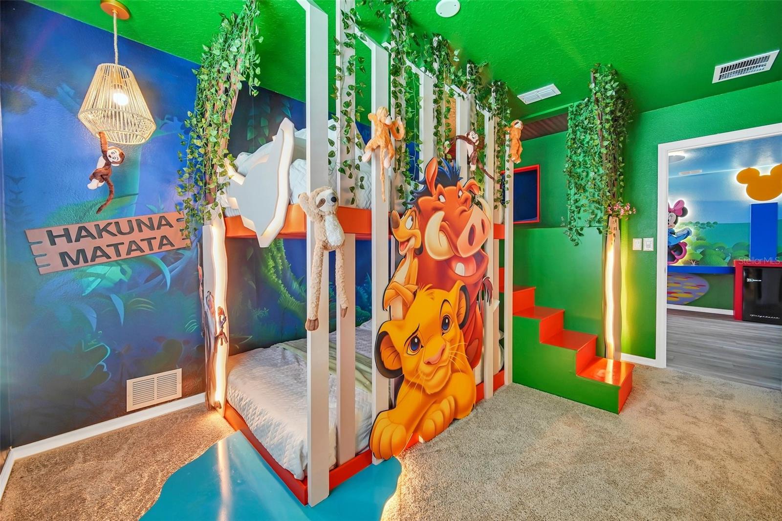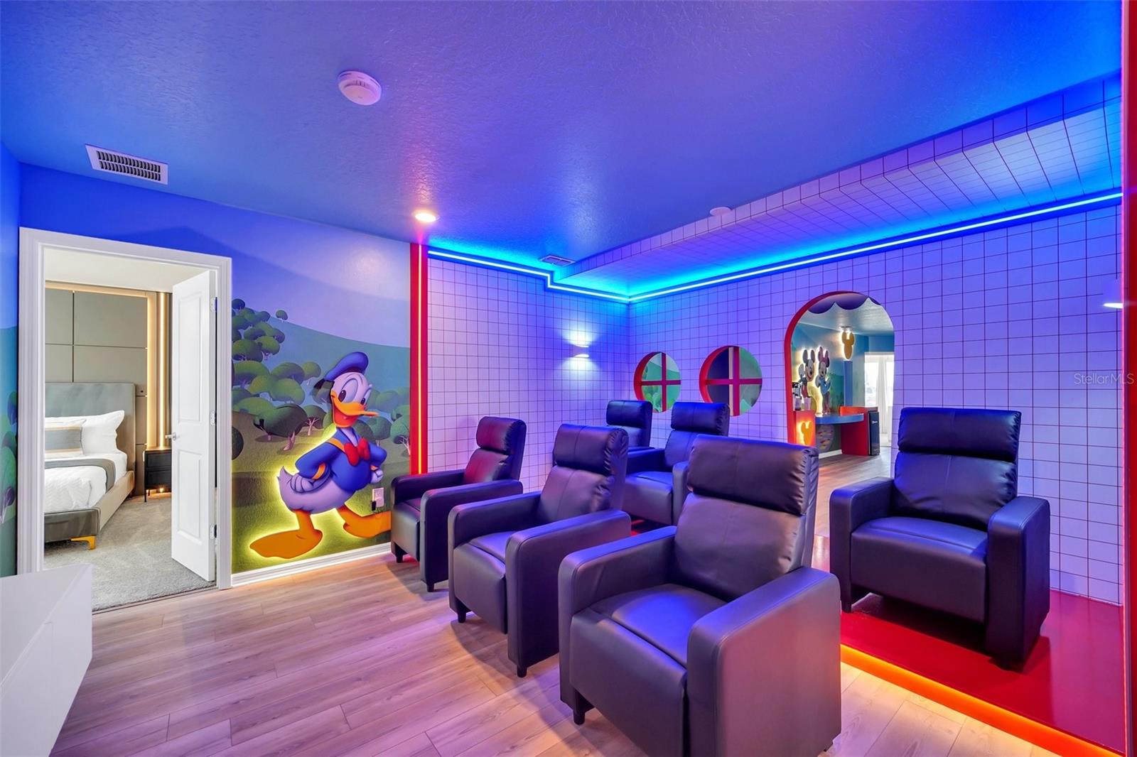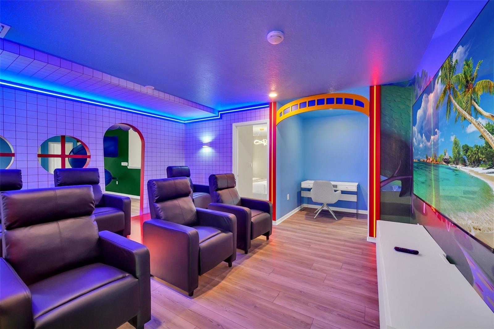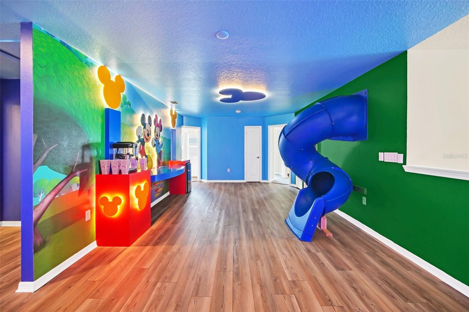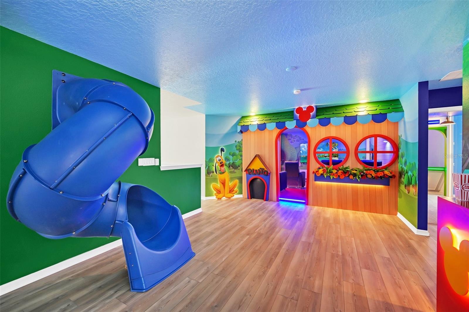 Welcome to 16248 Saint Martin Street in the highly sought-after Windsor Cay community of Clermont. This stunning 2024 home offers 10 bedrooms and 8 bathrooms across more than 4, 300 square feet, designed for comfort, style, and entertainment. Inside, enjoy an open floorplan with spacious living areas, a modern kitchen, and multiple Disney-themed bedrooms. The home also features a dedicated game room, a home cinema, and a custom-built slide, creating the ultimate fun-filled retreat. Step outside to your private pool with spa, complete with a child safety fence and a covered lanai, perfect for relaxing or entertaining. Solid brick and concrete construction, a two-car garage, and thoughtfully designed living spaces combine durability with luxury. Located just minutes from world-class attractions including Walt Disney World, Universal Orlando, and SeaWorld, as well as shopping, dining, and golf, this home offers a perfect blend of resort-style living and family-friendly adventure.