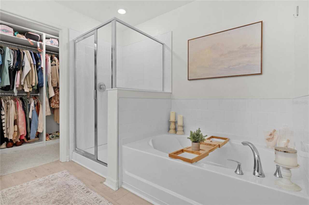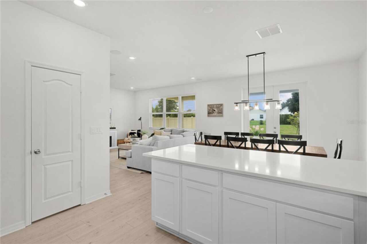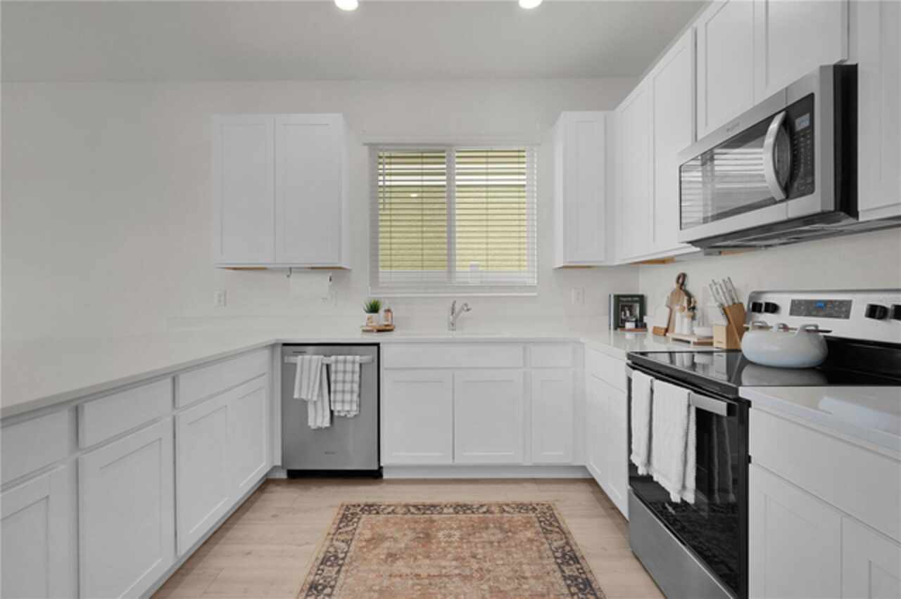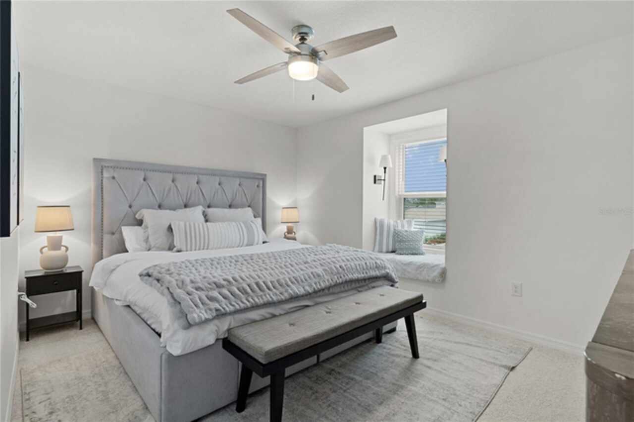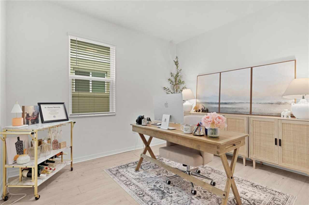 Welcome to your Sanctuary! This beautifully maintained 2-year old home is practically brand new! The home features 3 bedrooms, 2.5 baths, a bonus den that can easily serve as a 4th bedroom, and an upstairs loft. Enjoy the high ceilings, quartz countertops in the kitchen and bathrooms, luxury vinyl plank flooring downstairs, and a host of modern upgrades throughout - including smart home features. Relax on the large covered lanai with peaceful pond views and no direct rear neighbors. Located minutes from schools and Disney World, this home offers comfort, privacy, and convenience for your family! Don't miss out, schedule your tour today!
