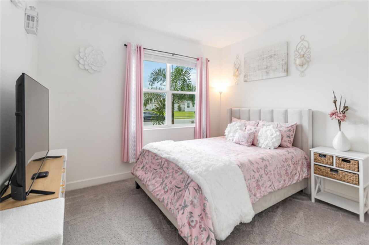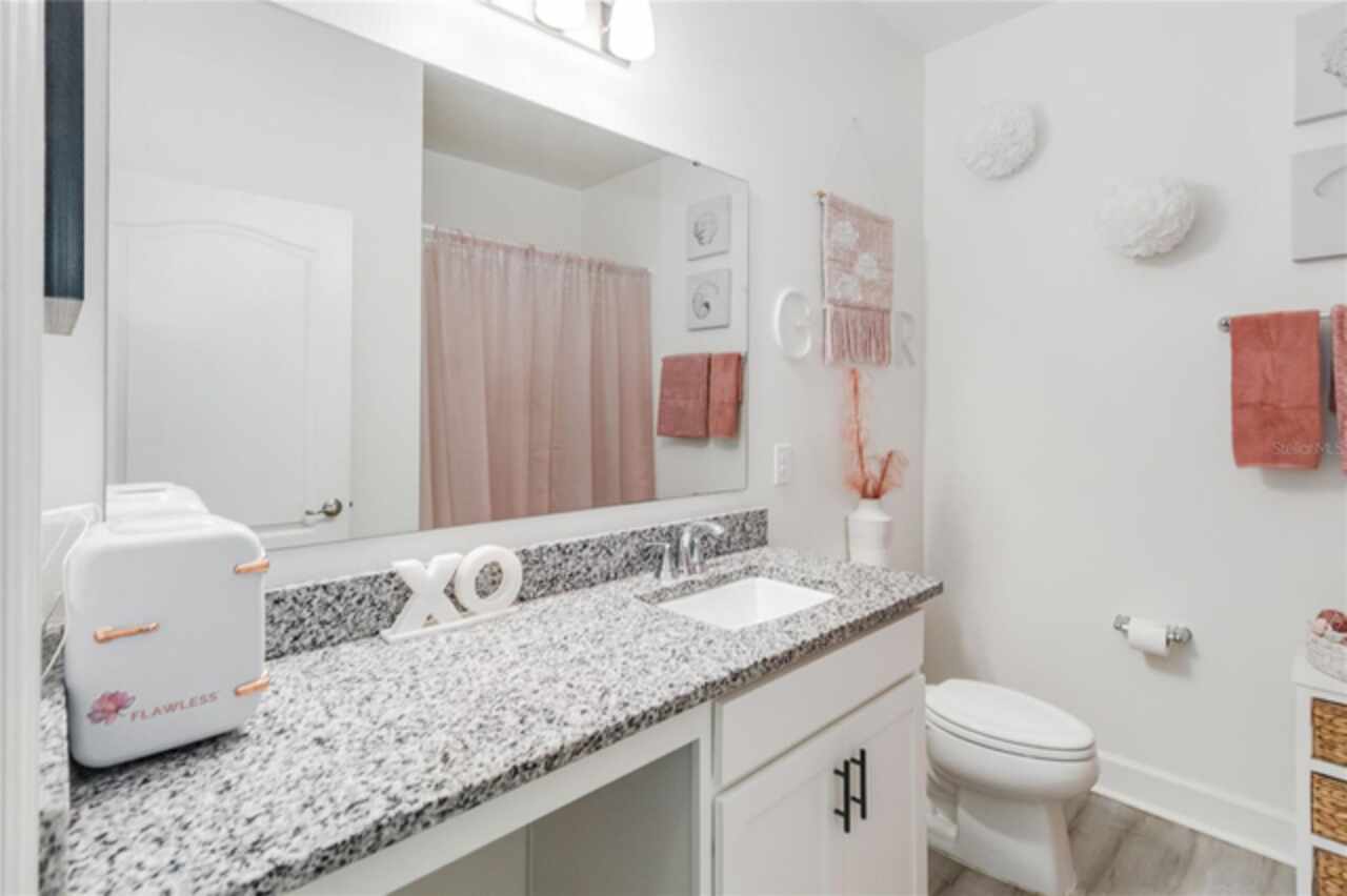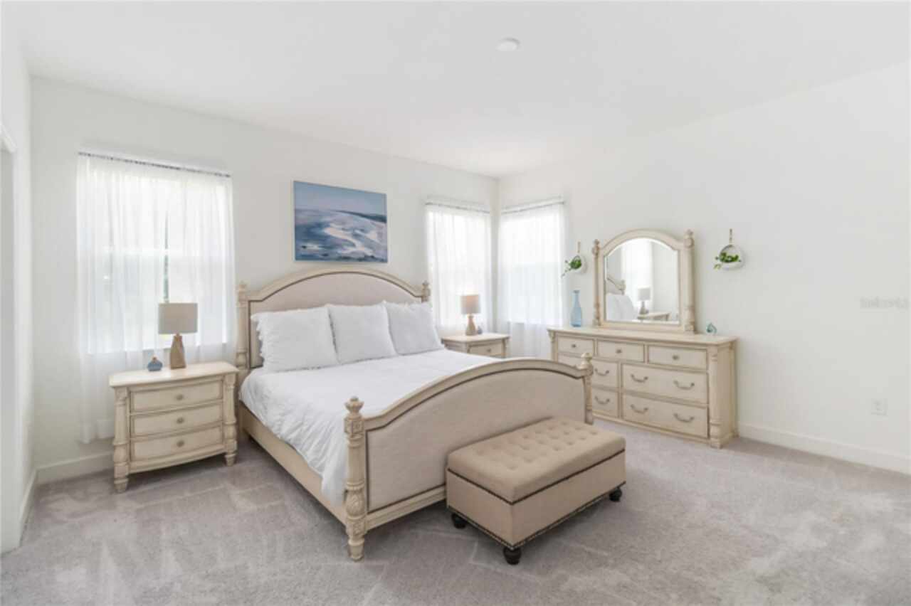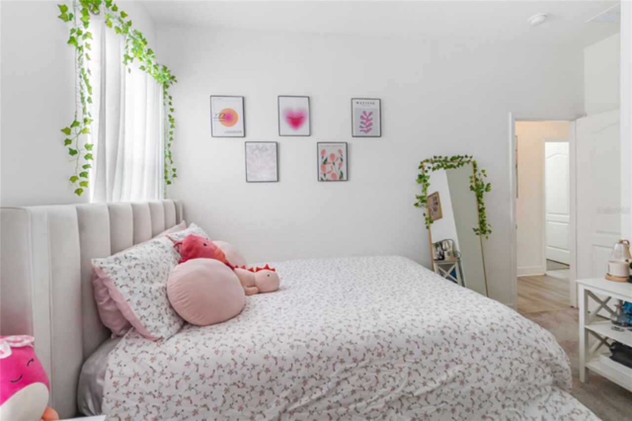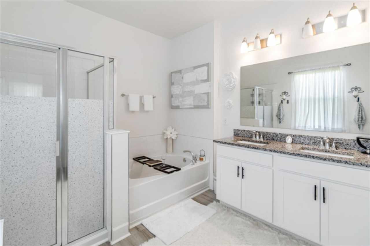 Welcome to this stunning ranch-style home nestled in the highly desirable community of "The Sanctuary." Offering the perfect blend of modern construction and thoughtful upgrades, this immaculate 2022-built property delivers all the benefits of new without the wait—and features a brand-new roof installed in 2024 for added peace of mind and long-term value. Boasting 4 spacious bedrooms and 3 modern bathrooms, this home is designed for comfort, style, and functionality. The expansive open floor plan features soaring 9-foot ceilings with new recessed lights recently installed and elegant vinyl flooring that enhances the overall sense of space and light. The beautifully appointed kitchen offers ample cabinet storage, sleek granite countertops, stainless steel appliances, and a large center island ideal with new pendant lights recently installed for meal prep and casual dining. The luxurious primary suite is a true retreat, complete with an opulent ensuite bathroom featuring dual vanities, a walk-in shower, a garden tub, and an oversized walk-in closet. The additional bedrooms are generously sized, offering comfort and privacy for the entire family, while the guest bedroom includes its own attached bathroom for added convenience. Step outside through French doors to a covered lanai and take in tranquil views of the serene pond and lush greenbelt, with no rear neighbors ensuring maximum privacy and relaxation. The Sanctuary community is nearly complete with outstanding amenities such as a state-of-the-art fitness center, a resort-style pool, a tot lot, and a spacious dog park—everything you need for an active and vibrant lifestyle. Located in the southern part of Clermont, this property offers close proximity to shopping, dining, medical facilities, and major attractions—including Walt Disney World, Universal Studios, the Turnpike, and I-4. Both Florida coasts are just 90 minutes away, making beach getaways easily accessible. Don’t miss your opportunity to own this exceptional home with a new 2024 roof, serene views, and resort-style living—all in one of Clermont’s premier neighborhoods!