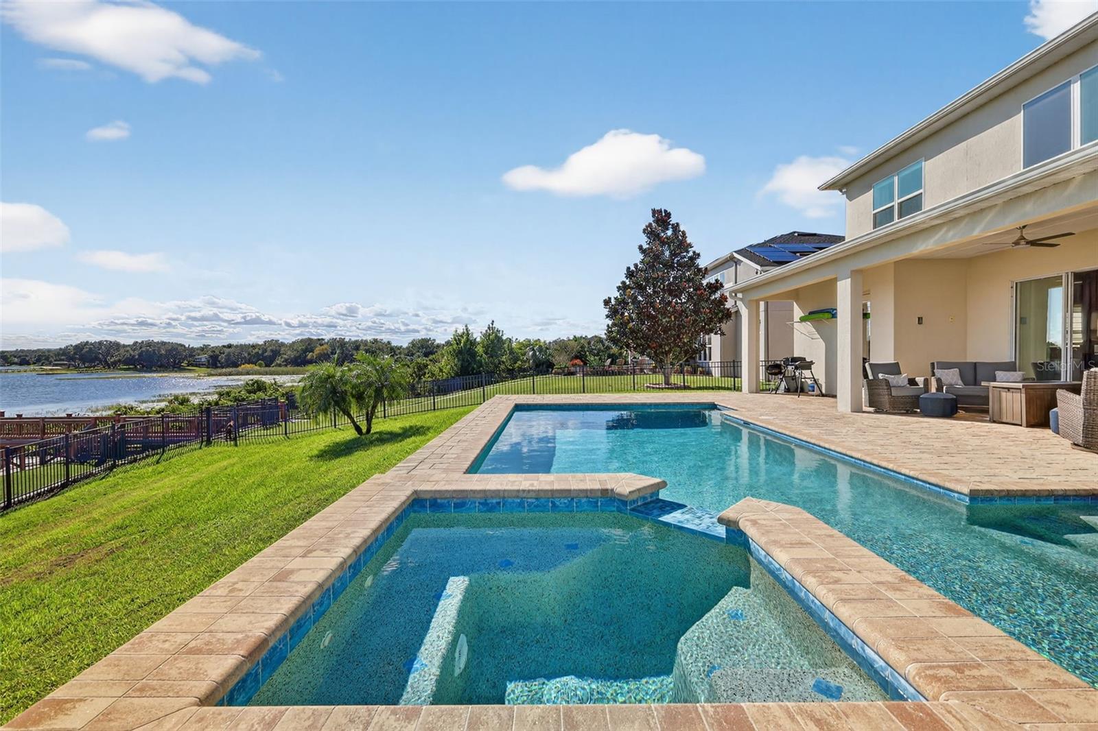 Luxury Lakefront Living Awaits! 5-Bedroom Home on John's Lake. Welcome to your dream home in the highly sought-after John's Lake Landing community. This beautifully maintained 5-bedroom, 5-bathroom David Weekley Wayland Model offers the perfect blend of luxury, comfort, and breathtaking lakefront living. From the moment you step inside, you'll be captivated by soaring ceilings, wood flooring, and a elegant warm and inviting atmosphere. The spacious living flows effortlessly into the gourmet eat-in kitchen, where stone countertops, stainless steel appliances, and panoramic lake views make everyday living and entertaining a joy. Enjoy the serenity of waterfront living with your own private pool, private dock and boat lift, perfect for sunset cruises or early morning fishing on John's Lake. The first-floor Primary Suite is a true retreat, featuring stunning lake views, an oversized walk-in closet, and a spa-inspired bathroom with a luxurious walk-in shower. Upstairs, you'll find four additional bedrooms, two full baths, and a large bonus/theater room, offering plenty of space for family, guests, or a home office setup. As part of this vibrant community, residents enjoy access to a resort-style pool, playground, and scenic lake frontage, all while being just minutes from downtown Clermont, Winter Garden, shopping, dining, and major roadways. You're also a short drive to Orlando's world-famous theme parks. Don't miss this rare opportunity to own a slice of paradise on John's Lake. Schedule your private showing today and experience lakefront luxury at its finest.