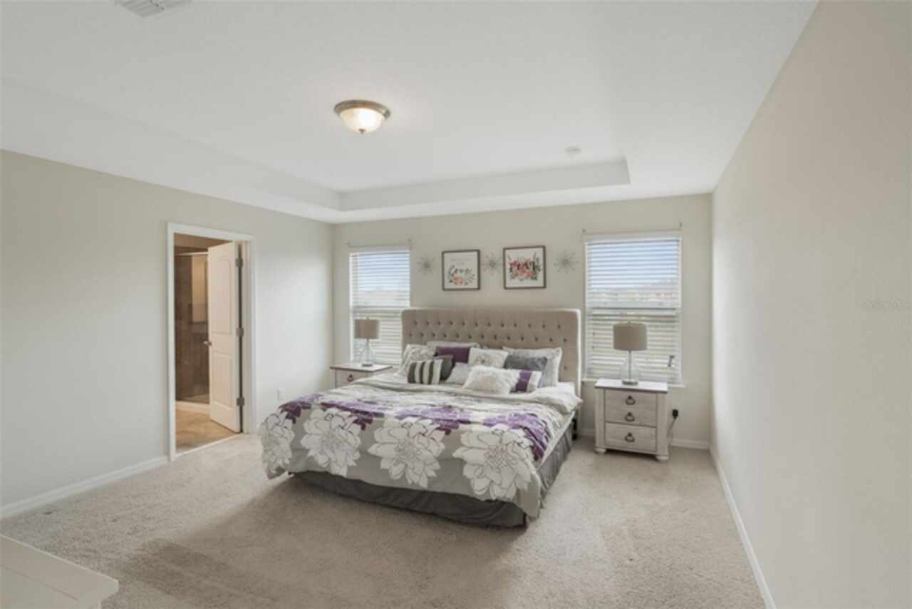 Kitchen/Family Room Combo, Open Floorplan, PrimaryBedroom Upstairs, Solid Wood Cabinets, Split Bedroom, Stone Counters, Tray Ceiling(s), Walk-In Closet(s), Window Treatments