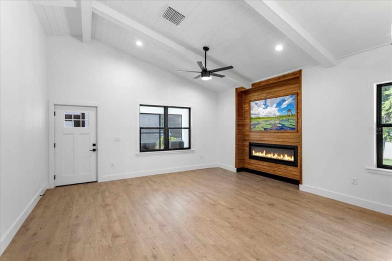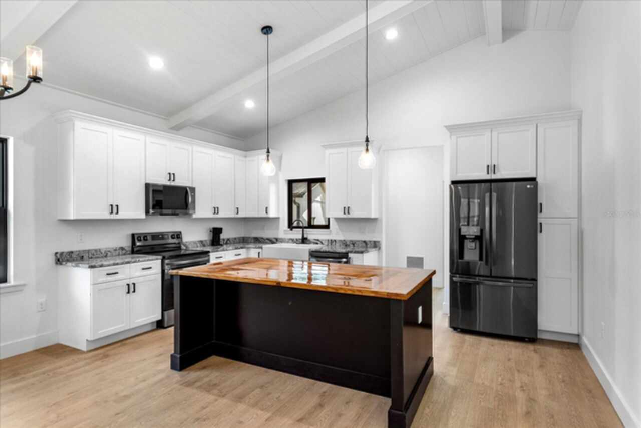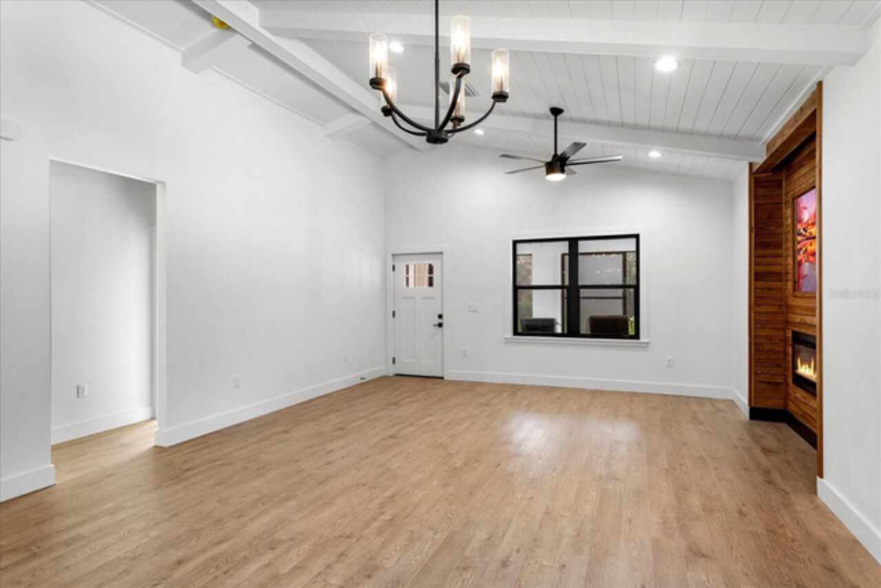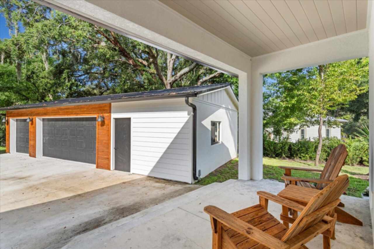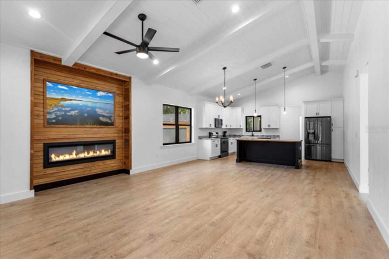 One or more photo(s) has been virtually staged. Brand New 3/2 Custom Built Home with Detached 3+ Oversized Garage/Workshop, both Built in 2024! Location, location, Close to Lake Minneola-Chain of Lakes in an Unincorporated NO HOA Neighborhood, close to US Hwy 27 & Hwy 50. Seller was planning to build another home on the lot next door, though has made other plans. Home is approx. 1, 554 sq. ft, plus 3+ Garage/ with oversized Workshop area - approx. 840 sq ft., with room for Office, Gym or Man Cave!! Additional sq ft. with screened enclosed-covered Front Porch & covered open roof large Lanai in the back of home. Builder spared no expense with up open floor plan, custom wood kitchen island, custom wood cabinets with easy open drawers, farmhouse porcelain kitchen sink with window at sink overlooking back yard, with custom natural wood wall panel inset in living room/fireplace area., vinyl wood tone finish accent wall in bathrooms, split bedroom floor plan, 2 bedrooms and guest bath between at the front of the home and the primary bedroom is tucked toward the back of the home for privacy. Many Upgraded Products with a nice floor plan in this New Single Family Home with Stainless Kitchen Appliances & Neutral Finishes throughout the home makes this home easy to move in and start unpacking right away. Open Floor plan includes a stunning vaulted ceiling with beams throughout creates an airy openness, spacious and modern elegance. Enjoy coffee or tea in the screen enclosed, under roof front porch and relax in the back yard on the lanai in the evenings. Perfect for a home business or AirBNB Investor. Great location in Clermont, near Minneola and Lake Minneola. Close to Waterfront Park Boat Launch. Could make a great forever home. Room for gardening. Home is Move-in Ready, with a deep driveway, room for multiple cars and room for an RV. Plenty of storage for Motorcycles, Mountain Bikes & Toys. Must see! This home can be purchased separately or combined with 2 adjoining vacant lots with a 1/1 SF Teardown and 1 Garage Teardown on the 3rd Parcel!