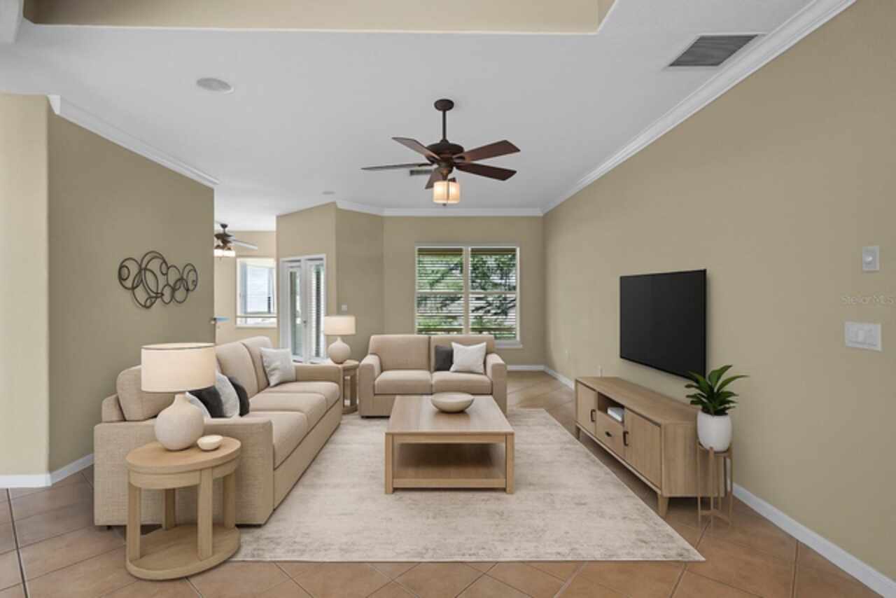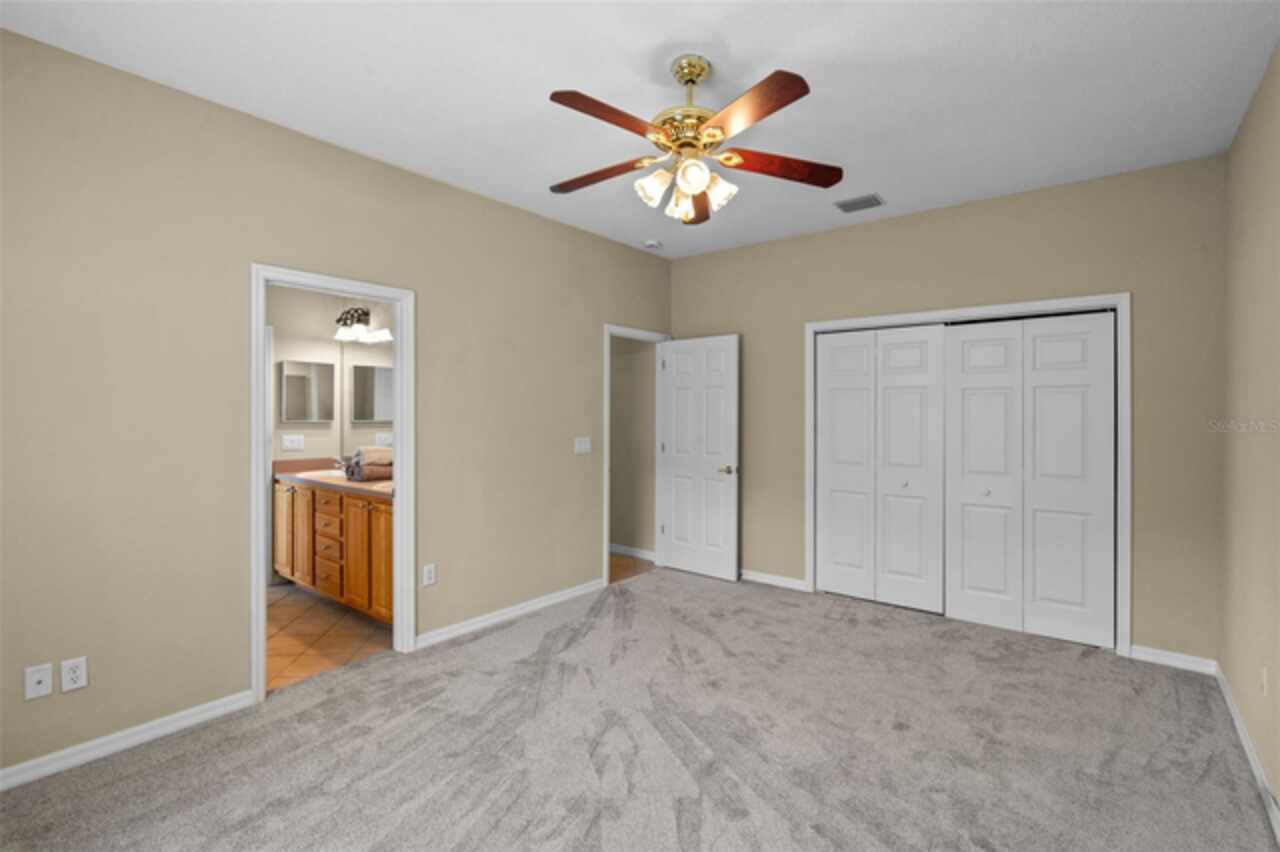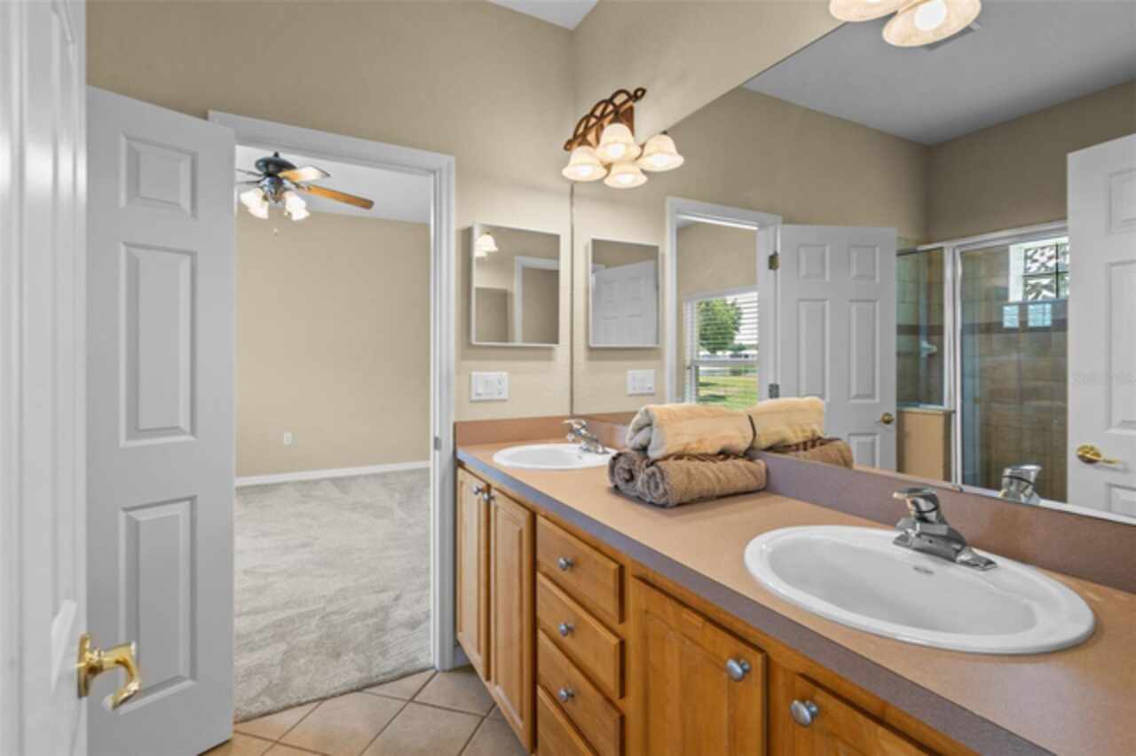 One or more photo(s) has been virtually staged. PRICE IMPROVEMENT and NEW ROOF 9/2025. Welcome to your dream retreat! Savor the 180° sunset view every night from your living room and a sunrise view from your bonus room every morning. This stunning Lake View home offers the perfect blend of comfort, style, and tranquility. Boasting 4 spacious bedrooms and 3 full bathrooms + a 1/2 bathroom on the main level. This beautifully maintained residence also features a versatile bonus room above the garage that has an ensuite full bathroom. This is ideal for use as a 4th bedroom, home office, or media room. Enjoy serene water views from the comfort of your screened-in back porch, perfect for morning coffee, evening relaxation, or entertaining guests while soaking in the mature trees and the large green spaces adjacent to Spring Lake. The open floor plan creates a seamless flow between living spaces, enhanced by natural light and designed for both function and relaxation. The floor plan has the primary bedroom with full primary suite bathroom on one side and two bedrooms with full bath access from either bedroom. 2 car garage plus a golf cart garage. Upgrades include 2 new HVACs, new water heater, new carpet, new garbage disposal, all new toilets. Located in Palisades community with amenities such as a community pool, clubhouse, boat dock (private for Palisade residents) and playground. Whether you're looking for a year-round residence or a seasonal home this lakefront property offers it all! Don’t miss this rare opportunity to live by the water with all the space you need!