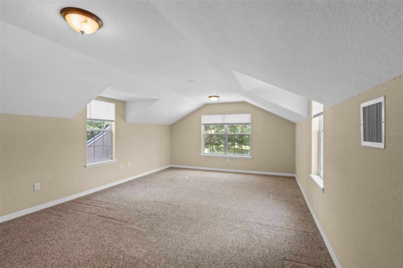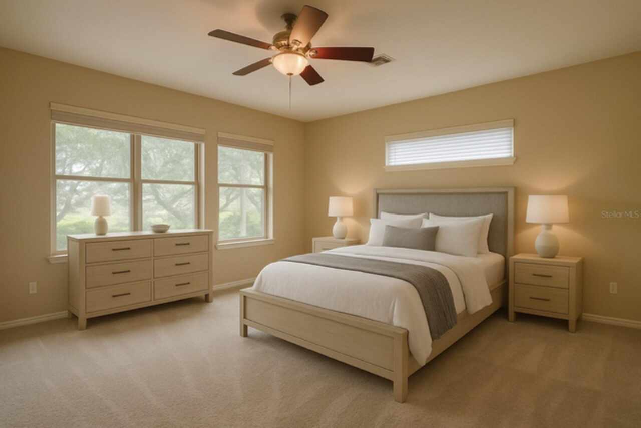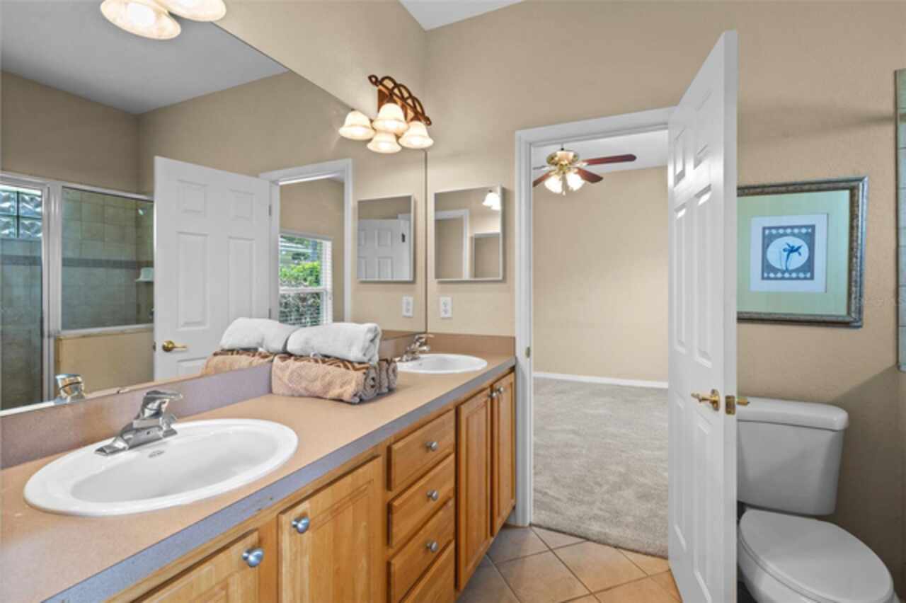 One or more photo(s) has been virtually staged. PRICE IMPROVEMENT and NEW ROOF 9/2025. Welcome to your dream retreat! Savor the 180° sunset view every night from your living room and a sunrise view from your bonus room every morning. This stunning Lake View home offers the perfect blend of comfort, style, and tranquility. Boasting 4 spacious bedrooms and 3 full bathrooms + a 1/2 bathroom on the main level. This beautifully maintained residence also features a versatile bonus room above the garage that has an ensuite full bathroom. This is ideal for use as a 4th bedroom, home office, or media room. Enjoy serene water views from the comfort of your screened-in back porch, perfect for morning coffee, evening relaxation, or entertaining guests while soaking in the mature trees and the large green spaces adjacent to Spring Lake. The open floor plan creates a seamless flow between living spaces, enhanced by natural light and designed for both function and relaxation. The floor plan has the primary bedroom with full primary suite bathroom on one side and two bedrooms with full bath access from either bedroom. 2 car garage plus a golf cart garage. Upgrades include 2 new HVACs, new water heater, new carpet, new garbage disposal, all new toilets. Located in Palisades community with amenities such as a community pool, clubhouse, boat dock (private for Palisade residents) and playground. Whether you're looking for a year-round residence or a seasonal home this lakefront property offers it all! Don’t miss this rare opportunity to live by the water with all the space you need!