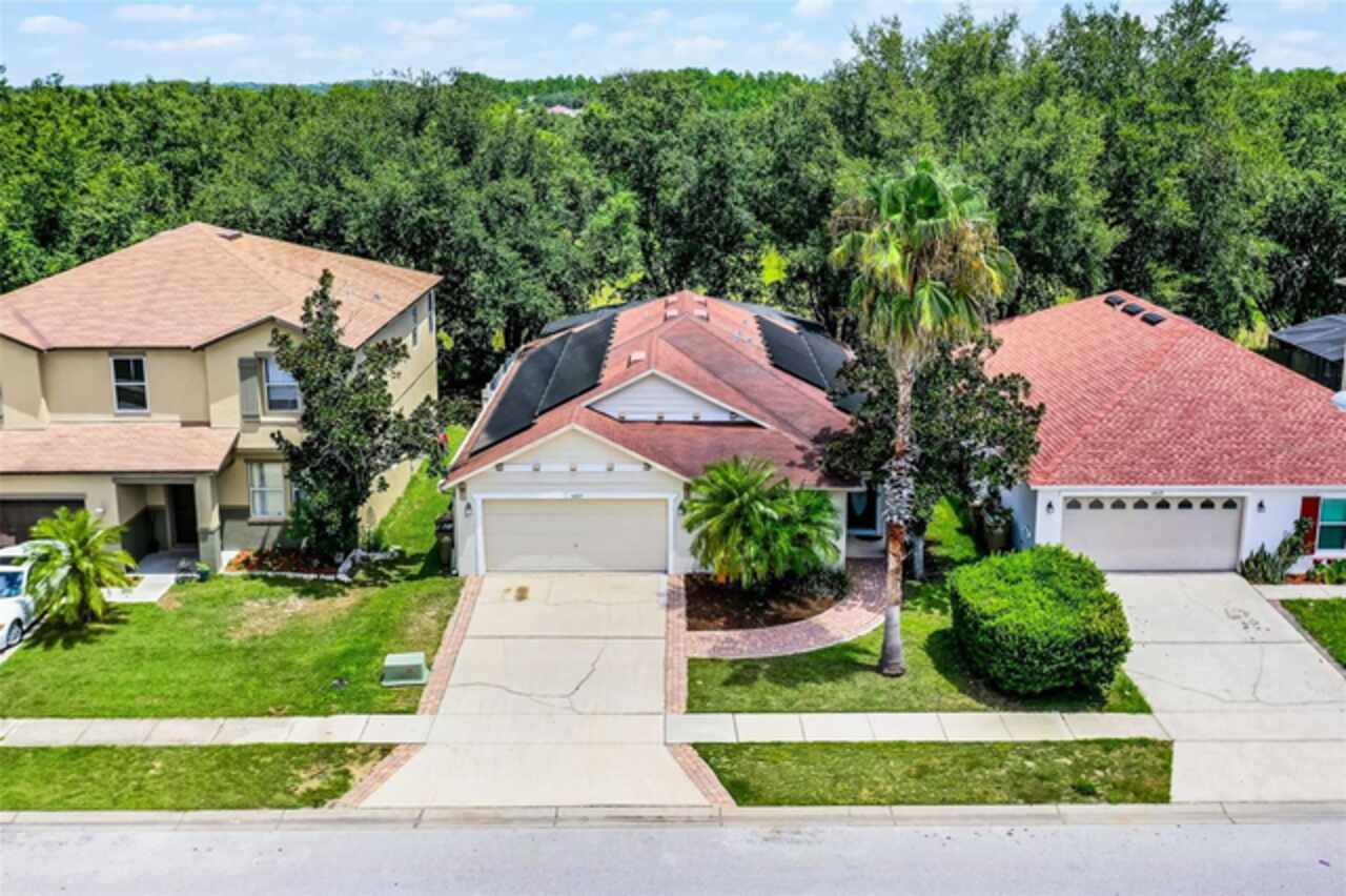 Welcome to your Florida oasis! This spacious 4-bedroom, 2-bath pool home offers 1, 950 square feet of comfortable living space and is located in the highly desirable Sunrise Lakes community, zoned for short-term rentals and just minutes from all the Orlando theme parks! Enjoy the open layout featuring a well-appointed kitchen, a bright, inviting living area perfect for entertaining, and BRAND NEW CARPET in the bedrooms! Step outside to your private screened-in pool, ideal for relaxing after a day at the parks. Additional highlights include a 2-car garage and a FULLY PAID OFF solar system, providing energy efficiency and lower utility costs. Whether you’re looking for a primary residence, vacation getaway, or investment property, this home checks all the boxes. Don’t miss your chance to own a piece of the Sunshine State! *Aerial photo property lines are an estimate and to be verified by buyer.
