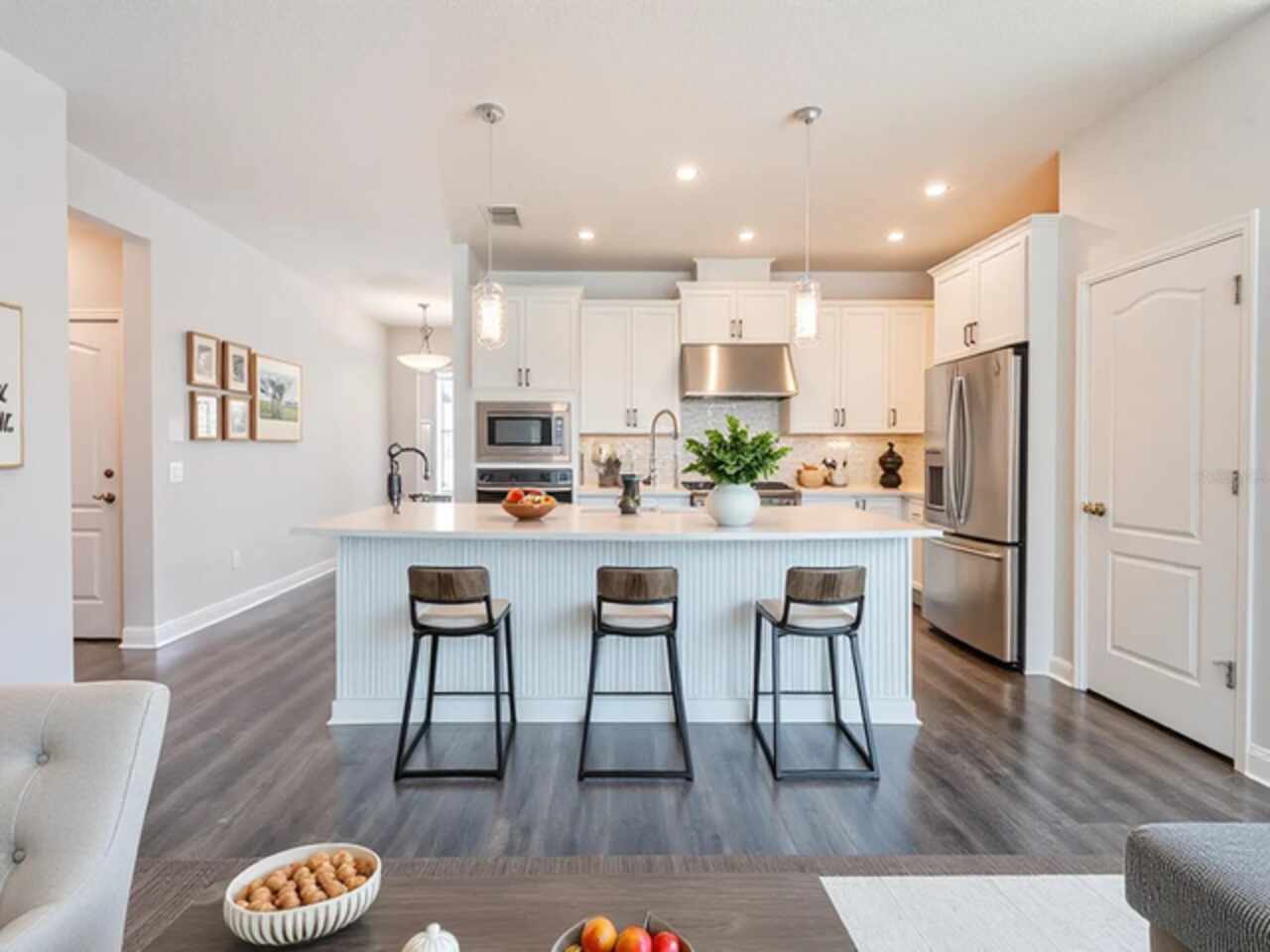 Under contract-accepting backup offers. Welcome Home to Knollview Model !.This stunning 3-bedroom, 2-bathroom home combines thoughtful design with luxury upgrades. The spacious gourmet kitchen features a double oven, elegant 42" cabinets, sleek under-cabinet vent hood, and a large island — perfect for entertaining or family gatherings. Beautiful and durable LVP flooring flows throughout the main living areas, while the open-concept layout and Life Design features make daily living effortless. Step outside to enjoy your oversized back lanai, ideal for hosting or relaxing. Retreat at the end of the day to your private Owner’s Suite with a large walk-in closet. Nestled in the rolling hills of Clermont., you can buy with confidence. Come experience why Clermont is one of the fastest-growing areas in Central Florida!