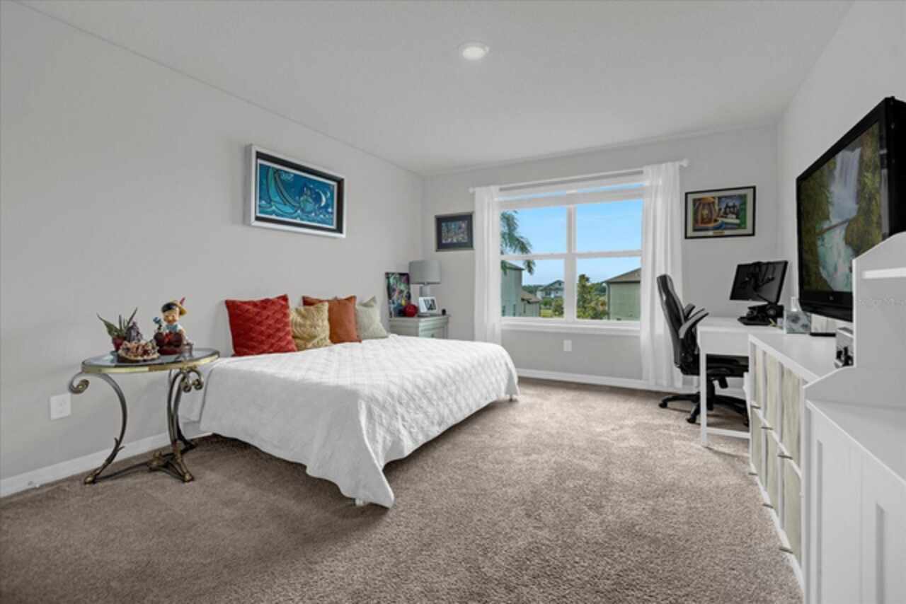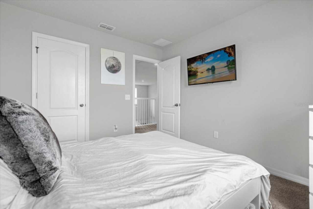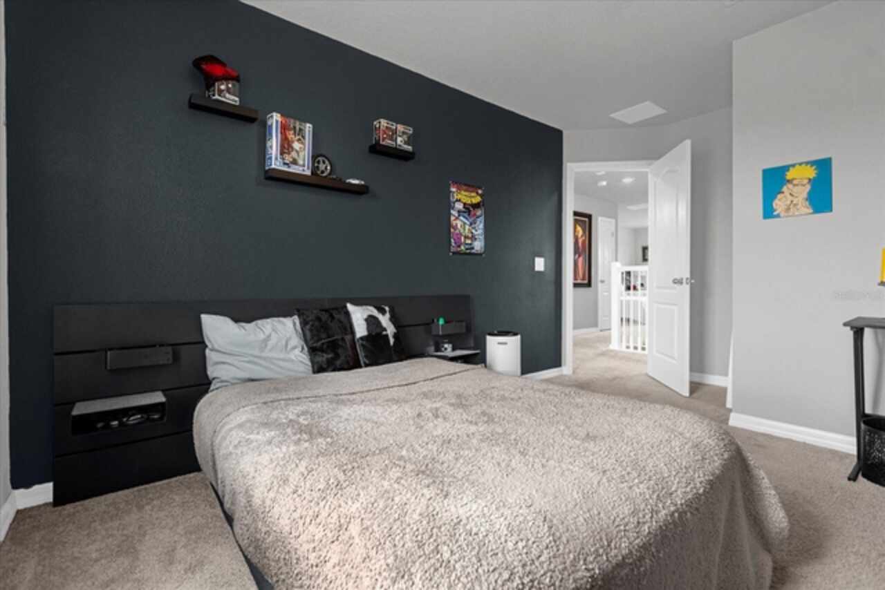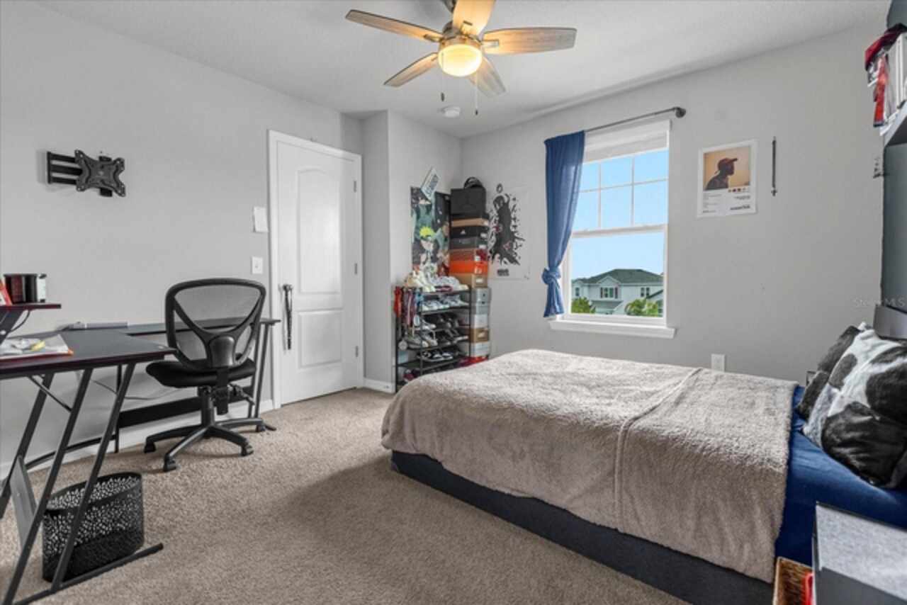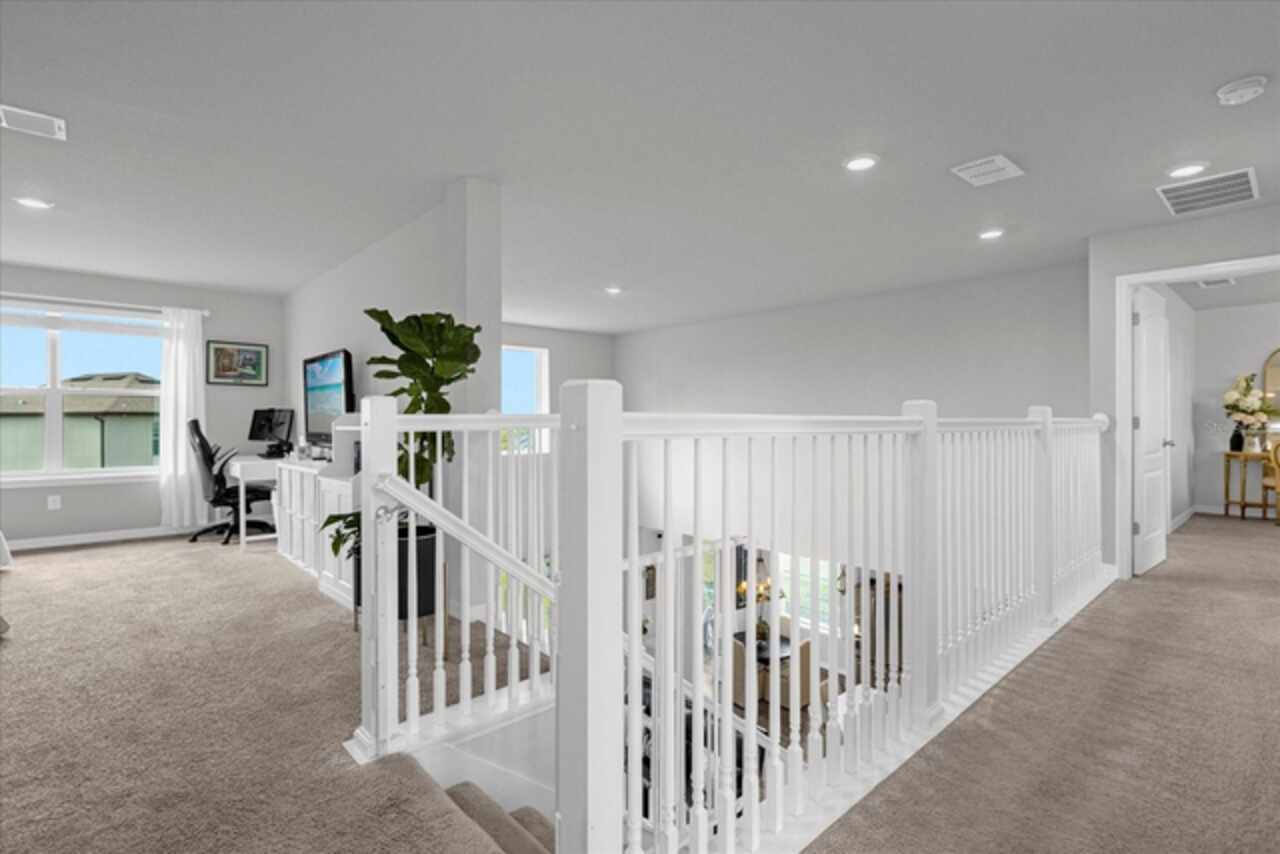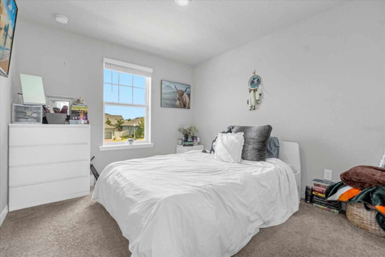 Welcome to your dream home! This spacious 4-bedroom, 3-bathroom residence offers over 2, 424 square feet of thoughtfully designed living space. Soaring high ceilings create an open and airy feel, while large windows invite natural light and slight views of the nearby lake. Enjoy Florida living at its finest with both front porch and a screened lanai, perfect for relaxing or entertaining. The fenced backyard provides privacy and room for outdoor fun, pets, or gardening. Inside, a versatile loft space offers endless possibilities—ideal as a home office, media room, or can easily be converted into a 5th bedroom. The home also features a 2-car garage, ample storage, and a smart layout that provides comfort and functionality for modern living. Located in John Lake Landing with convenient access to parks, shopping, and schools, this home blends charm, space, and flexibility. Also, there is a bedroom on the first floor and one bathroom with shower is located on the first floor. Don't miss the opportunity to make this beautiful home your own!