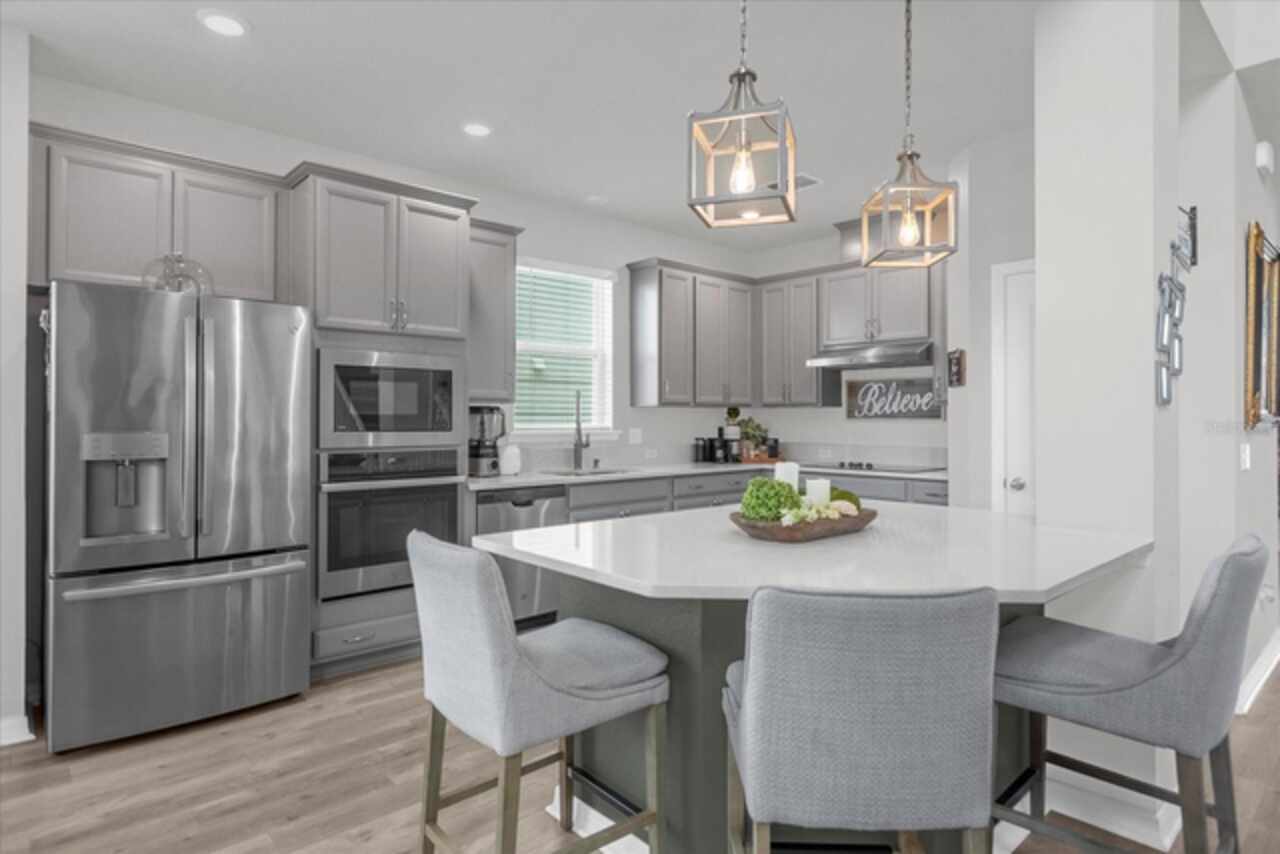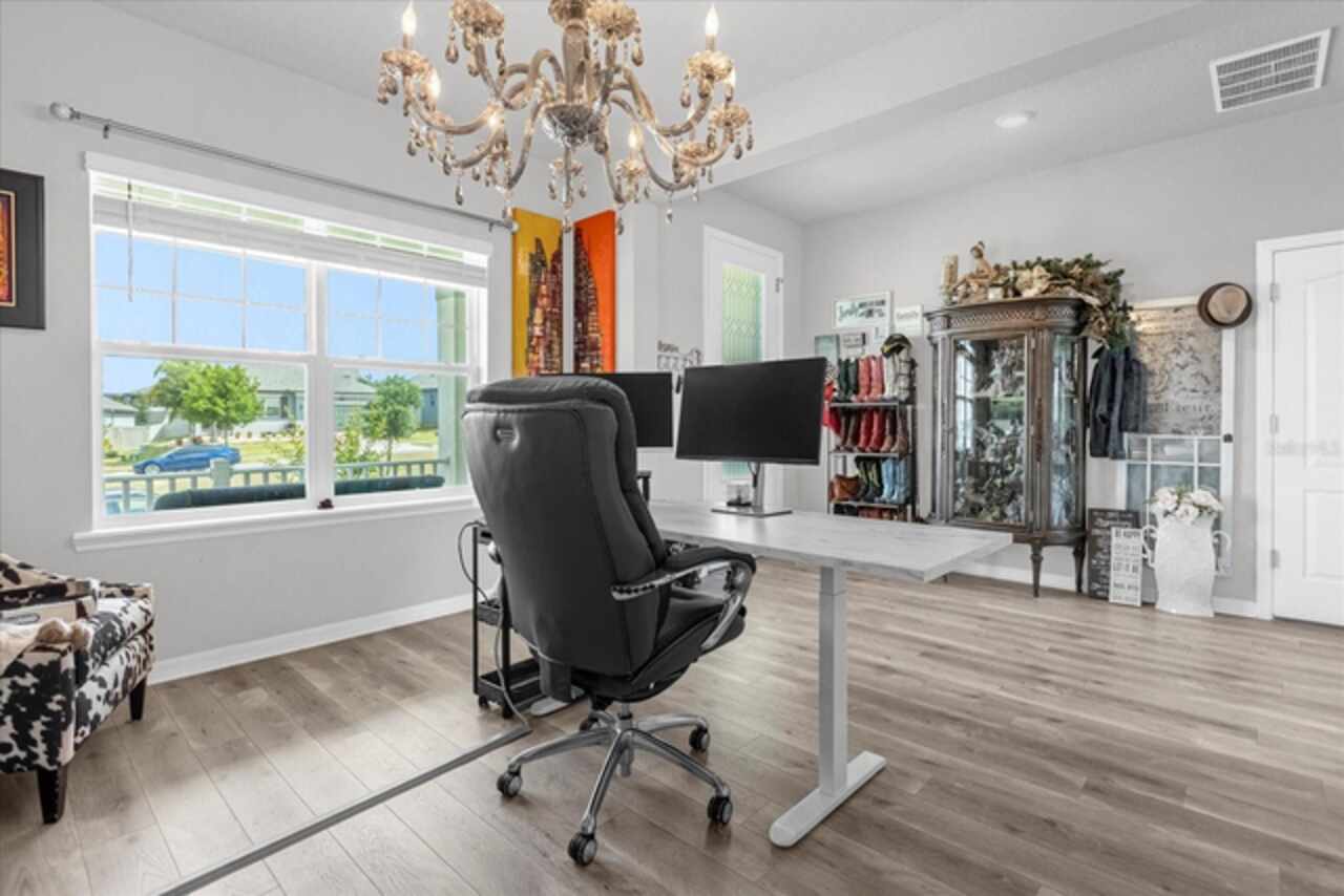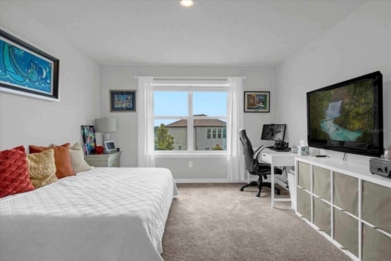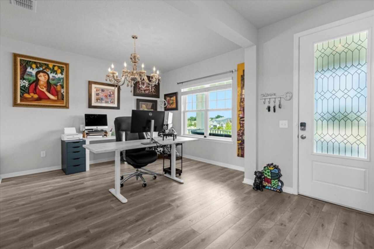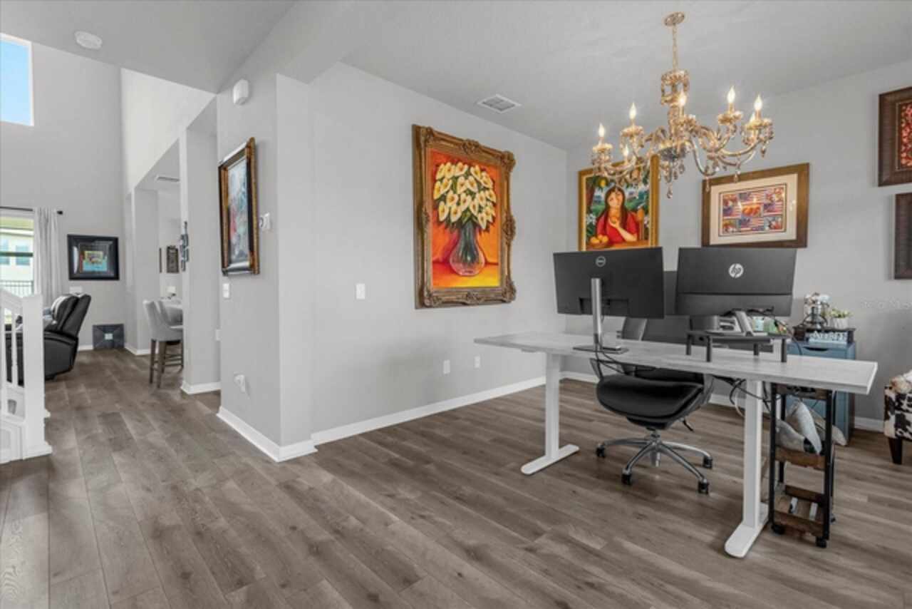 Welcome to your dream home! This spacious 4-bedroom, 3-bathroom residence offers over 2, 424 square feet of thoughtfully designed living space. Soaring high ceilings create an open and airy feel, while large windows invite natural light and slight views of the nearby lake. Enjoy Florida living at its finest with both front porch and a screened lanai, perfect for relaxing or entertaining. The fenced backyard provides privacy and room for outdoor fun, pets, or gardening. Inside, a versatile loft space offers endless possibilities—ideal as a home office, media room, or can easily be converted into a 5th bedroom. The home also features a 2-car garage, ample storage, and a smart layout that provides comfort and functionality for modern living. Located in John Lake Landing with convenient access to parks, shopping, and schools, this home blends charm, space, and flexibility. Also, there is a bedroom on the first floor and one bathroom with shower is located on the first floor. Don't miss the opportunity to make this beautiful home your own!