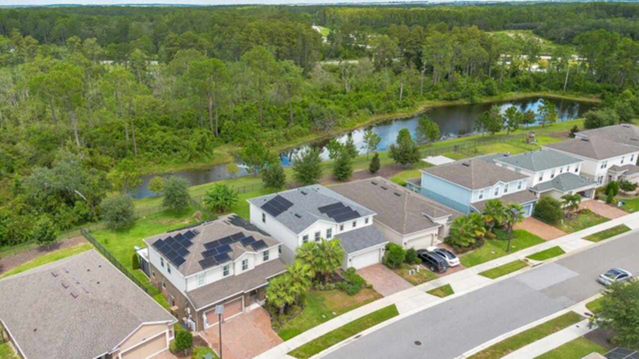 **PRICE REDUCTION WITH $5 000 CLOSING COST ASSISTANCE!** Time to make this your next home!!! Welcome to your next home in Serenoa! Set within a resort-style community, this elegant residence strikes the perfect balance of comfort, convenience, and upscale design. From the moment you arrive, the curb appeal shines with a BRAND NEW ROOF, freshly painted exterior, and a brick-paved driveway leading to a spacious three-car tandem garage. Inside, beautiful crown molding, new luxury vinyl flooring and graceful arches frame the formal living and dining rooms, while a private glass-door study provides the ideal home office or flex space. At the heart of the home, the open-concept layout seamlessly connects the kitchen, dinette, and family room—bathed in natural light and enhanced by a custom electric built-in fireplace. The gourmet kitchen has been recently updated including stainless steel appliances, 42” cabinetry, a custom-designed pantry, and an oversized island that’s perfect for gatherings and everyday living. Upstairs, a versatile loft offers space for play, media, or relaxation. The serene primary suite is a true retreat, featuring dual vanities, a soaking tub, separate walk-in shower, and two generous walk-in closets. Additional bedrooms and a convenient upstairs laundry room complete the thoughtful second-floor design. Outdoor living is equally impressive. Step onto the extended screened lanai and enjoy a fenced private backyard with peaceful conservation and water views—no rear neighbors for added privacy. Whether sipping morning coffee or hosting evening get-togethers, this space is designed for relaxation and entertaining. Enjoy low electric bills with paid off solar panels!! The Serenoa community delivers an unmatched lifestyle with a clubhouse, splash pad, jogging paths, dog park, monthly family/lifestyle events, and an on-site fitness center. Even better—internet, WiFi, and cable are included for all residents. All this, just minutes from shopping, dining, major highways, and world-famous attractions—this home offers resort-style living in an unbeatable location.