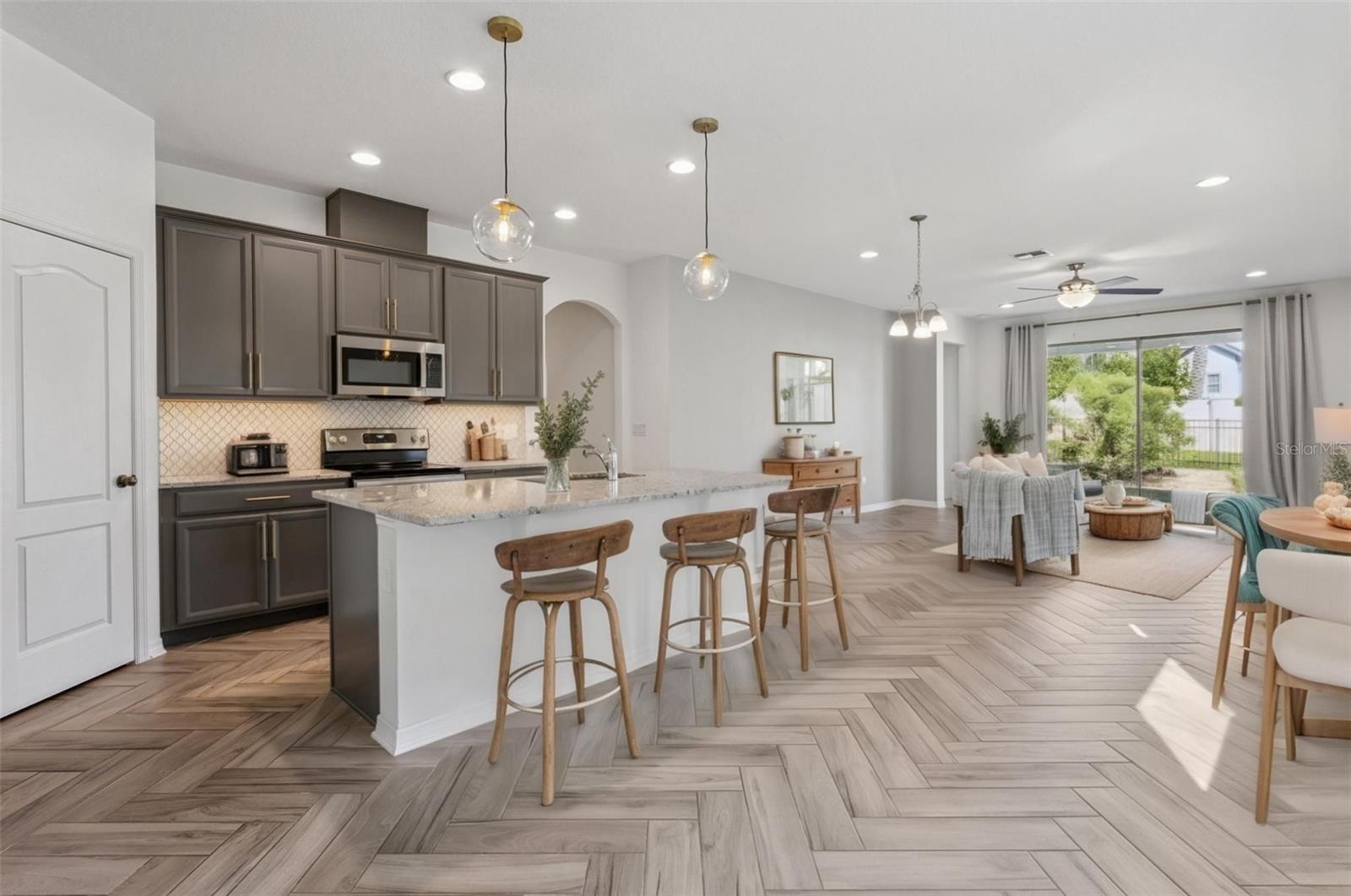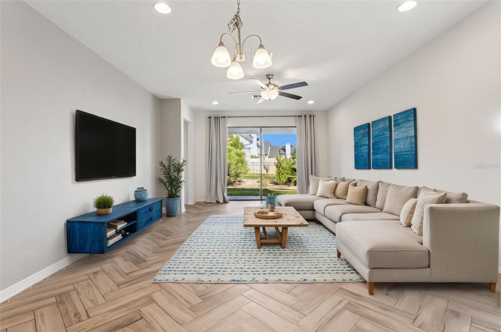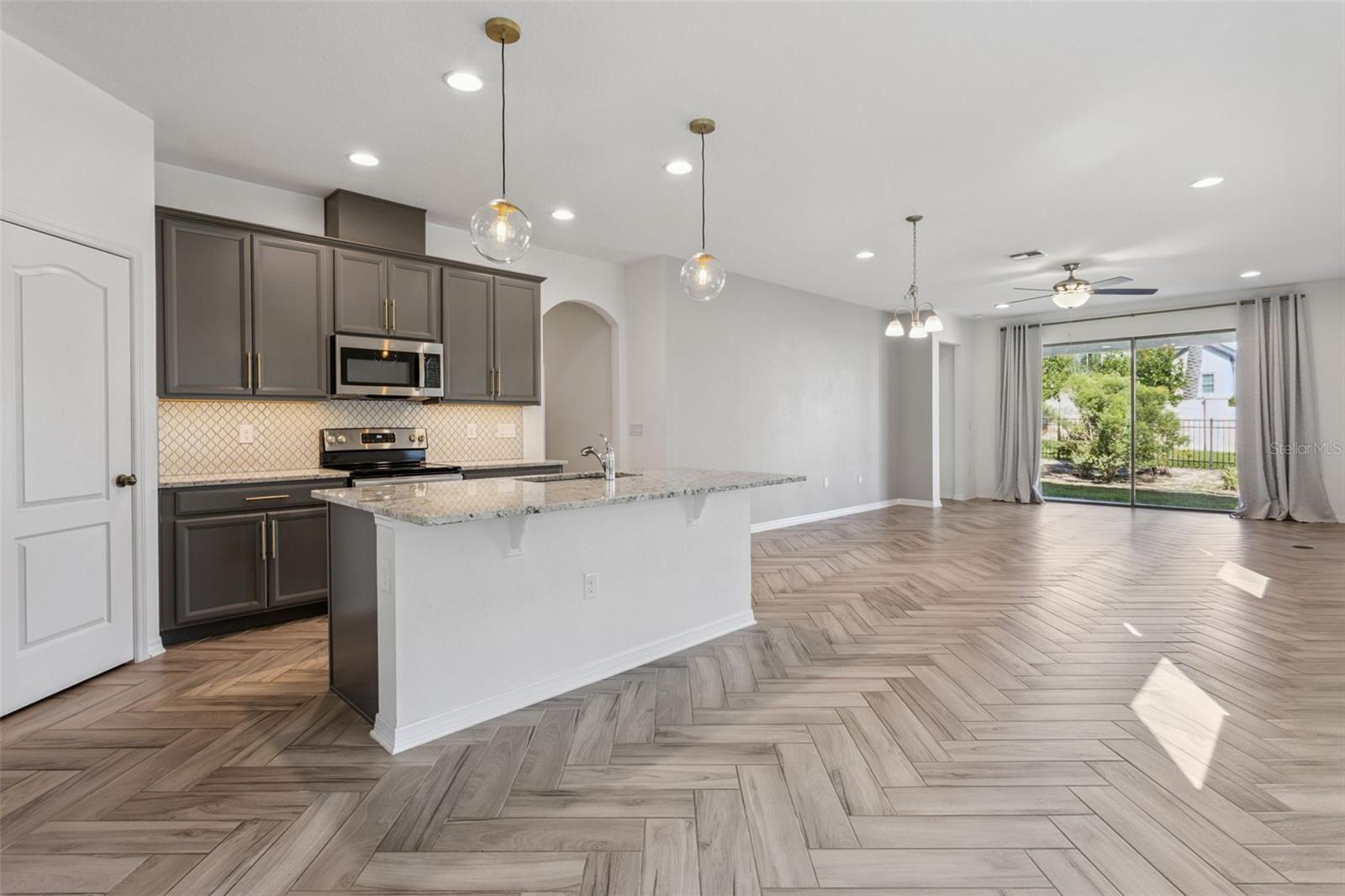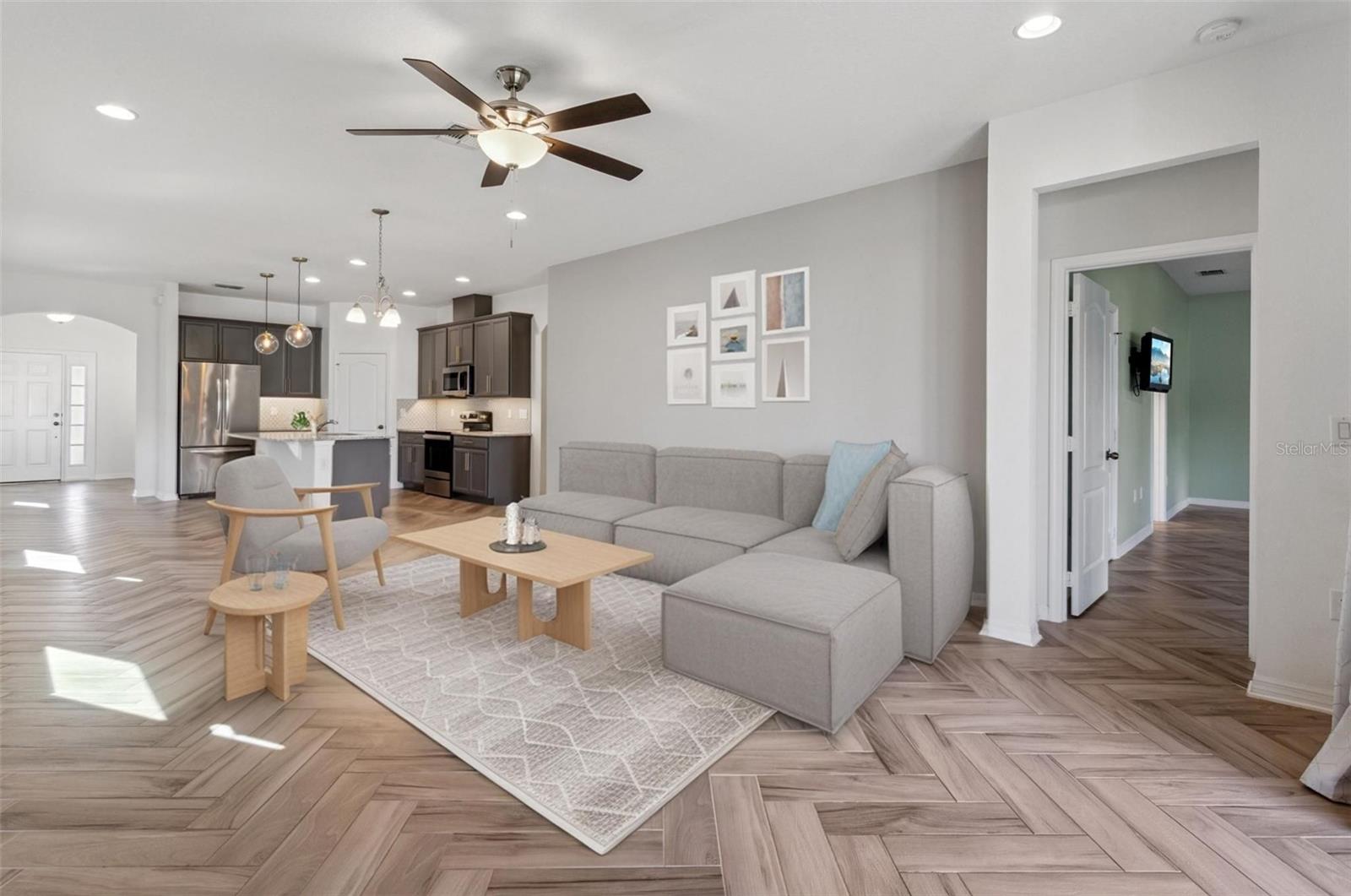 One or more photo(s) has been virtually staged. Discover your dream home in the heart of Clermont! This beautifully maintained 3-bedroom, 2-bath home with a private office/den featuring custom built-ins offers the perfect blend of style, comfort, and functionality. Step inside to an open-concept, split floor plan with high ceilings and abundant natural light that make the home feel warm and inviting. The spacious kitchen is ideal for entertaining, stainless-steel appliances, and a large breakfast bar overlooking the family room. The dedicated office/den provides an elegant workspace with built-in shelving from top to bottom — perfect for remote work, study, or a creative studio. The primary suite offers a peaceful retreat with a walk-in closet and a spa-inspired ensuite bath featuring dual sinks, a soaking tub, and a separate shower. Relax and unwind on the covered lanai overlooking the private backyard, ideal for outdoor dining or enjoying Florida sunsets. Nestled in a quiet, desirable community just minutes from top-rated schools, shopping, dining, and major highways — this home truly has it all.