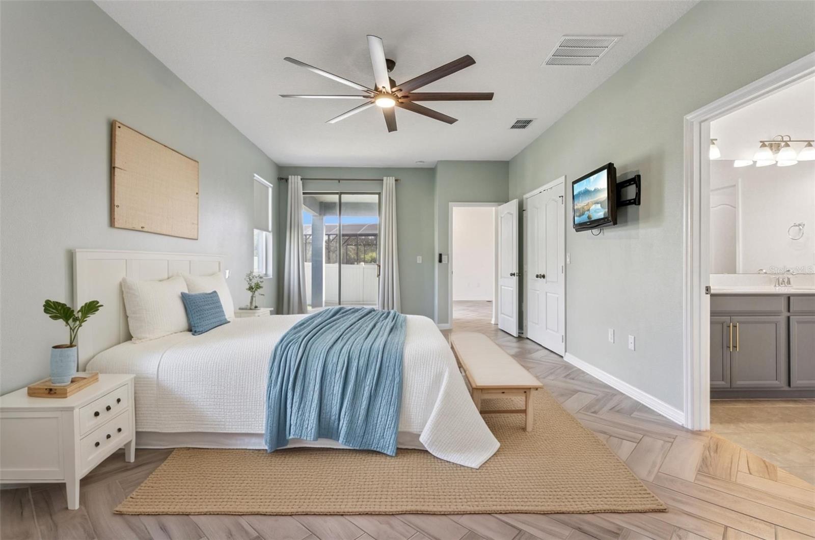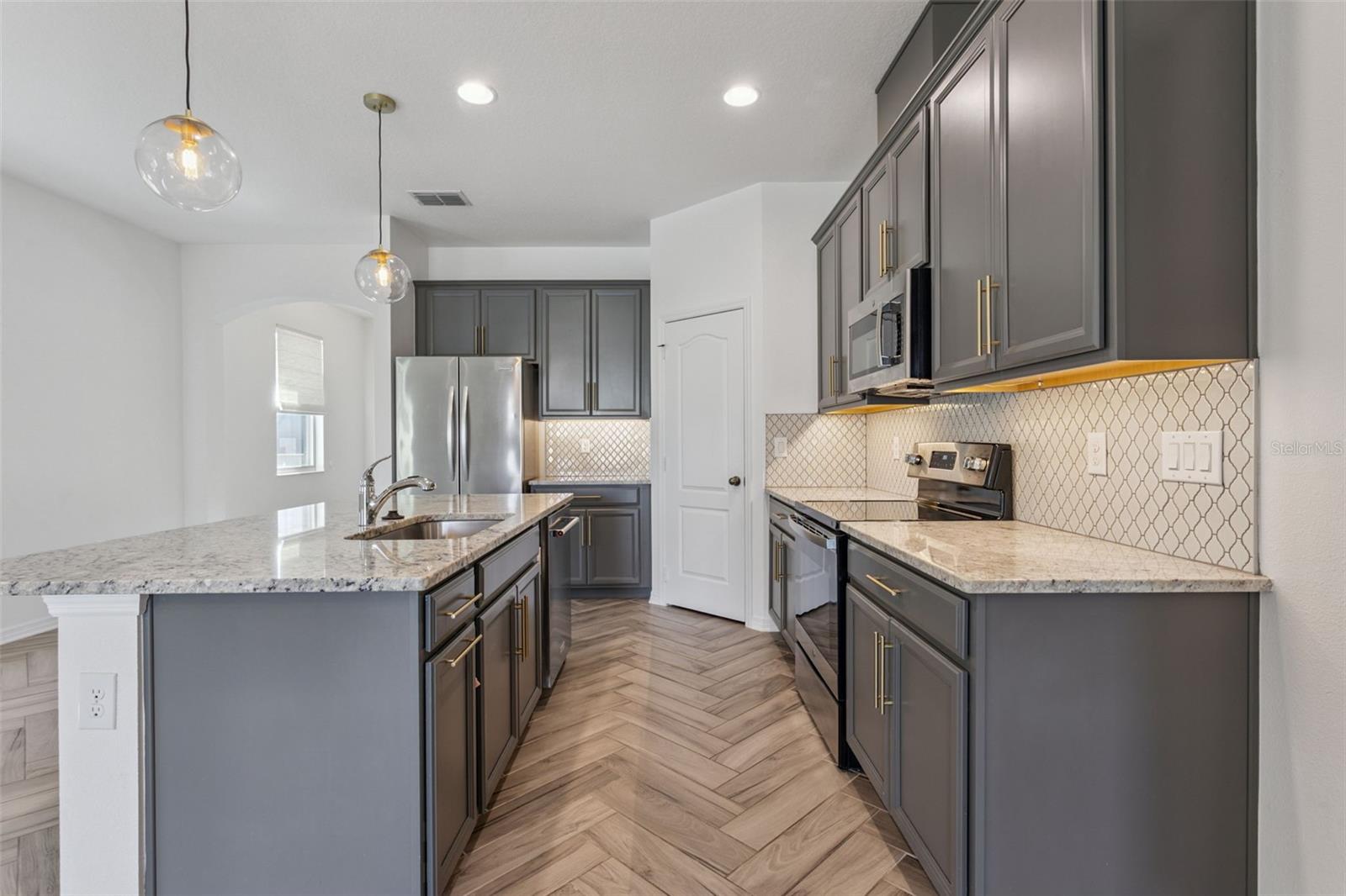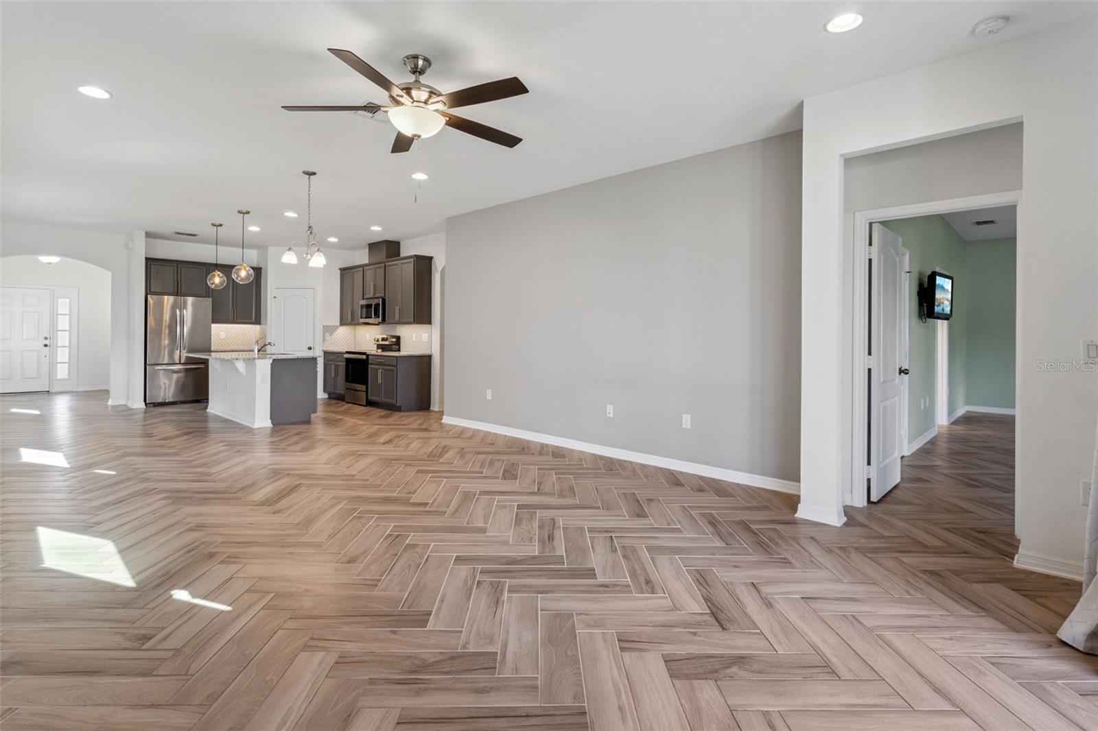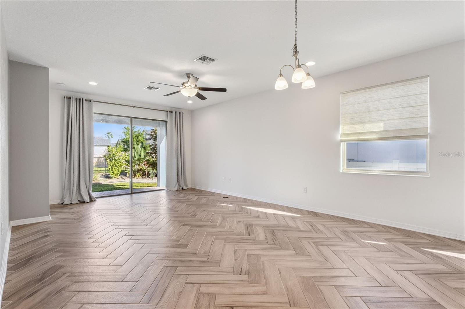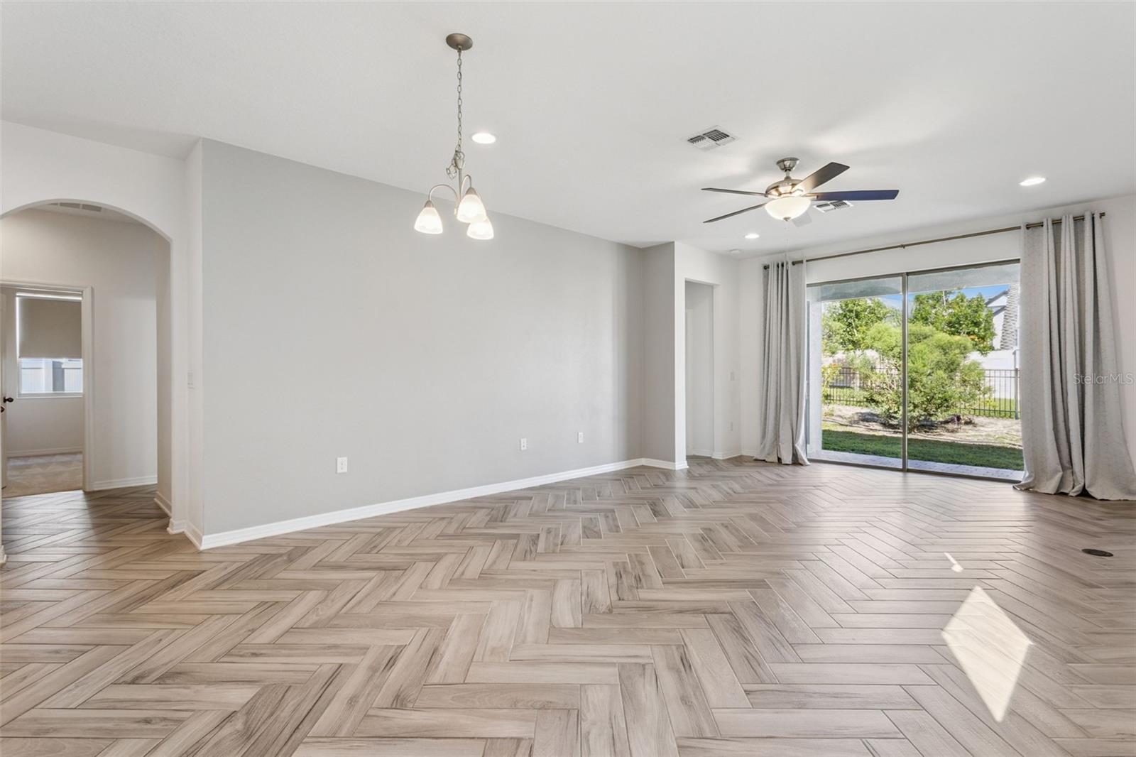 One or more photo(s) has been virtually staged. Discover your dream home in the heart of Clermont! This beautifully maintained 3-bedroom, 2-bath home with a private office/den featuring custom built-ins offers the perfect blend of style, comfort, and functionality. Step inside to an open-concept, split floor plan with high ceilings and abundant natural light that make the home feel warm and inviting. The spacious kitchen is ideal for entertaining, stainless-steel appliances, and a large breakfast bar overlooking the family room. The dedicated office/den provides an elegant workspace with built-in shelving from top to bottom — perfect for remote work, study, or a creative studio. The primary suite offers a peaceful retreat with a walk-in closet and a spa-inspired ensuite bath featuring dual sinks, a soaking tub, and a separate shower. Relax and unwind on the covered lanai overlooking the private backyard, ideal for outdoor dining or enjoying Florida sunsets. Nestled in a quiet, desirable community just minutes from top-rated schools, shopping, dining, and major highways — this home truly has it all.