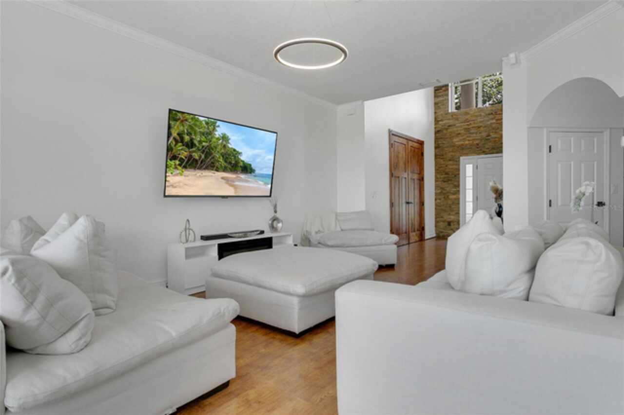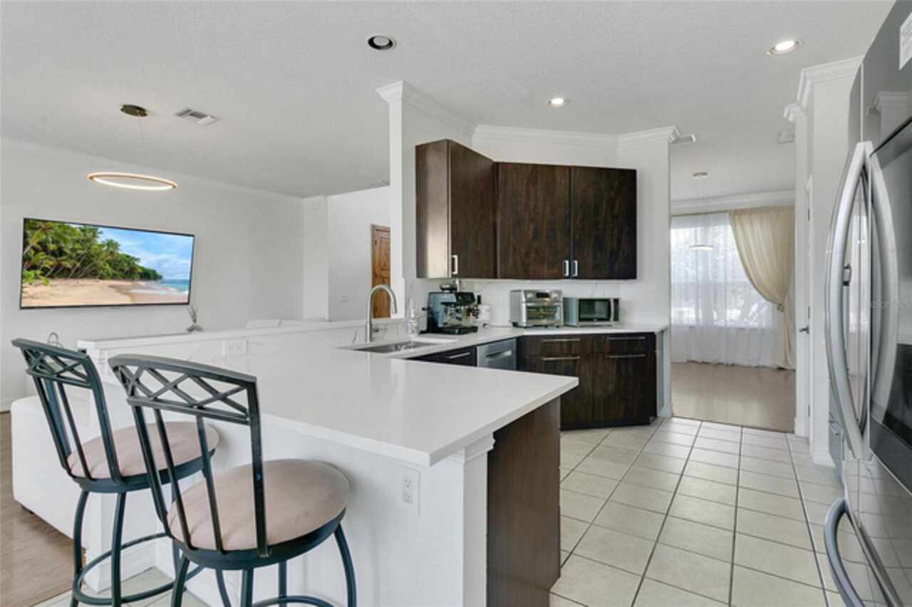 Welcome to your DREAM HOME in one of the most highly desired, Guarded/Gated Communities, Magnolia Pointe Subdivision in Clermont, FL. Nestled in a peaceful, low traffic street, this Exquisite 2- story Modern residence boasts Comfort, Style, and Breathtaking Views. Enjoy tranquil sunsets from your own private pool, upstairs balcony, or walk to the dock enjoying the lake view. This home's sleek, contemporary architecture is complemented by Grand Pillars upon entry, offering a striking visual appeal! The Exclusive amenities are Access to the Community Pool, Private Dock on John's Lake, Tennis and Basketball Courts, and Playground. The Open floor plan flows beautifully in the Kitchen and Livingroom areas, leading out to the Screened Lanai and Pool Oasis. One bedroom/ bathroom is conveniently located on the first floor with a door access to the covered lanai. UPGRADES to this home in 2024 Include: Fresh Interior Paint, Lanai Floor Painted, Front Door Painted, New Pool Pump, New Sod in front yard, Bushes in back yard, Tile floor in First Floor bedroom, Tesla/ EV Charging Inside Garage, New Modern Light Fixtures, Custom Walk-in Closet in Primary Bedroom, New Bosch Glass induction Cook Top, Refurbished and Painted Bathroom Cabinets with New Sink Faucets. This property is Conveniently located just off of Highway 50, Quick access to the Turnpike, Costco, Publix, Downtown Clermont, Montverde's Club at Bella Collina Golf Community and Spa. The Shopping, Dining, and Entertainment Choices nearby are Endless! This GORGEOUS home is a Must See! Schedule YOUR Showing Today!