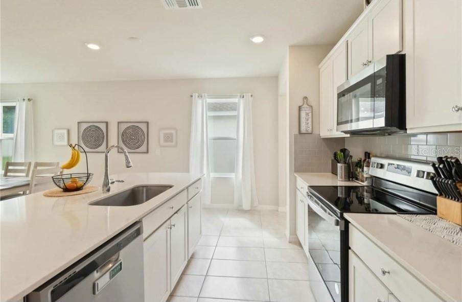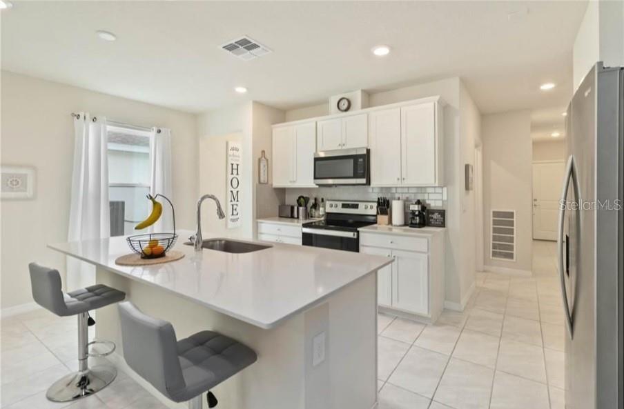 Beautifully upgraded home in a prime location just 10 to 12 minutes from Disney’s Animal Kingdom and about 25 minutes to Disney property, with convenient access to US 192, US 1, and nearby toll roads. This secure gated community features a private pool with fob access and camera monitoring, exclusive to residents. Inside, the home offers fully upgraded kitchen and bathrooms with Moen faucets and modern hardware, along with high quality tile flooring throughout that replaces all carpets for a cleaner, allergy friendly environment. One bedroom is currently used as an office, and the master suite includes a second workspace in the walk-in closet with a desk and dual monitors. Additional touches include extra paint, spare tiles, and useful household items such as vacuums, tools, and kitchen essentials that will remain for the new owner.